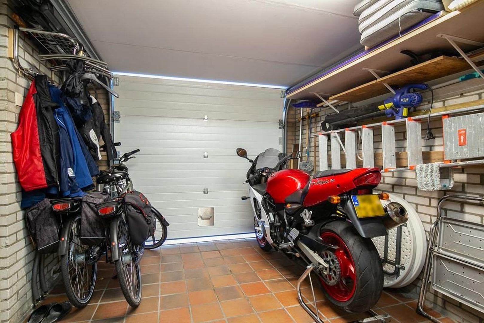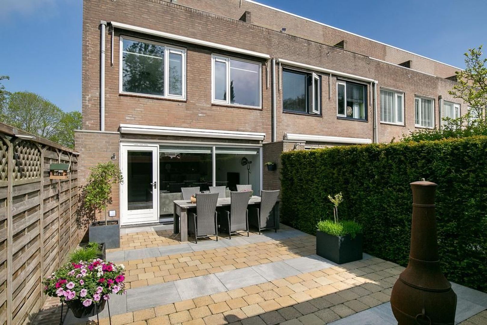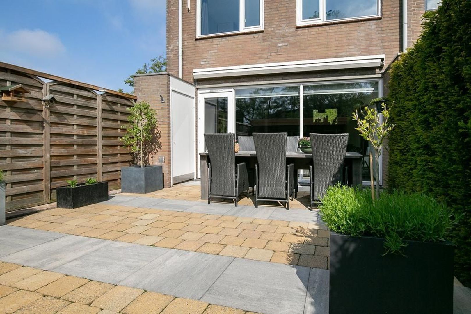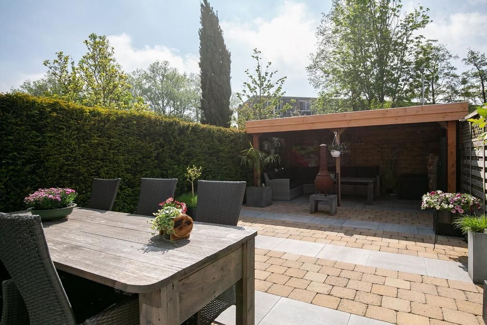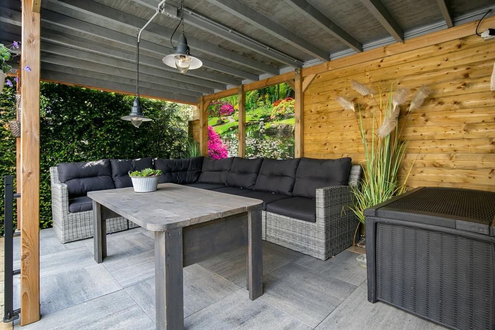De tuin ligt op het zuidoosten. Hierin staat een mooie overkapping van Douglashout. Aan de achtergevel is een elektrisch zonnescherm aangebracht.