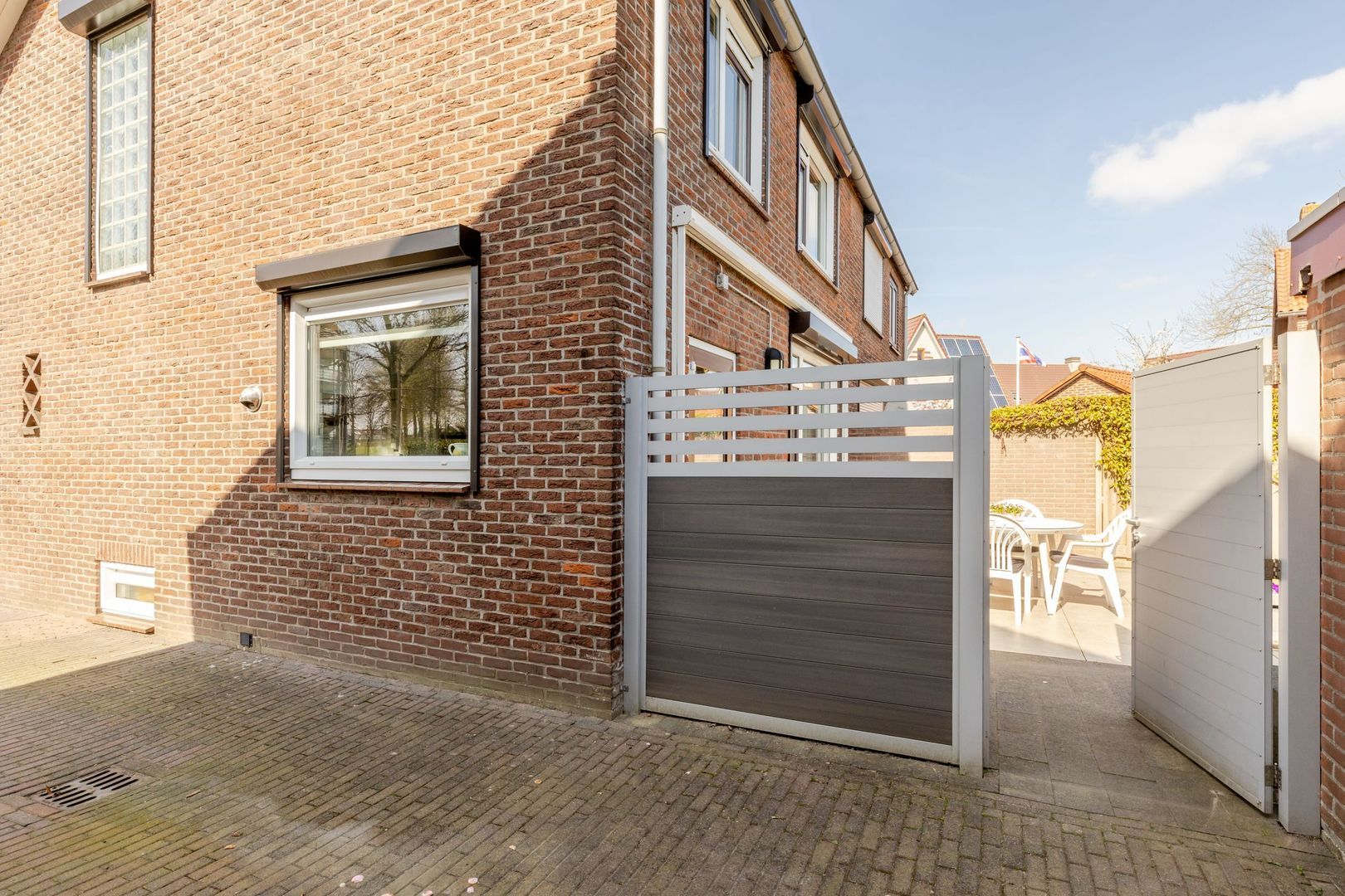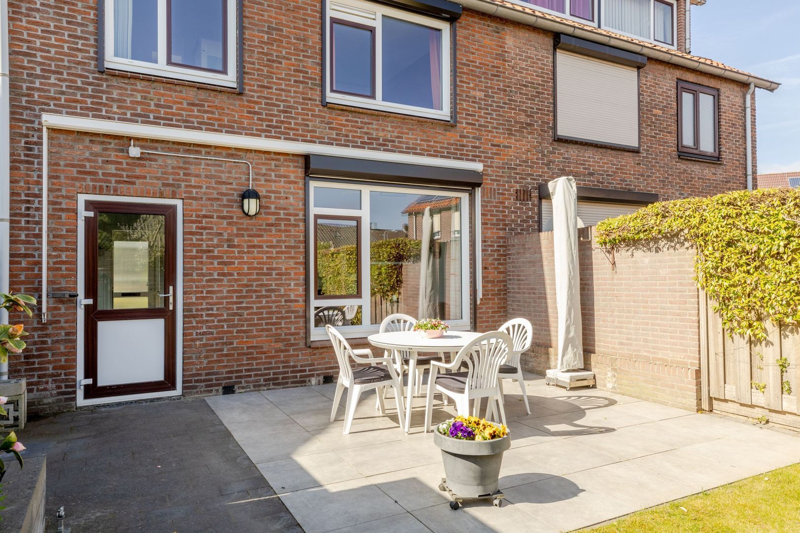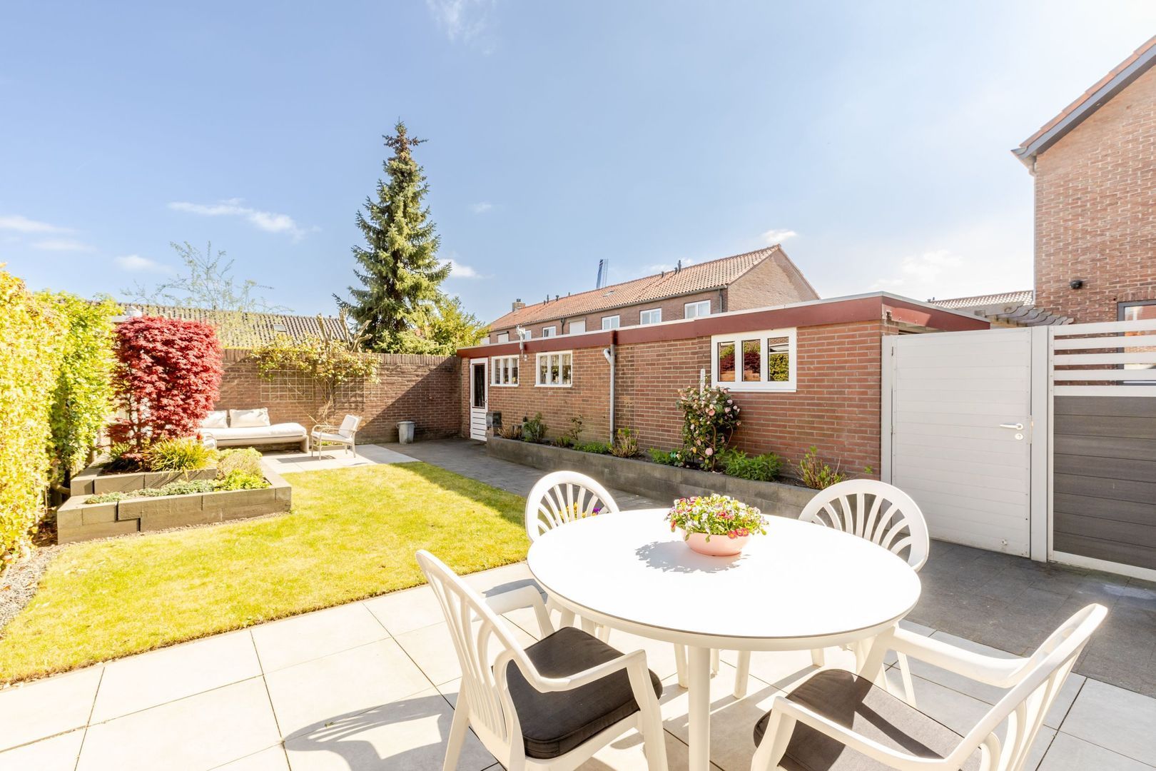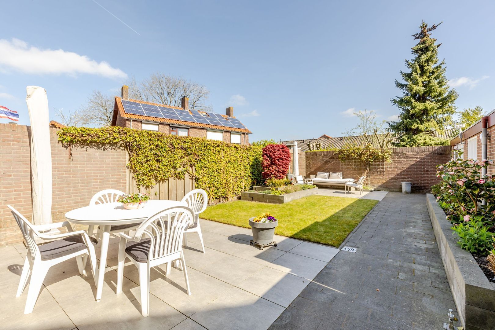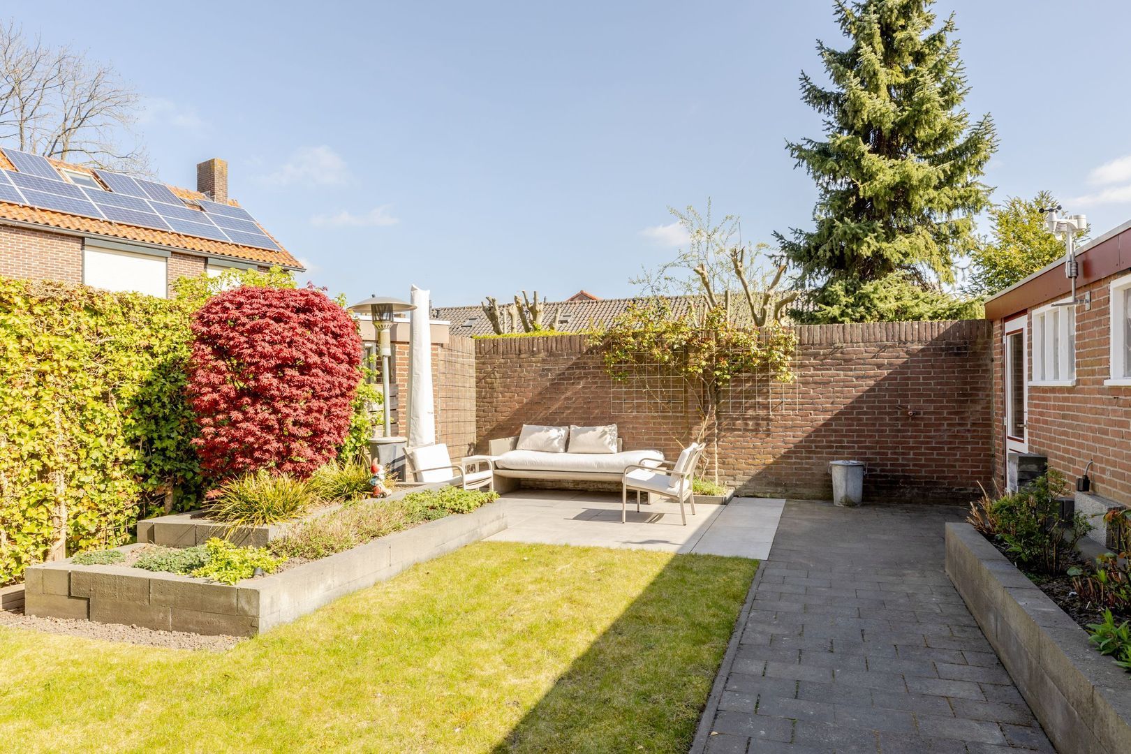 De achtertuin wordt begrensd door de extra lange garage/berging en een afsluitbare poort. Hierdoor biedt deze veel privacy. Er zijn twee flinke terrassen aangelegd, zodat er optimaal genoten kan worden van zon of schaduw.