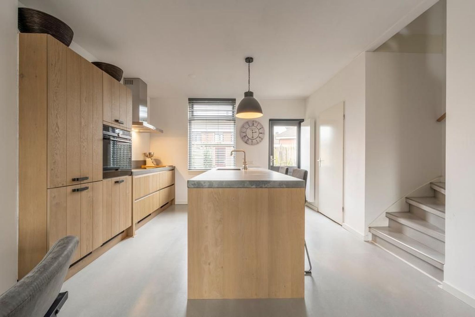 Ruime, strak afgewerkte tussenwoning met tuin en stenen berging. Ligging in een rustige woonwijk vlakbij het centrum op een perceel van 130 m² eigen grond.