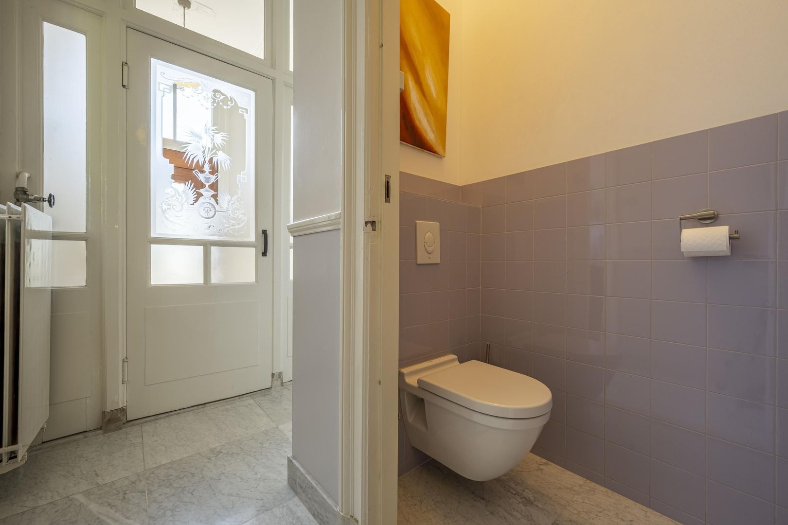 Deze uit 1910 daterende lichte en ruime woning kenmerkt zich door de vele royale vertrekken, hoge gestucte plafonds en diverse authentieke details. De oorspronkelijke woning is omstreeks 1939 vergroot middels een aanbouw aan de achterkant. Deze heeft een eigen ingang en is bereikbaar via het zijpad.