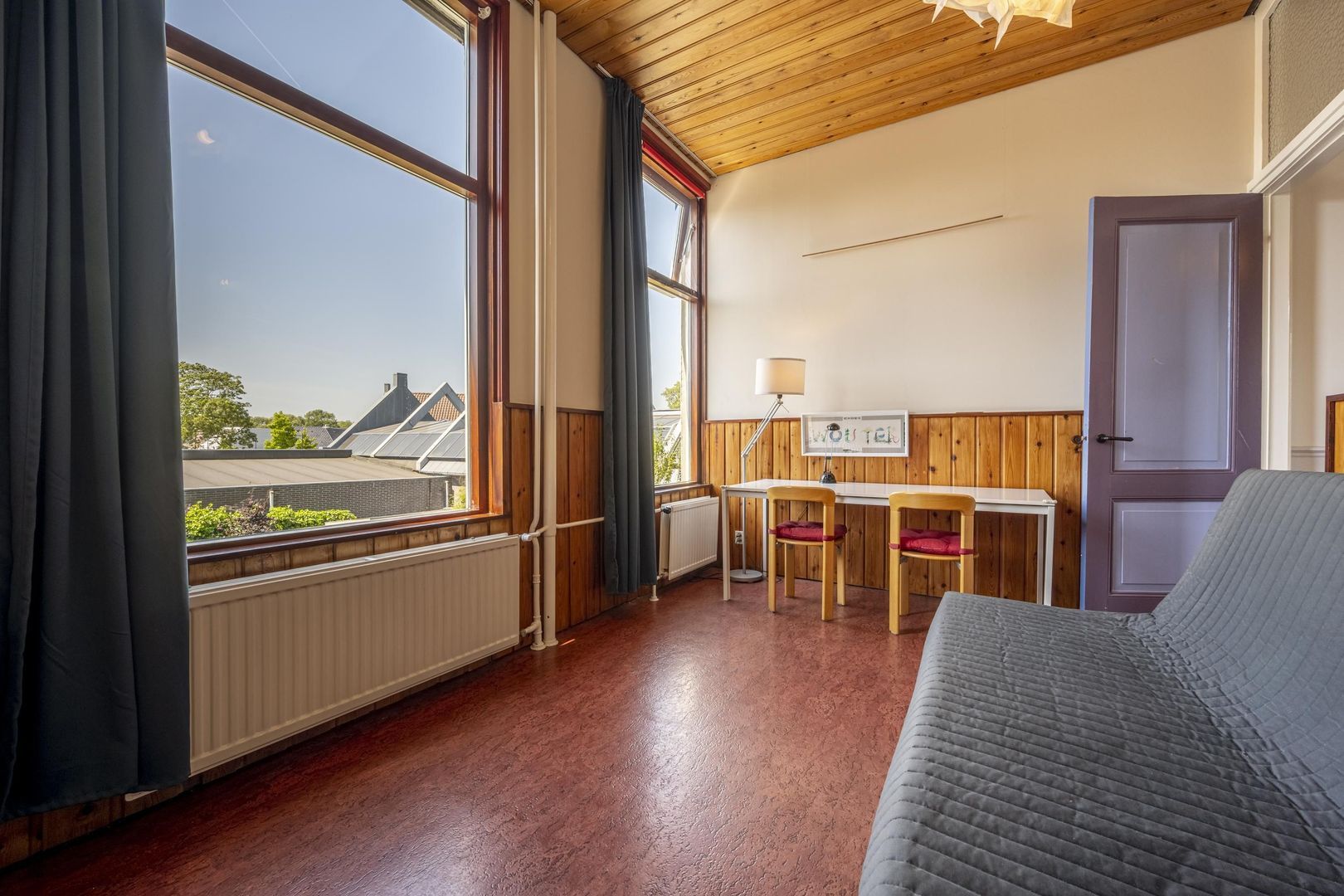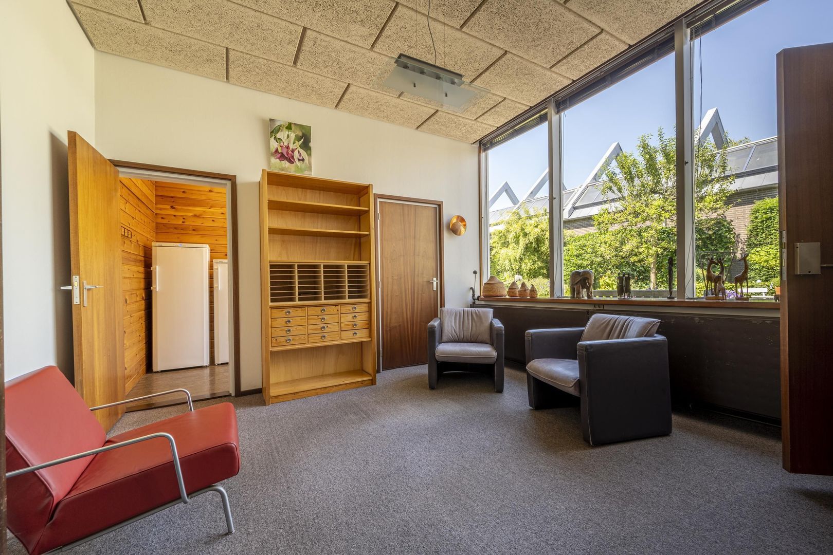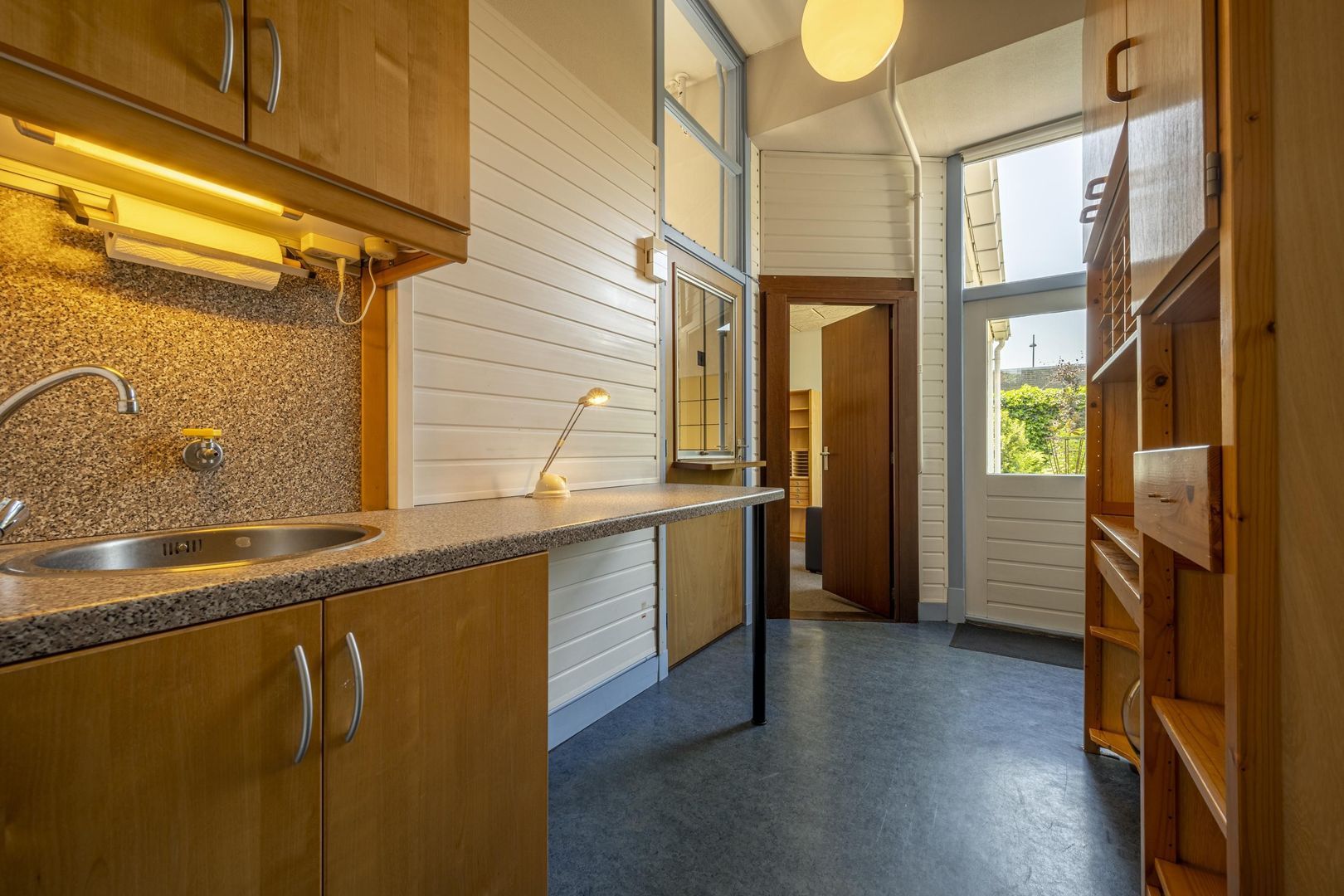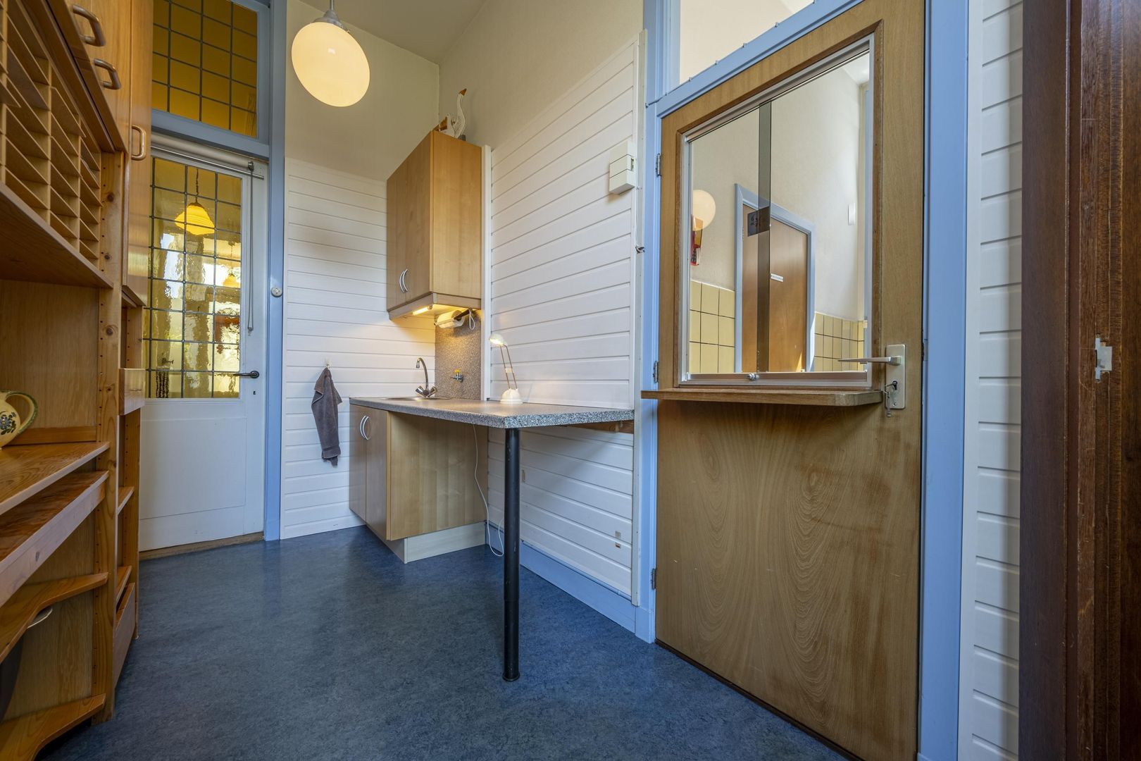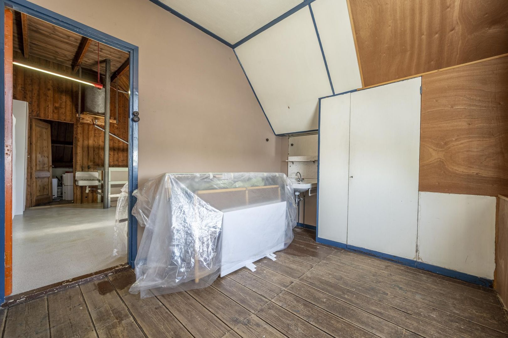Een hal aan de achterkant van de woning geeft toegang tot de aanbouw en slaapkamer/hobbykamer op de begane grond. De aanbouw bestaat uit twee delen en biedt na enige renovatie tal van mogelijkheden.