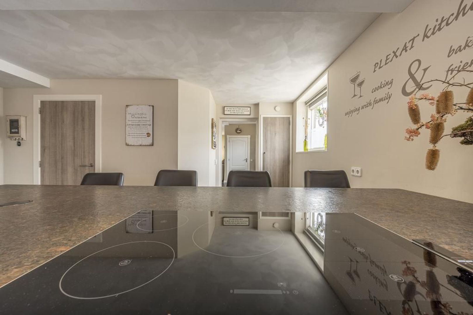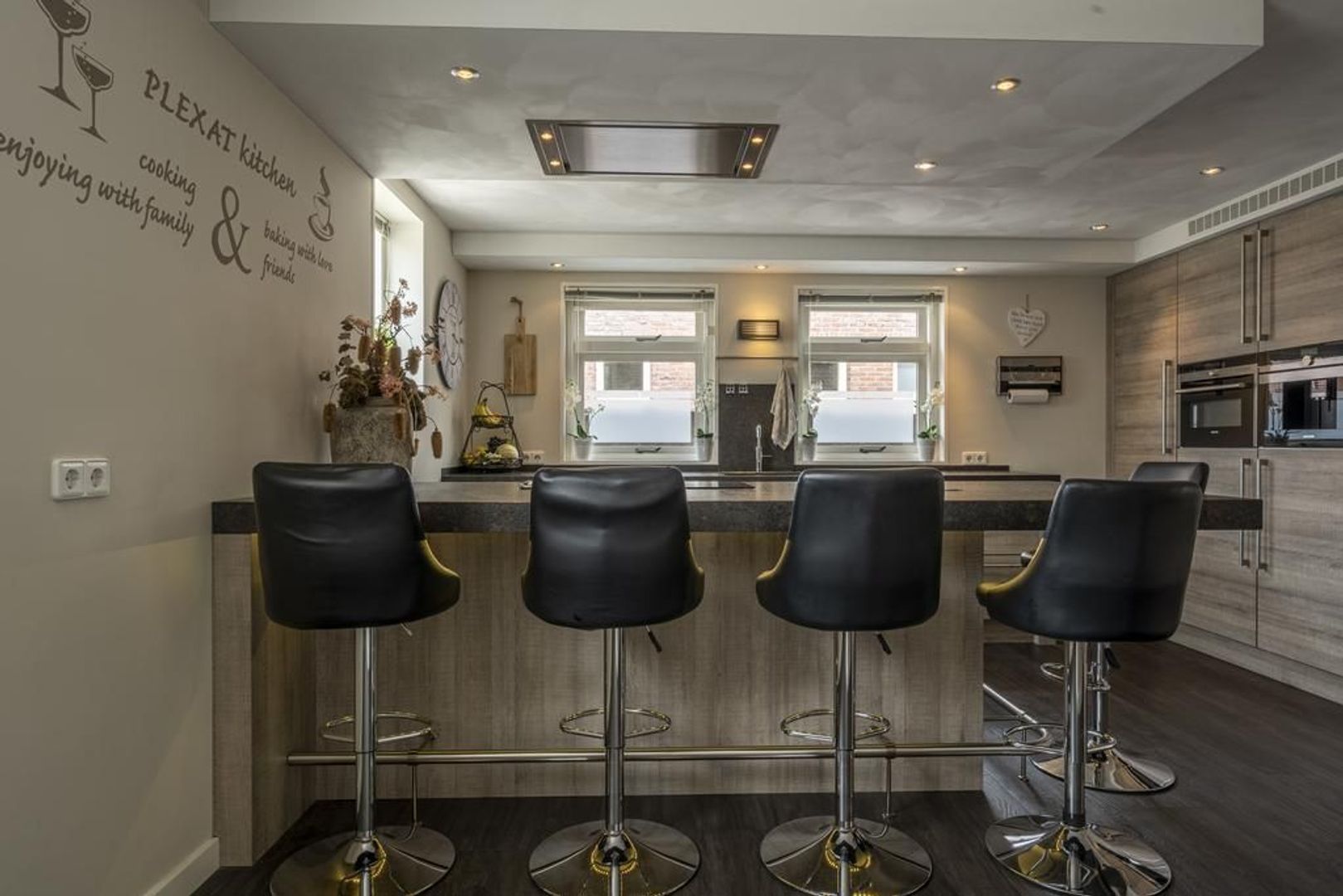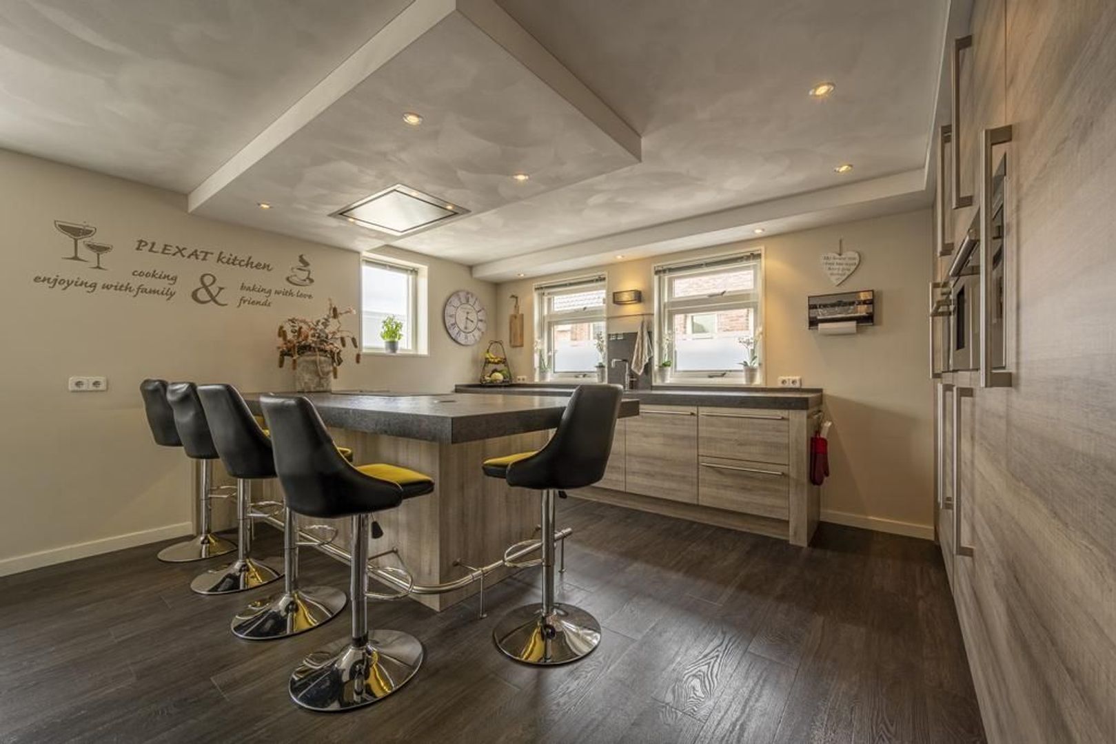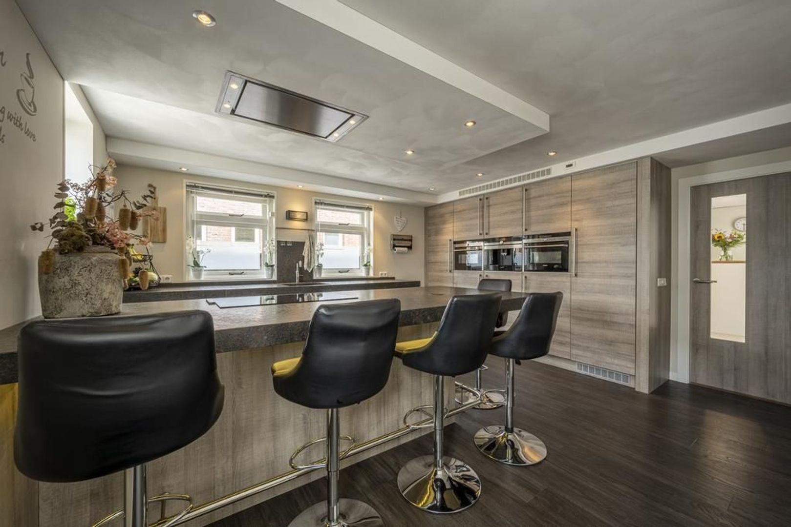 Ruime woonkeuken met moderne, uitgebreide inrichting met eiland/bargedeelte, luxe granieten aanrechtblad en complete inbouwapparatuur. Deze bestaat onder andere uit een koffiemachine, twee combi-magnetrons, gecombineerde kookplaat, vaatwasser, afzuigkap, koelkast en Quooker.