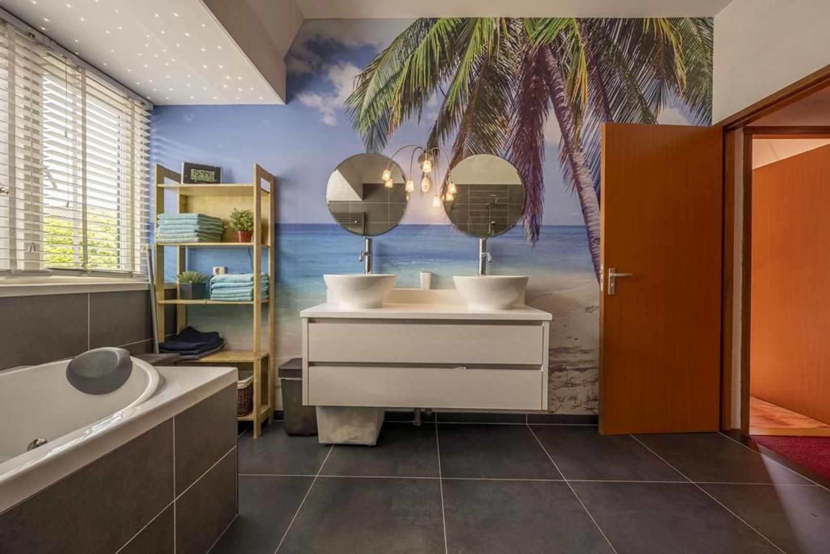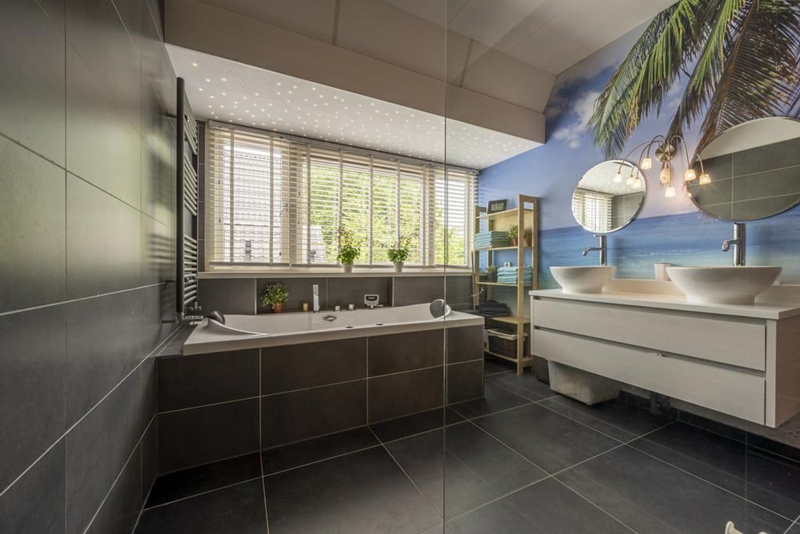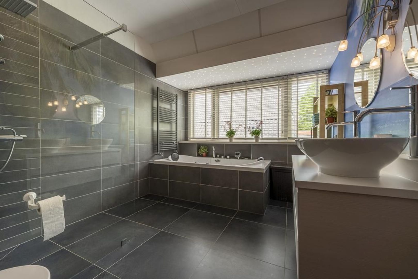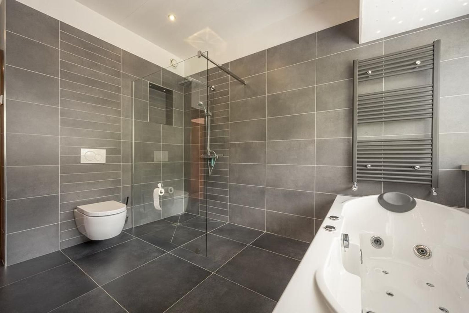 De andere badkamer is modern en ingericht met een inloopdouche, wastafelmeubel met kommen, ligbad met jetstreams en toilet.