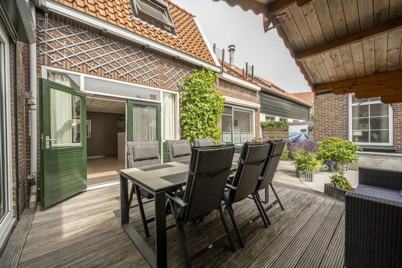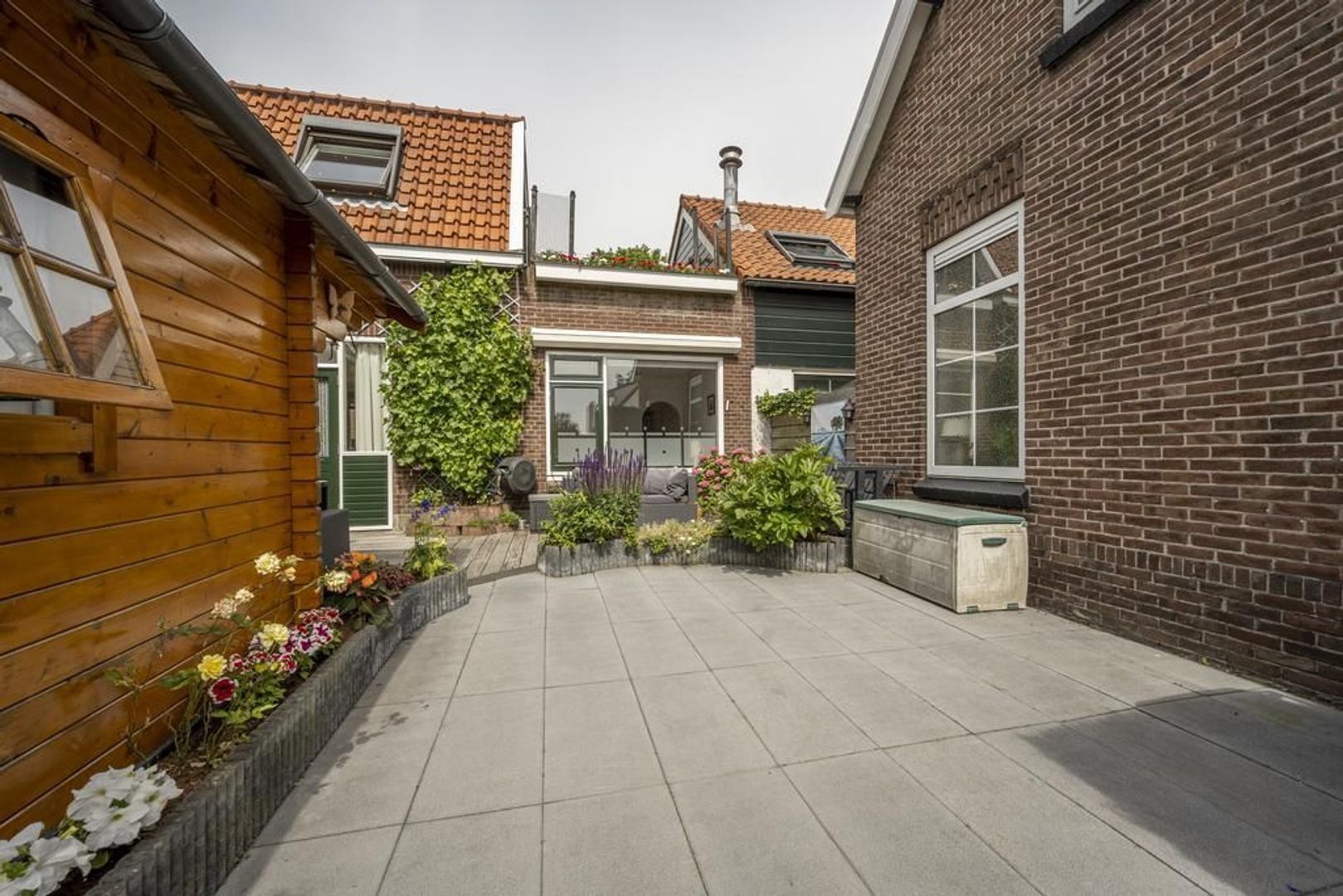 De tuin ligt beschut tussen de woningen. Deze bestaat uit een fijn terras, diverse borders en een houten berging.