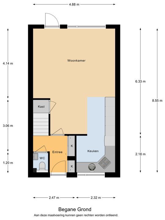 De indeling is als volgt: entree, hal met meterkast, praktische garderobekast en toilet met wandcloset en fonteinbakje.