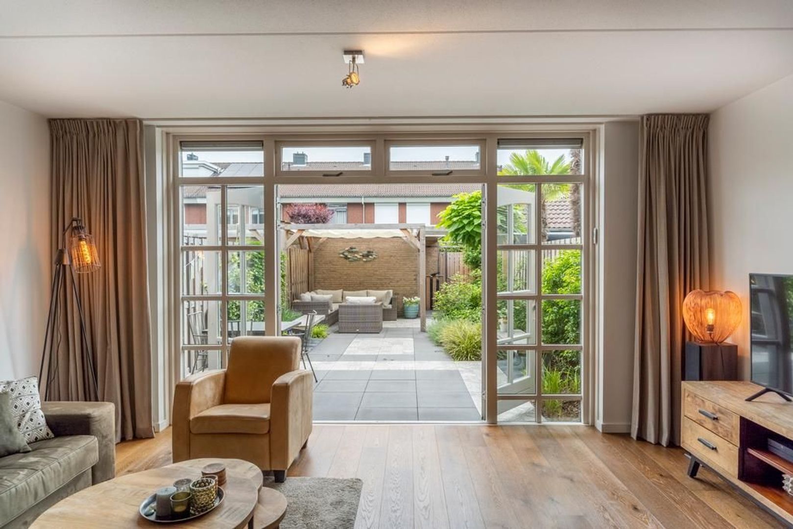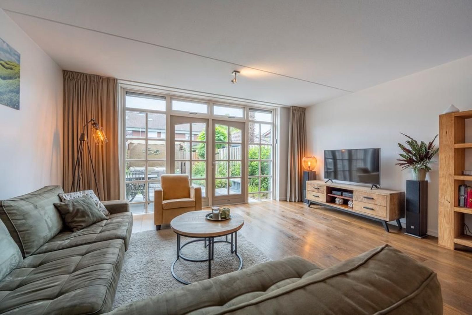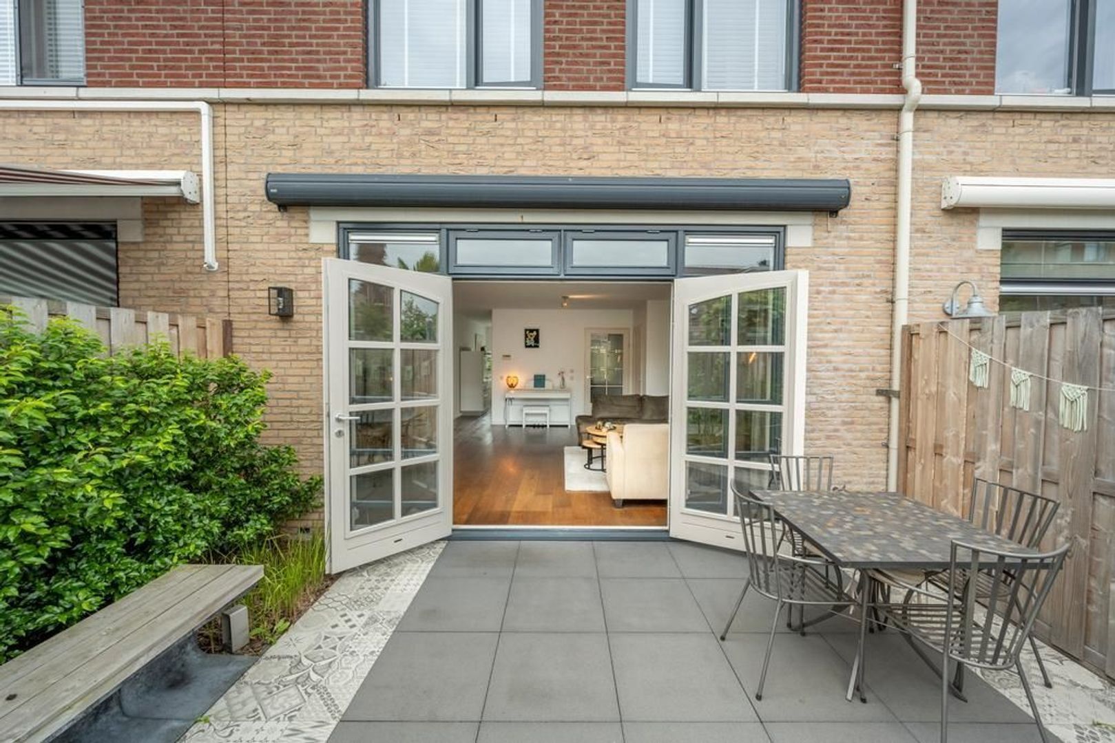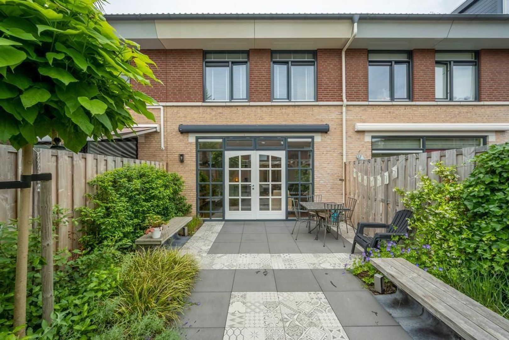 In de achtergevel is de oorspronkelijke schuifpui vervangen door een fraaie houten pui met vlakverdeling en openslaande deuren. Een echte sfeermaker!