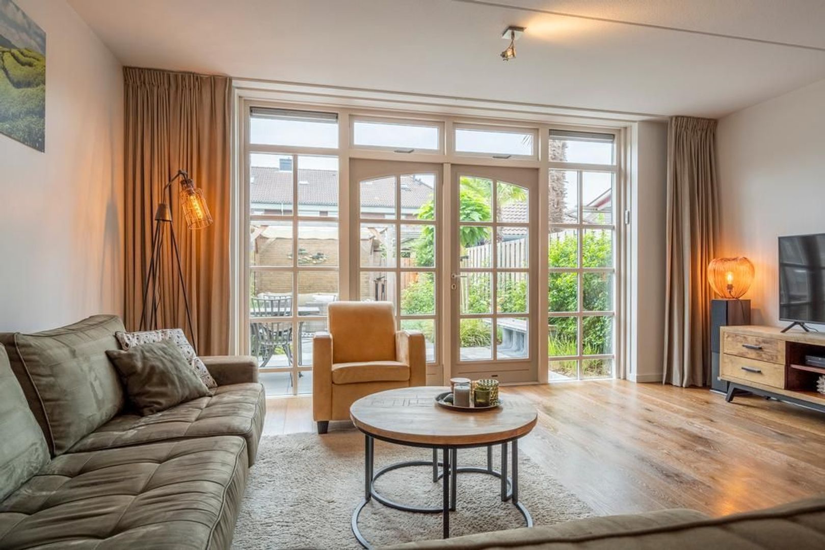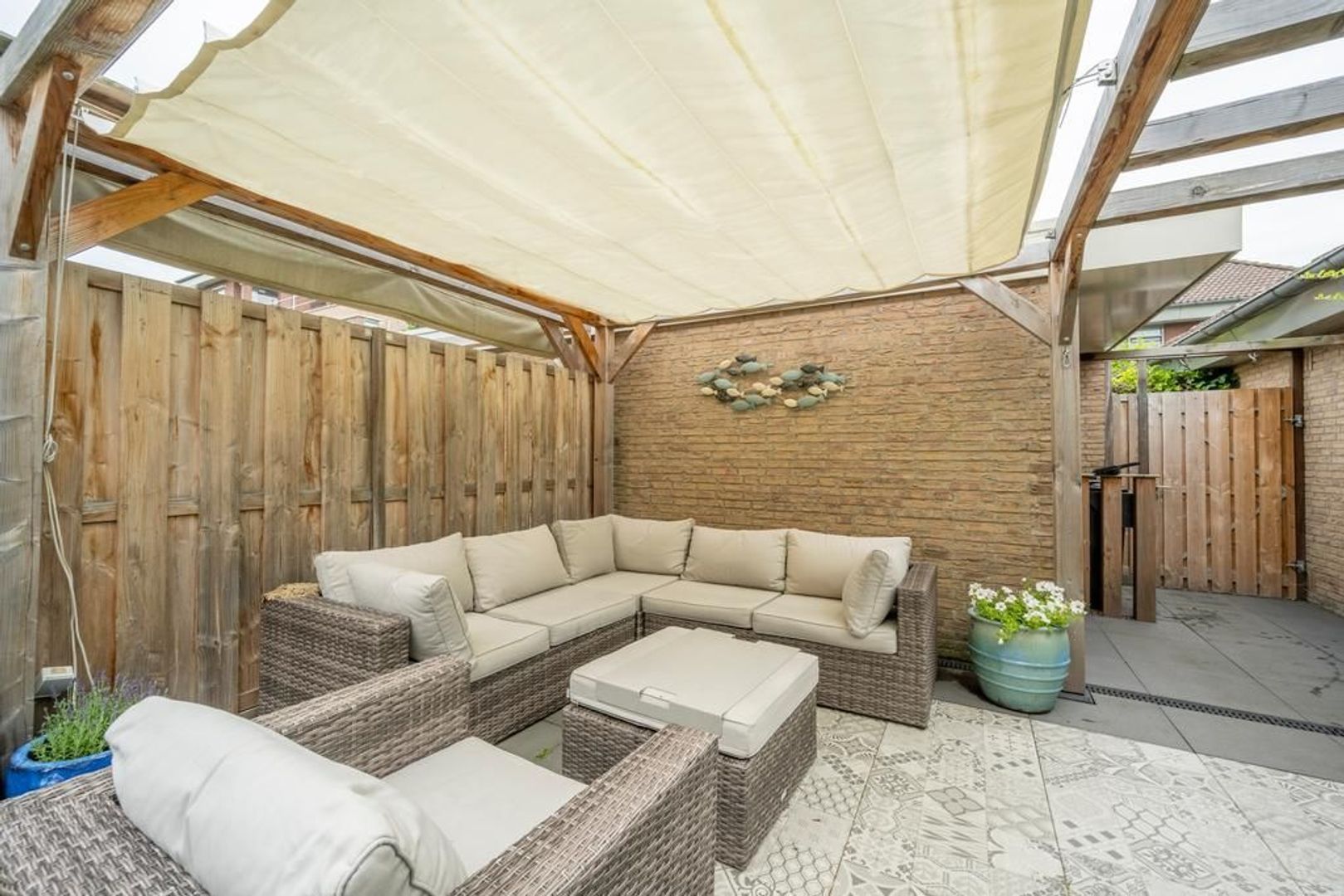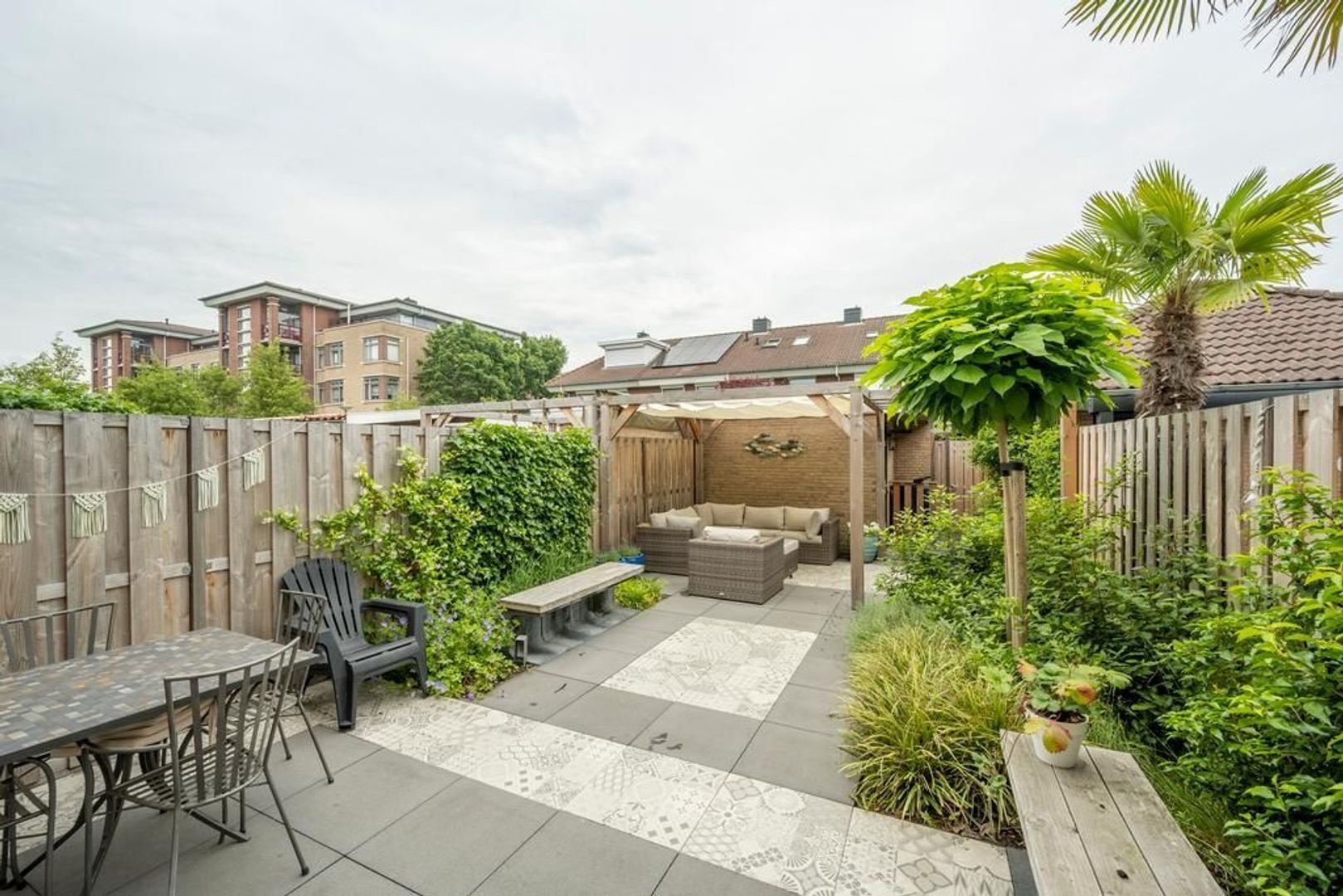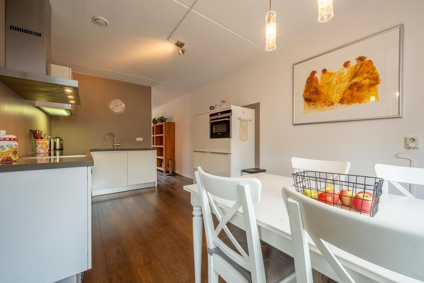 In de achtergevel is de oorspronkelijke schuifpui vervangen door een fraaie houten pui met vlakverdeling en openslaande deuren. Een echte sfeermaker!
