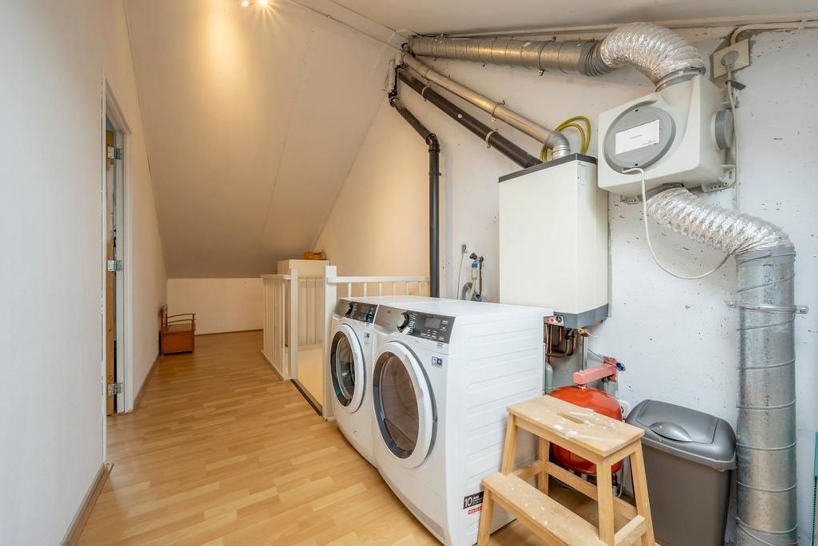 De tweede verdieping is verrassend. Een hoge kap en de dakkapel zorgen voor veel bruikbare ruimte. Op de voorzolder bevinden zich o.a. de aansluitingen voor de wasmachine, de cv-ketel en de mechanische ventilatie.
