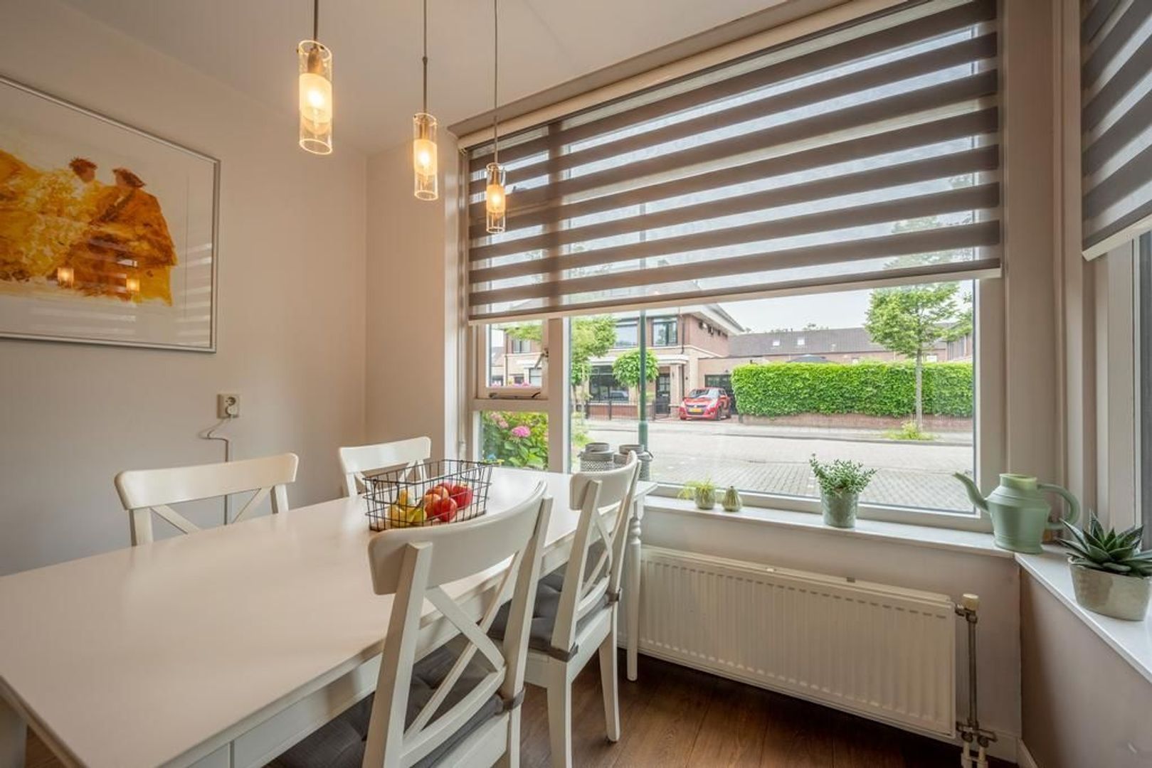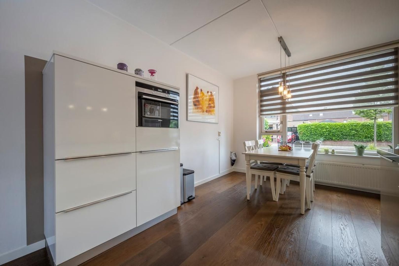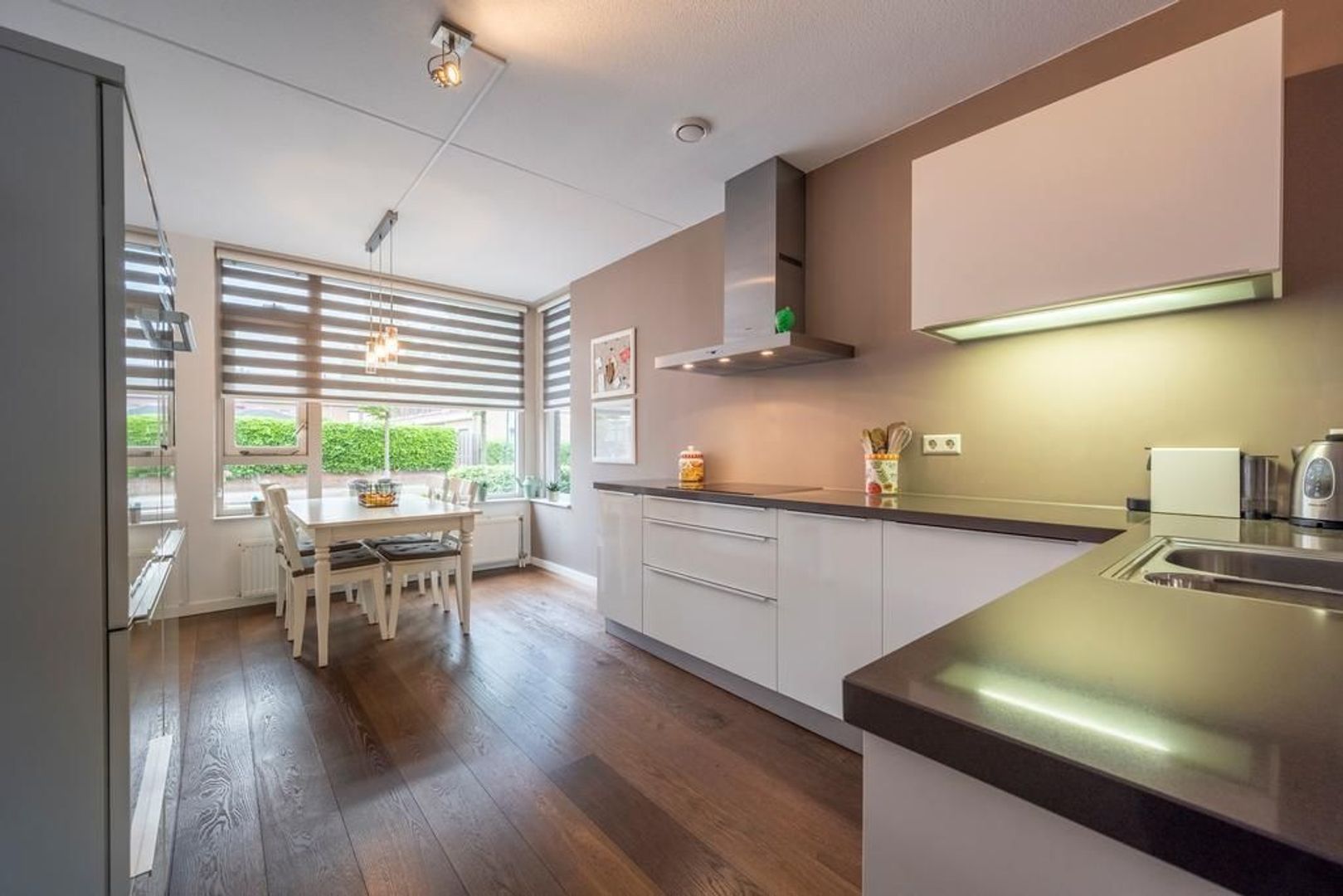 Aan de straatkant is de (woonkeuken) met ruimte voor een L-vormige inrichting en een eethoek. De erker zorgt voor een prettige lichtinval.