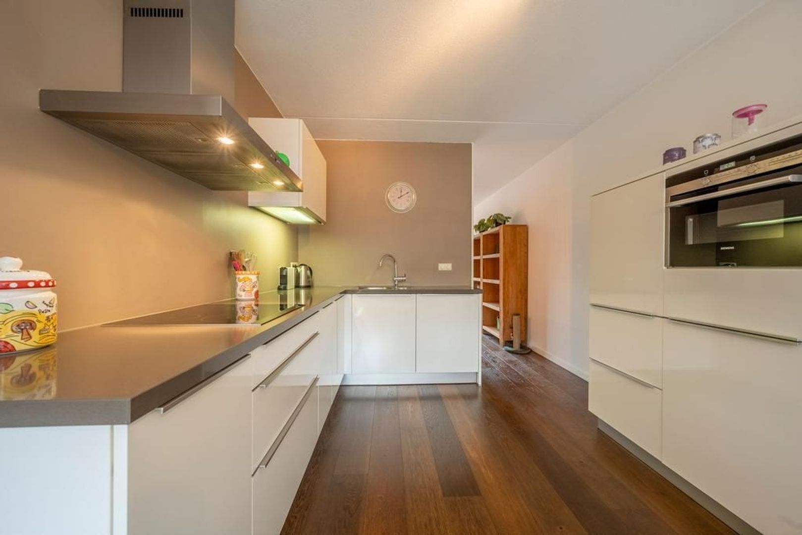 De keuken is modern en uitgevoerd met een composiet aanrechtblad, een inductie kookplaat, rvs afzuigkap in schouw, combi-oven, vriezer, koelkast, vaatwasser en Le Mans hoekkast (uittrekbaar).