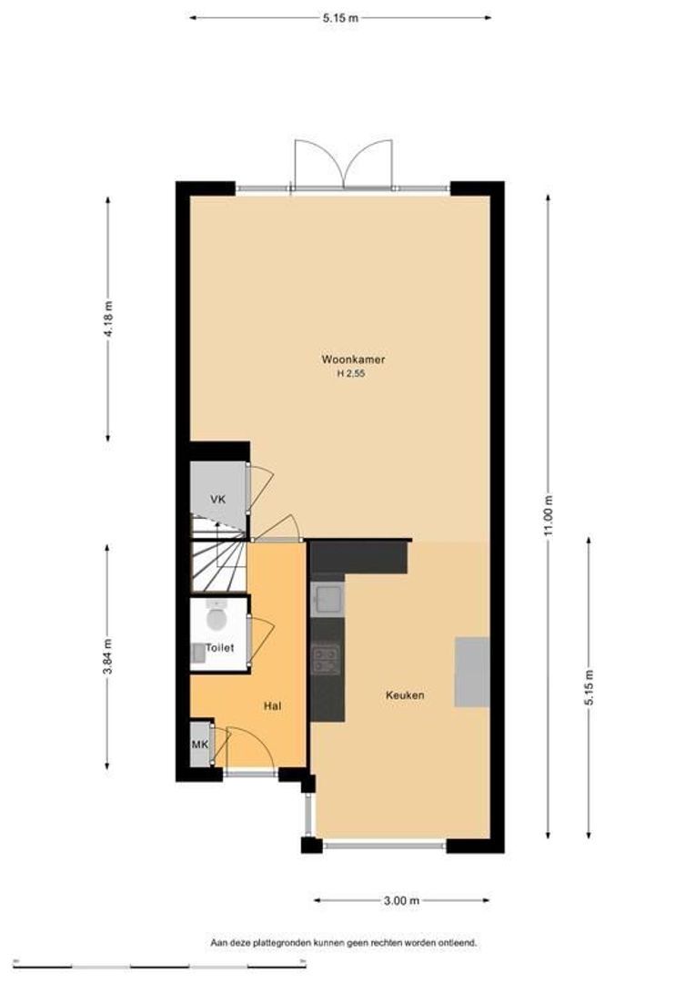 De indeling is als volgt: entree, hal met meterkast, trapopgang en toiletruimte.
