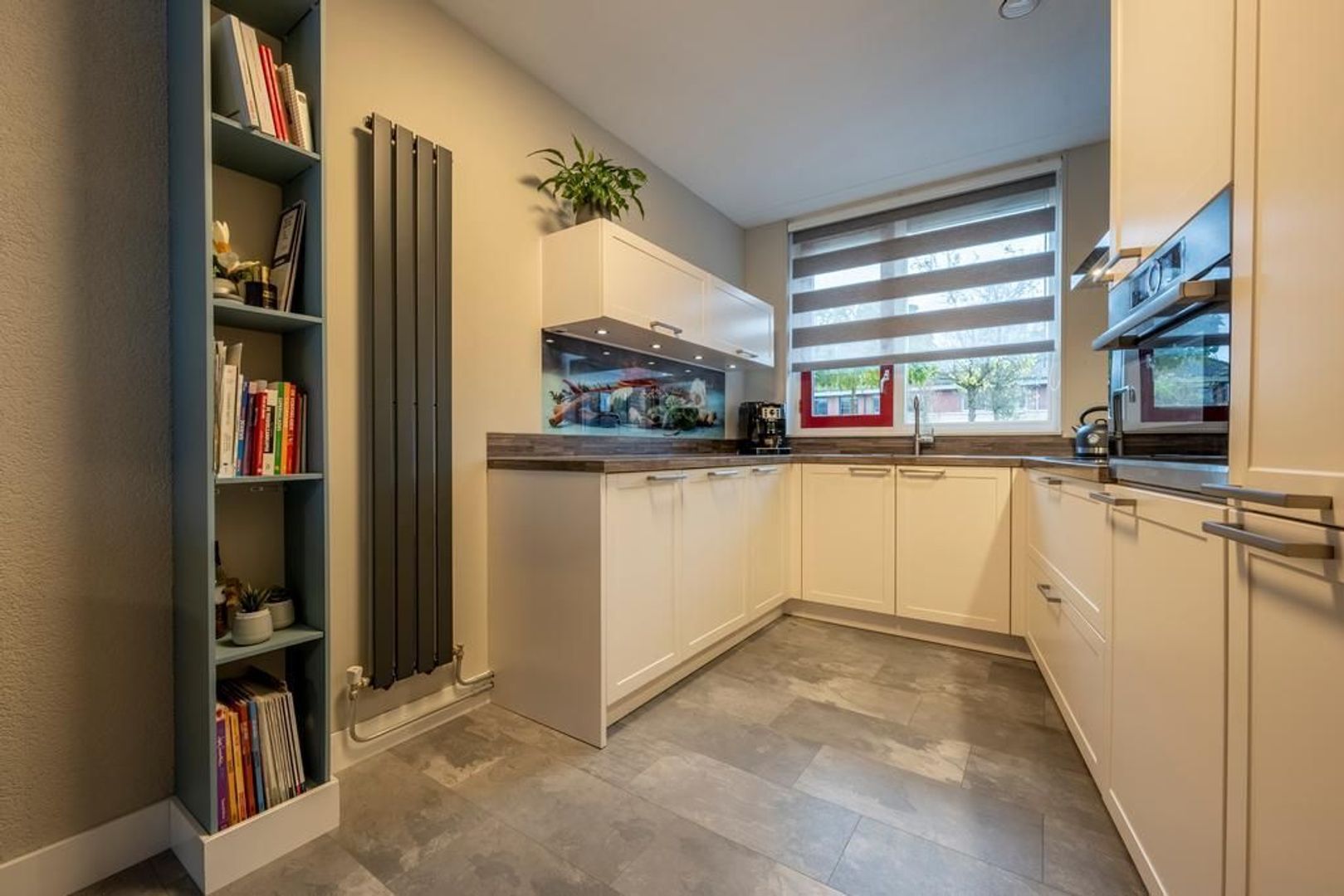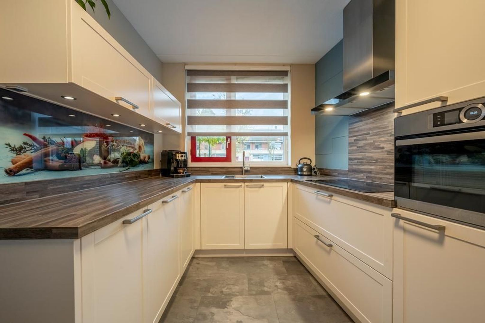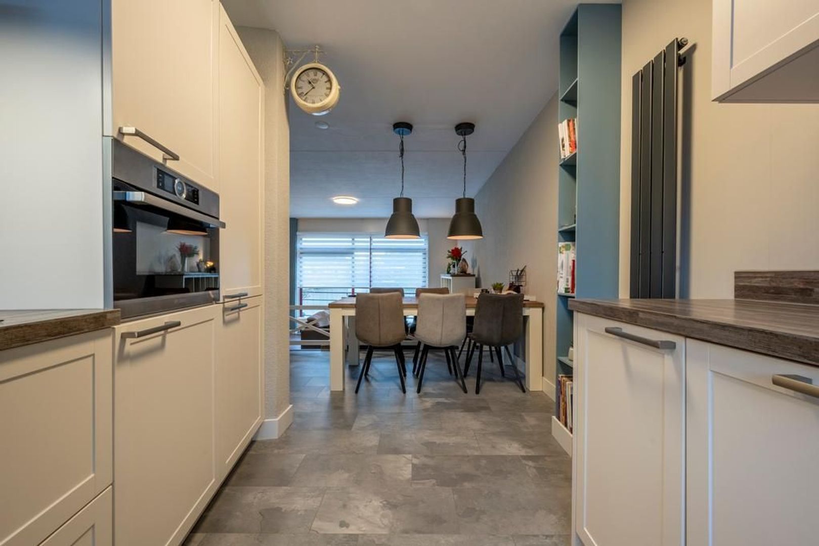 De ruime open keuken is in 2020 vernieuwd en uitgevoerd met inbouwapparatuur.