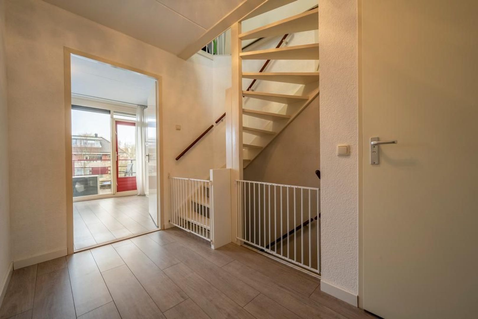De trap bevindt zich ook in deze ruimte. Hieronder is een praktische trapkast.