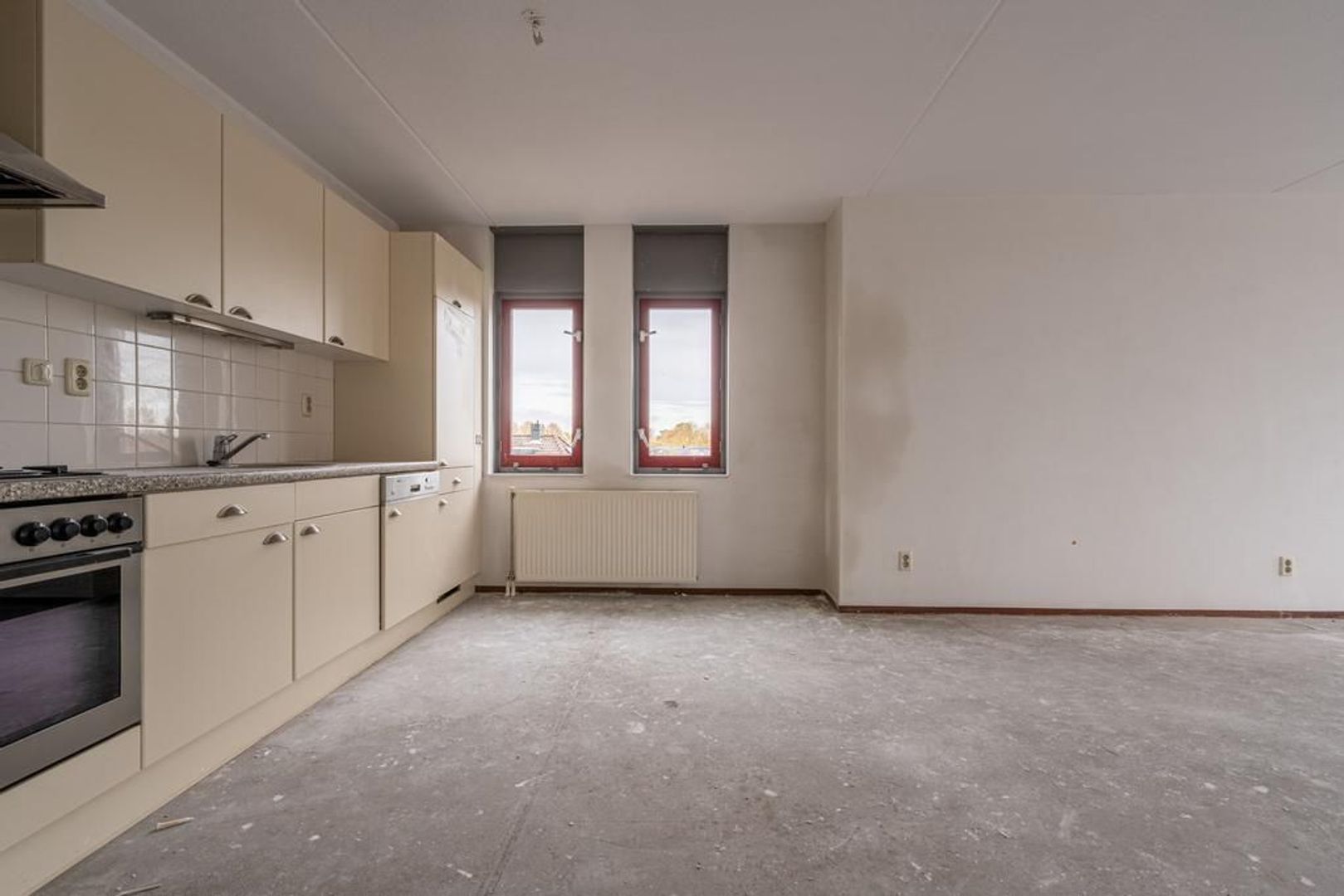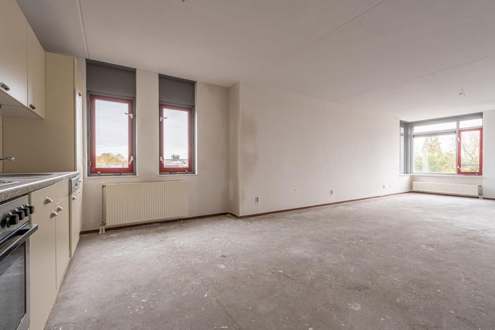 De ruime woonkamer is mooi licht, wat mede komt door het extra zijraam in de keuken.