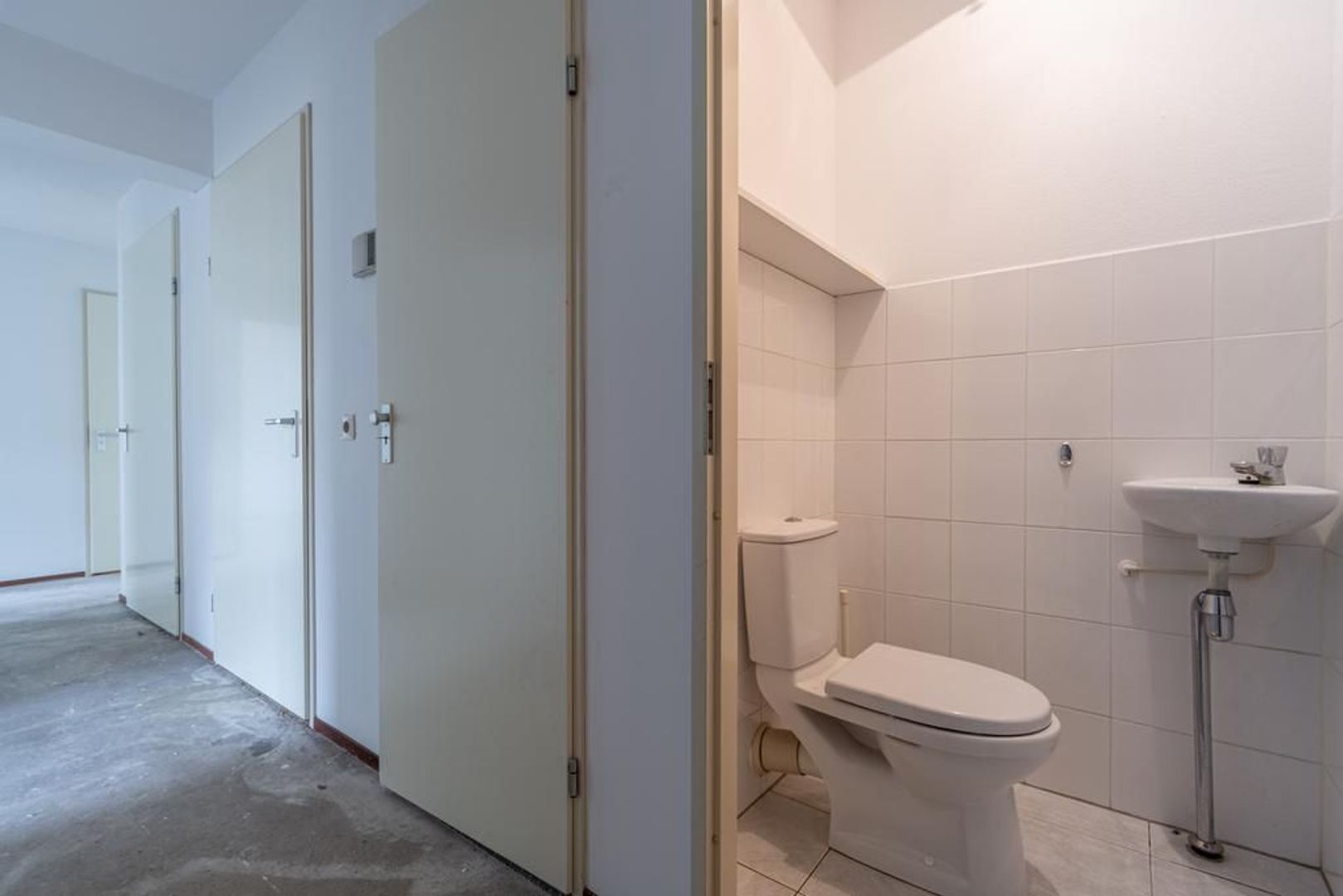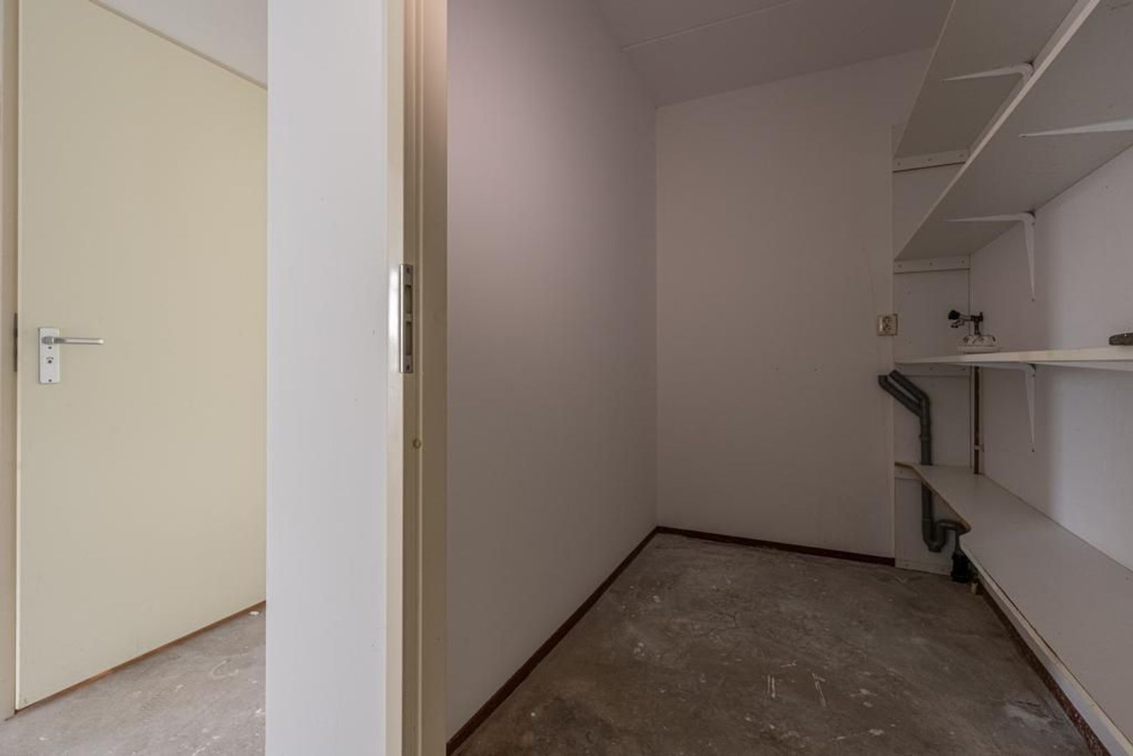 Woning: hal met toiletruimte, meterkast, cv-kast en praktische vaste kast met de aansluitingen voor de wasmachine.