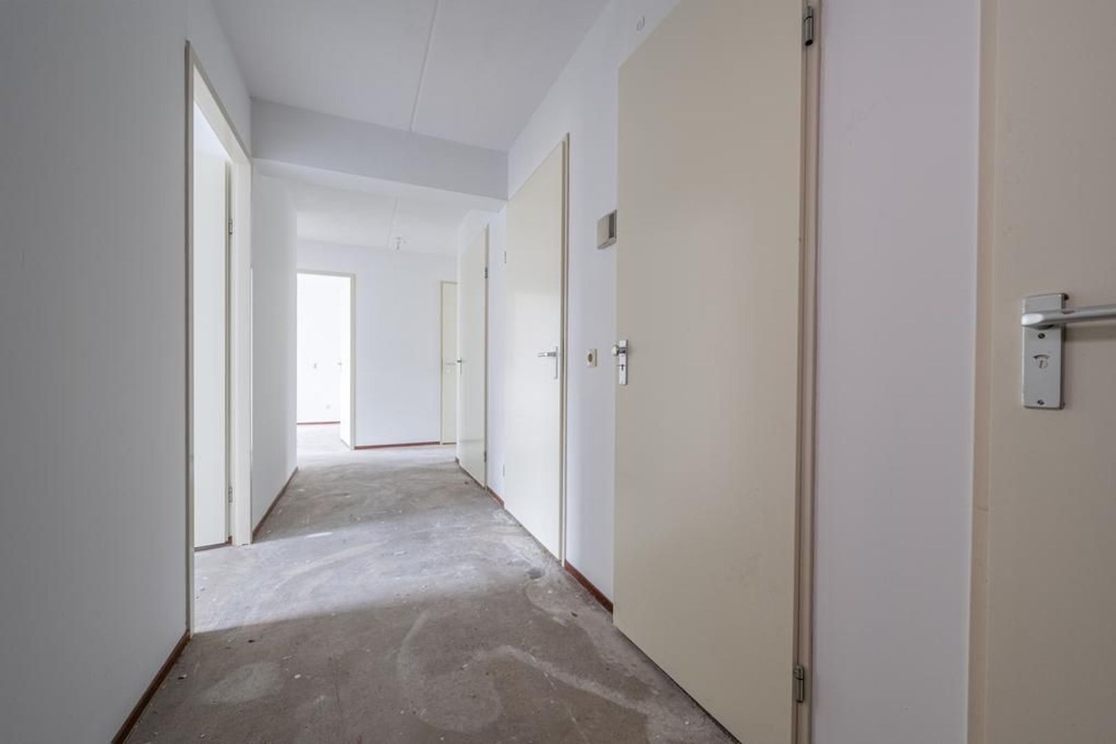 Het binnen schilder- en stucwerk is recent gedeeltelijk opnieuw uitgevoerd en ten tijde van de foto’s was dit nog niet droog. De afwerkingen dateren verder vanaf de bouw.