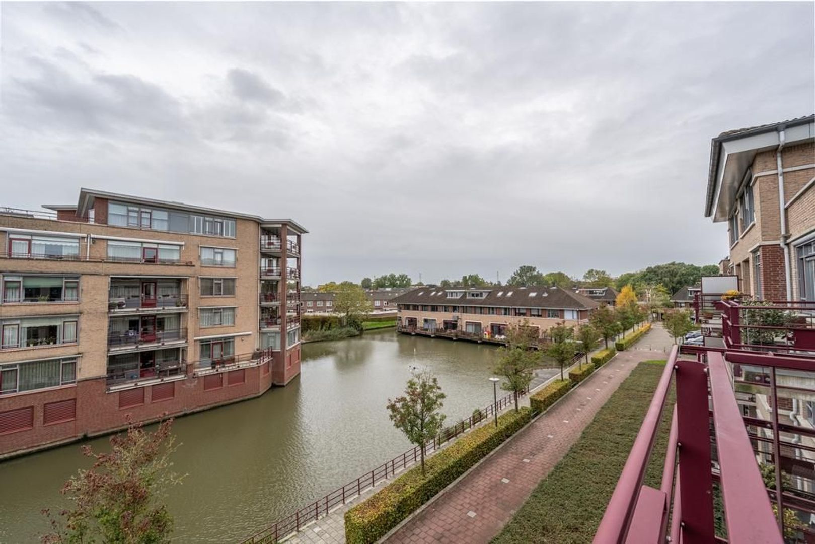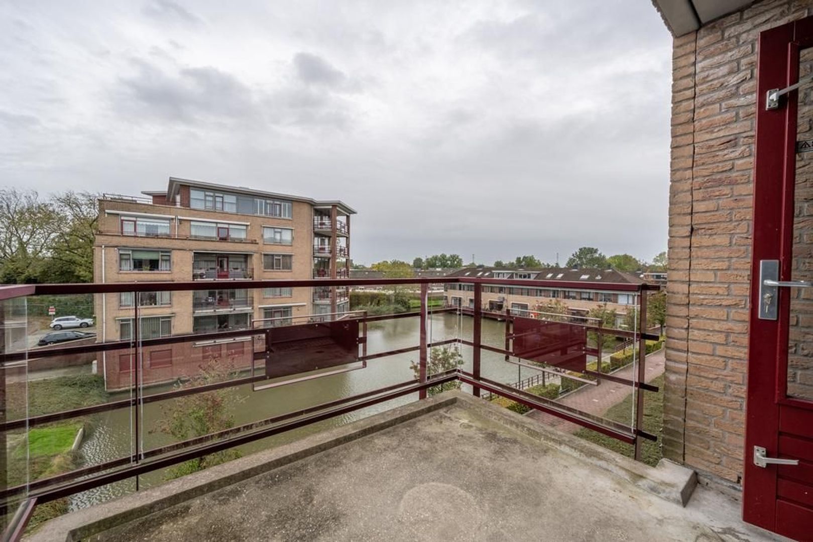 Het balkon is via de woonkamer bereikbaar. Dit biedt een prachtig uitzicht over de wijk , de vijver en de omgeving.
