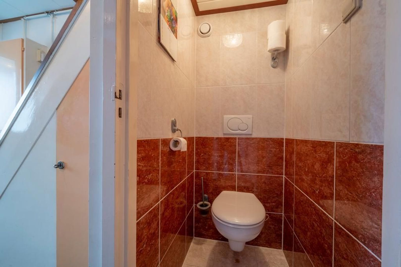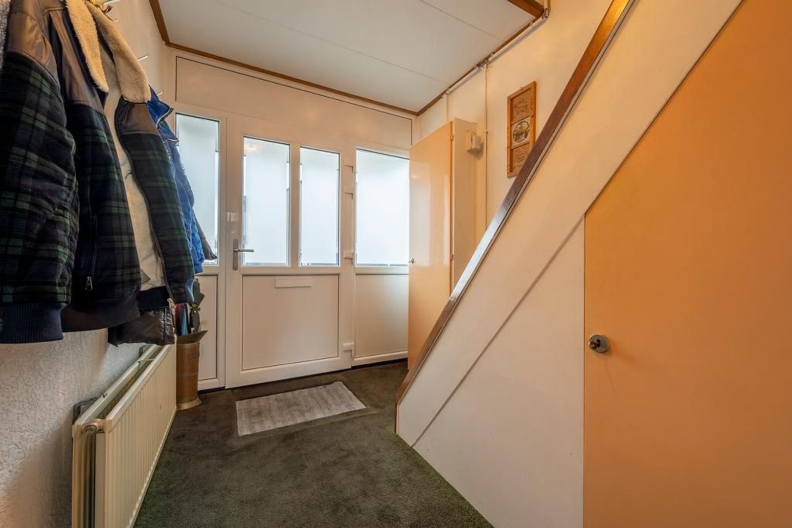 Entree, hal met meterkast, trapopgang met bergkast en keurige toiletruimte.