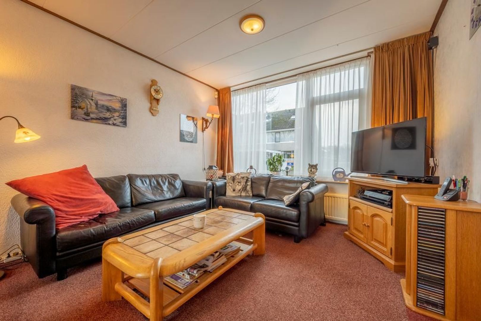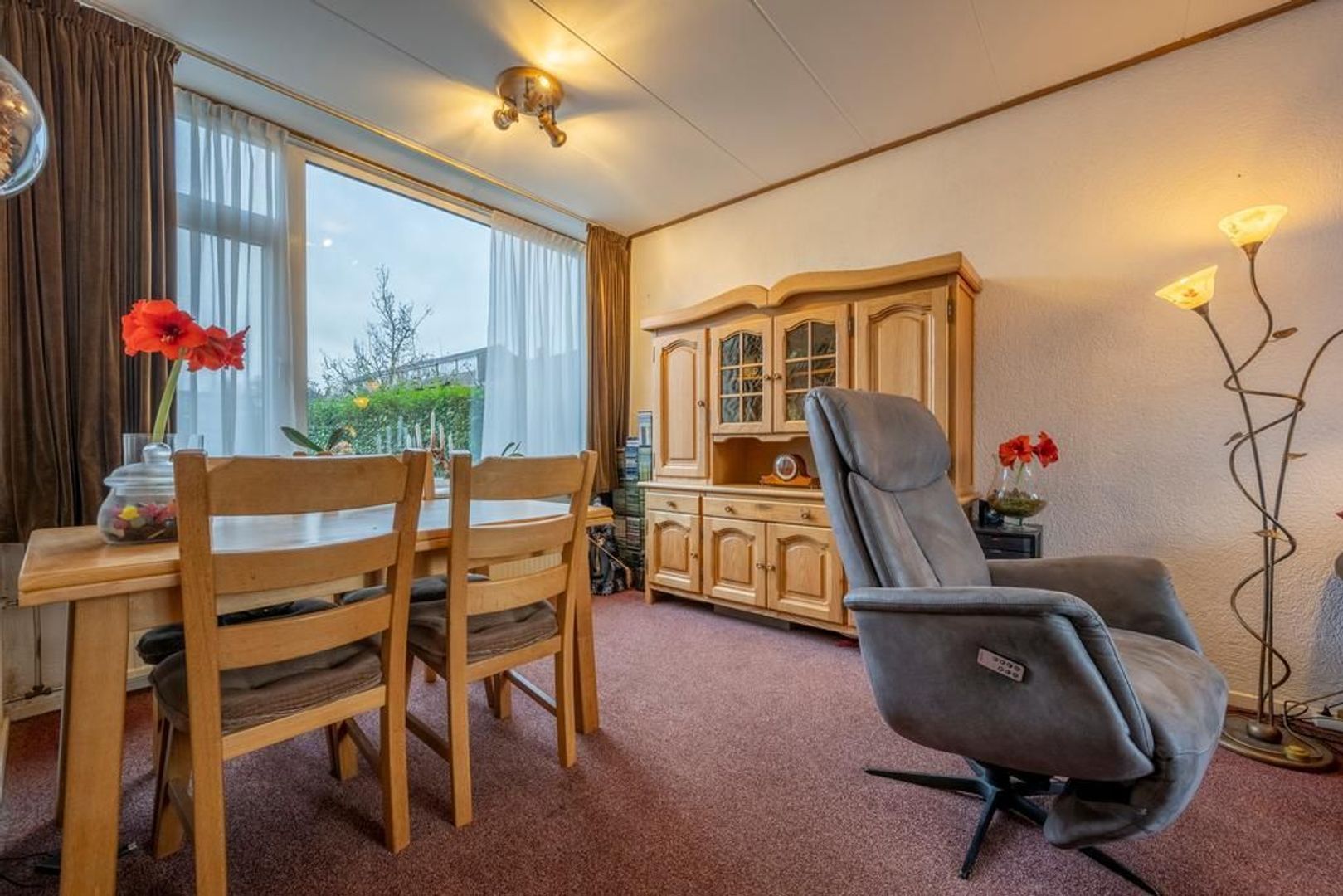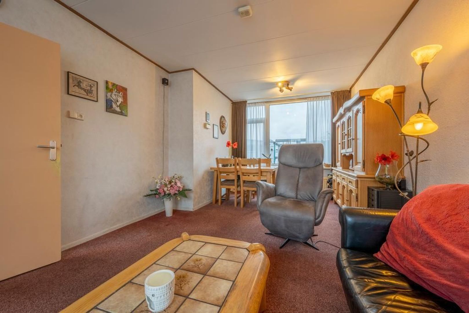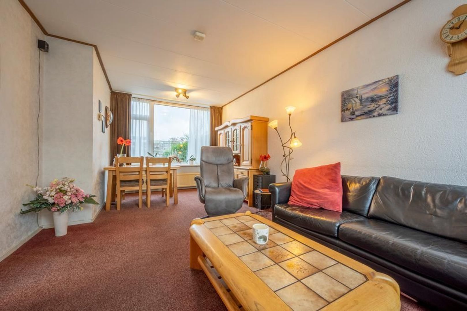 Doorzon woonkamer met veel lichtinval.