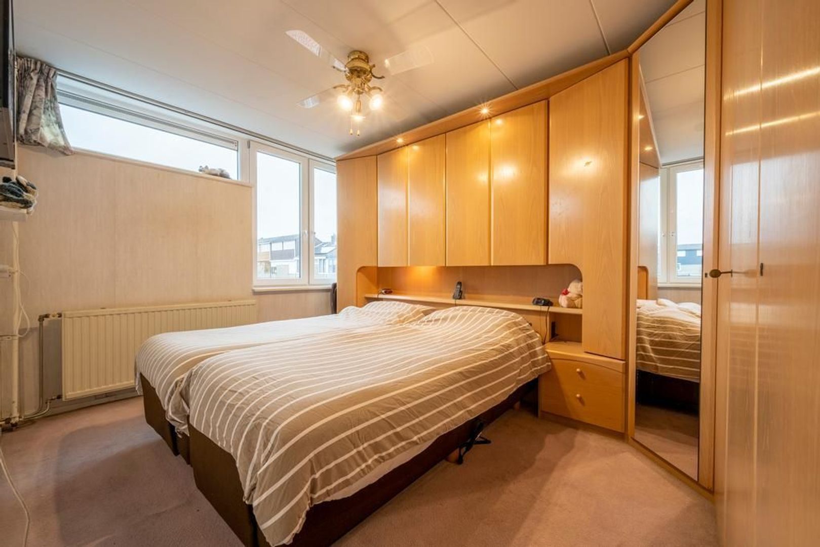 In de derde slaapkamer is een grote schuifkastenwand gemaakt.