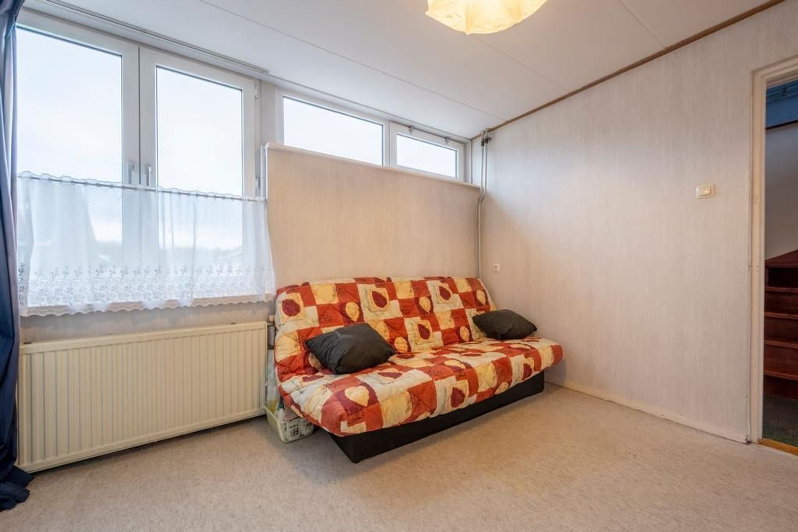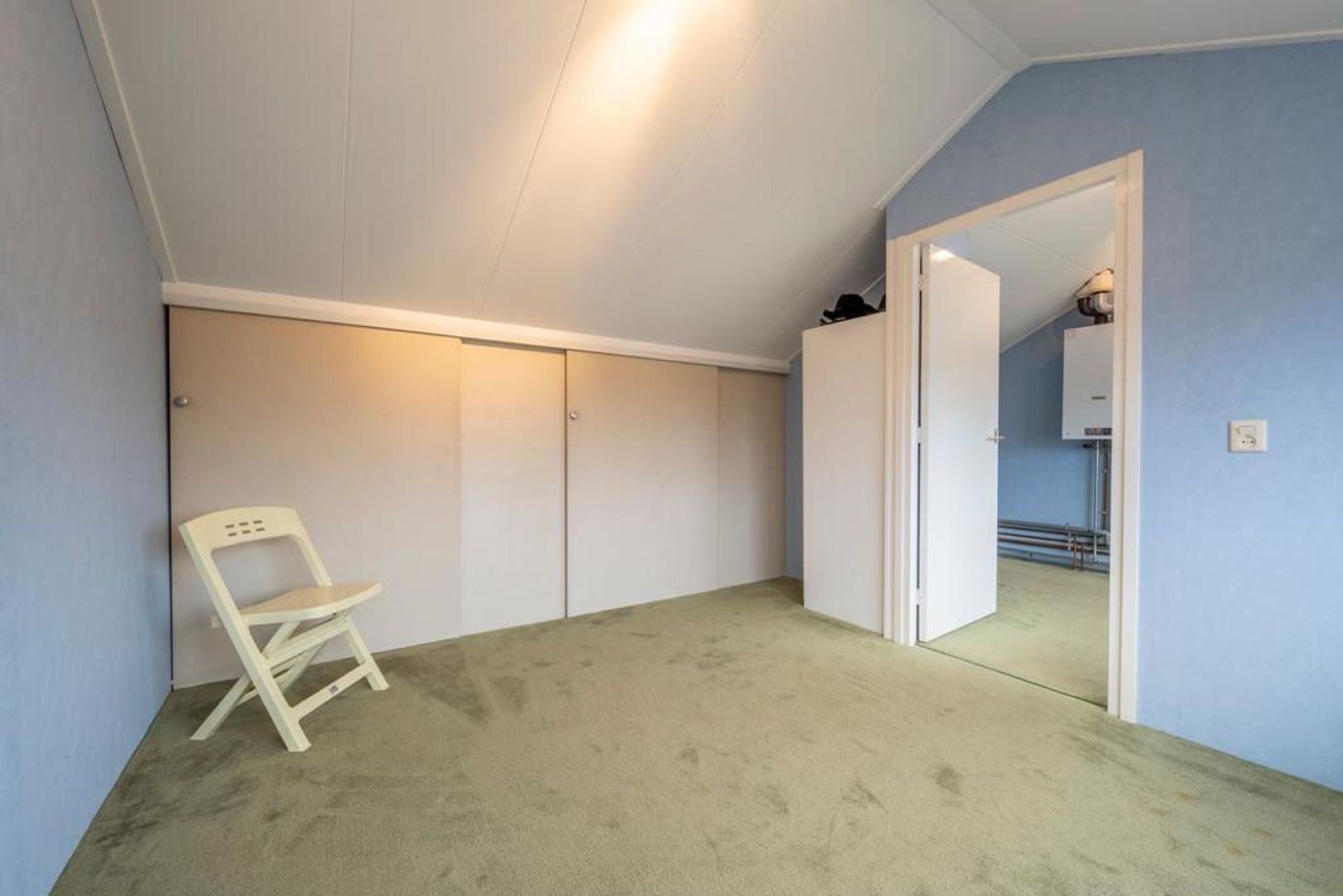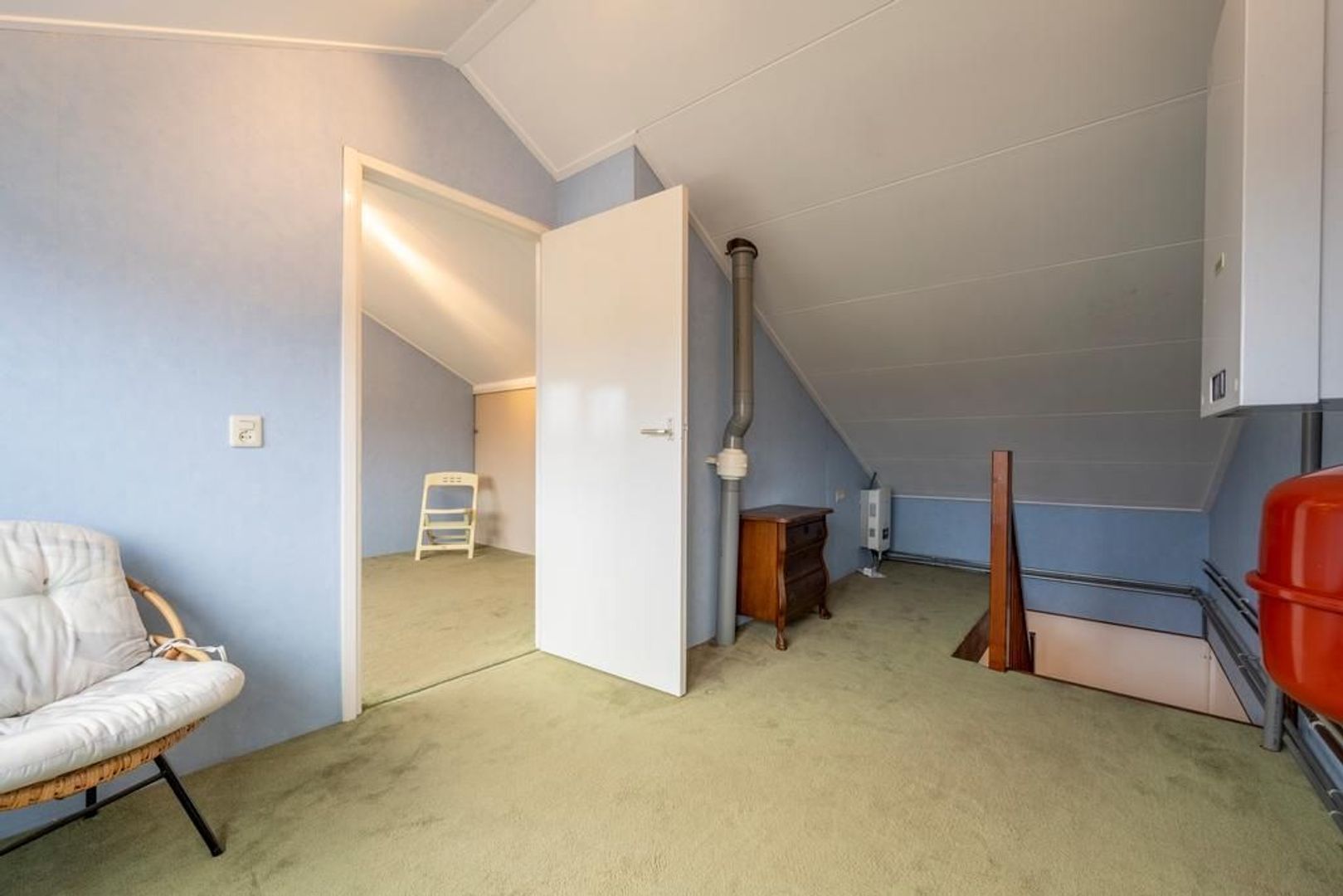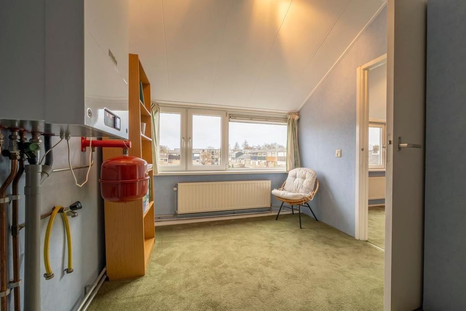 De cv-ketel hangt op de voorzolder. Hier is nog genoeg ruimte om bijvoorbeeld een werkplek in te richten.