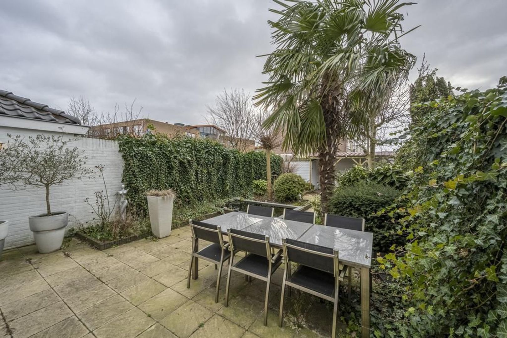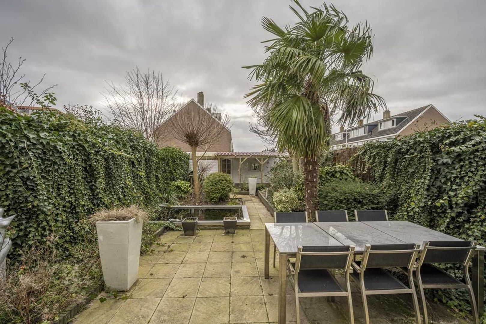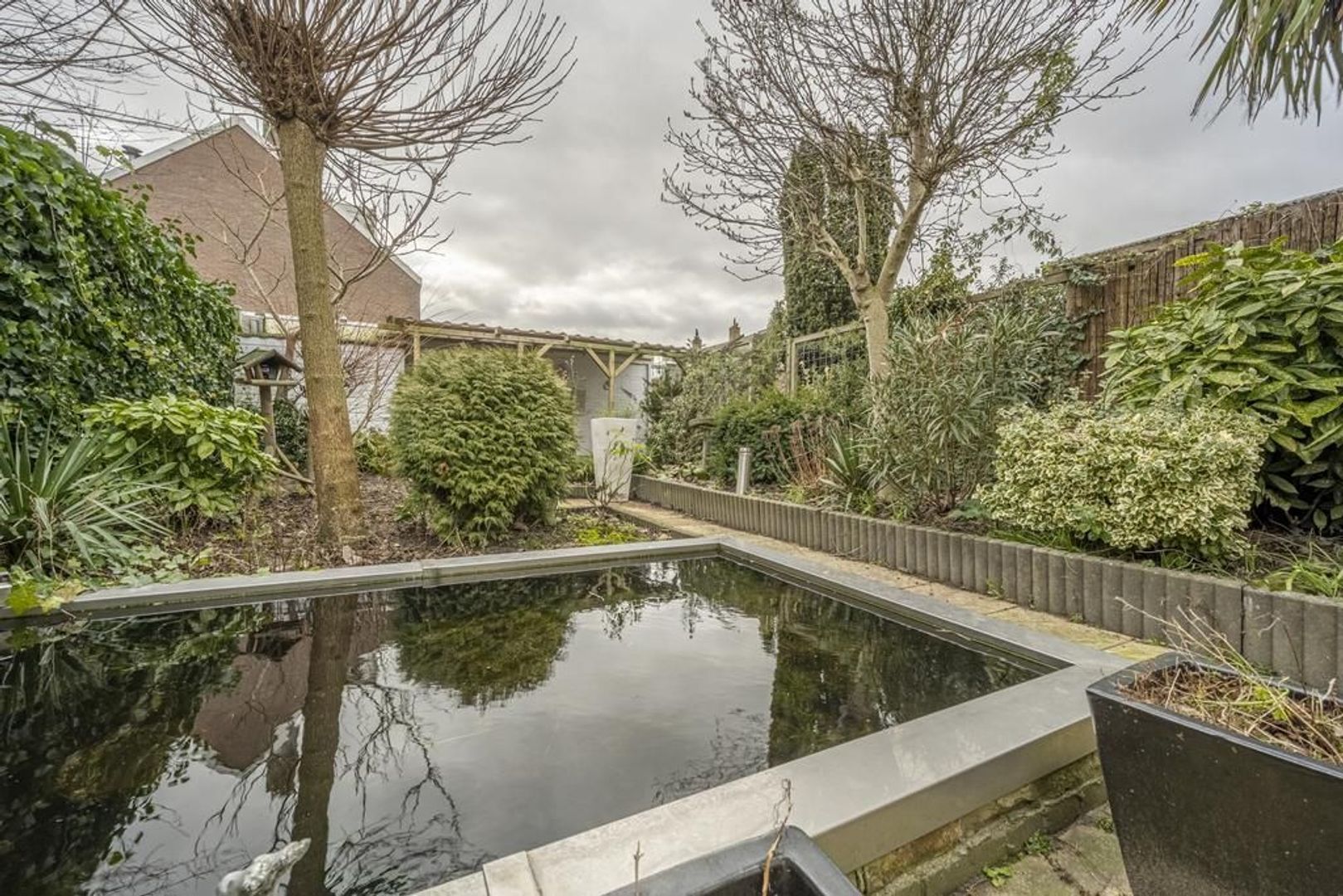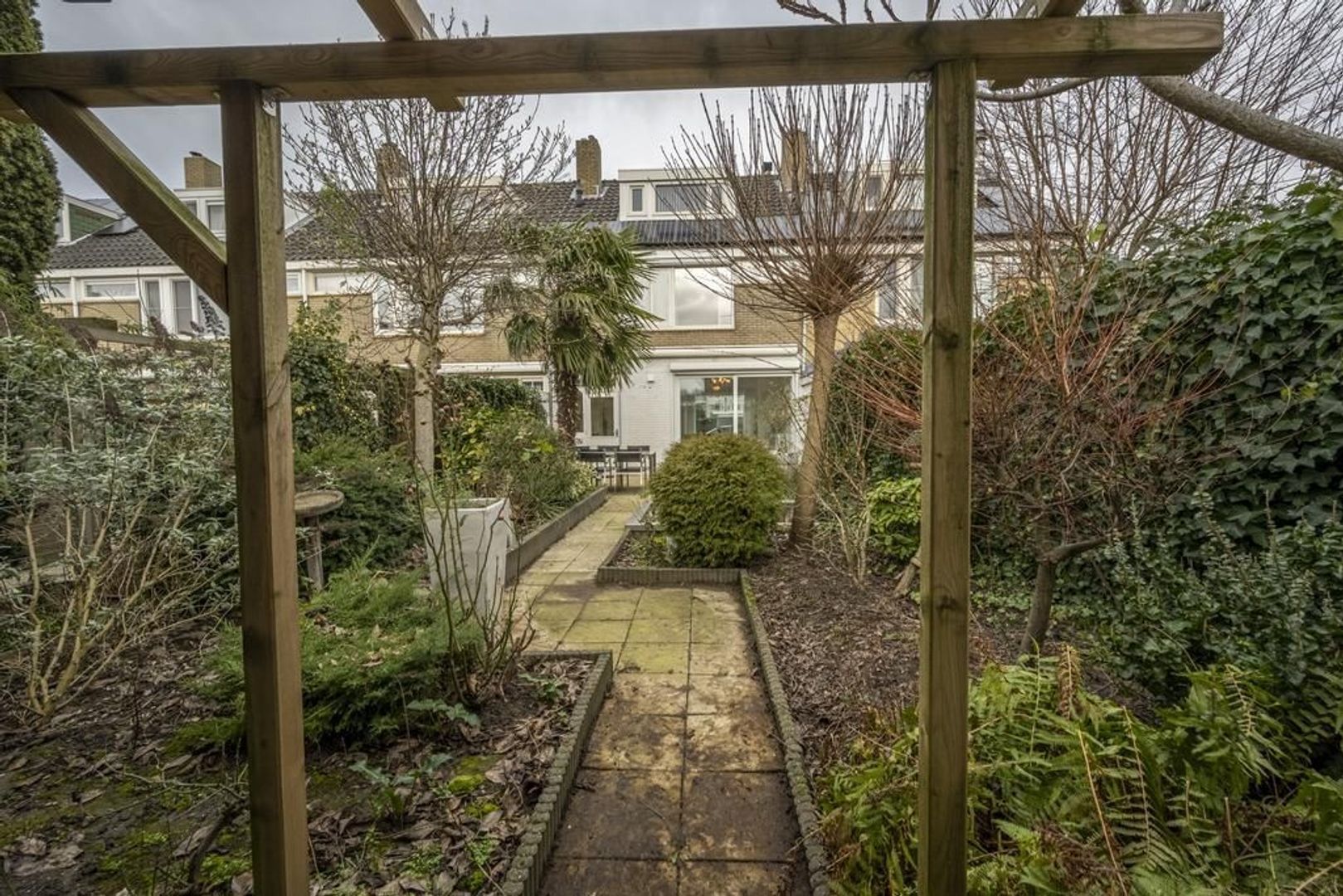 De tuin ligt op het zuiden. Aan het eind van de tuin is de deur naar de garage. Ook is hier een houten berging aangebouwd.