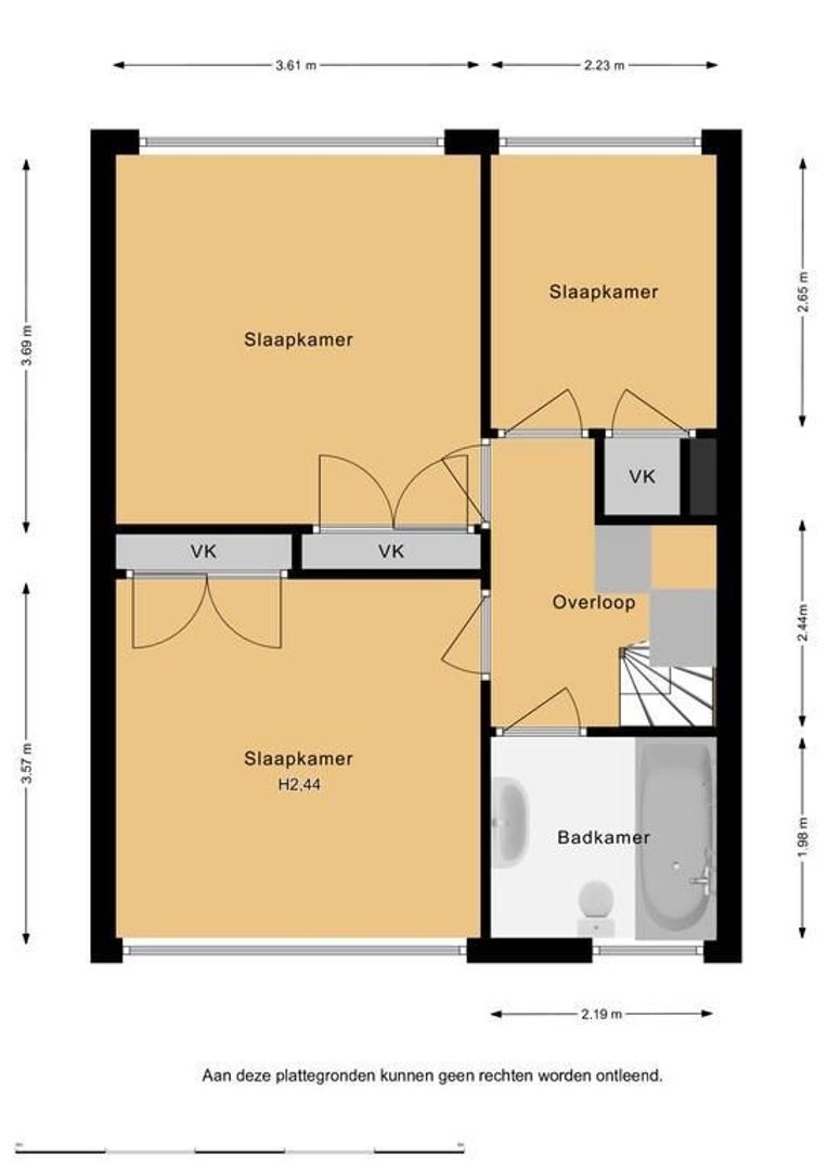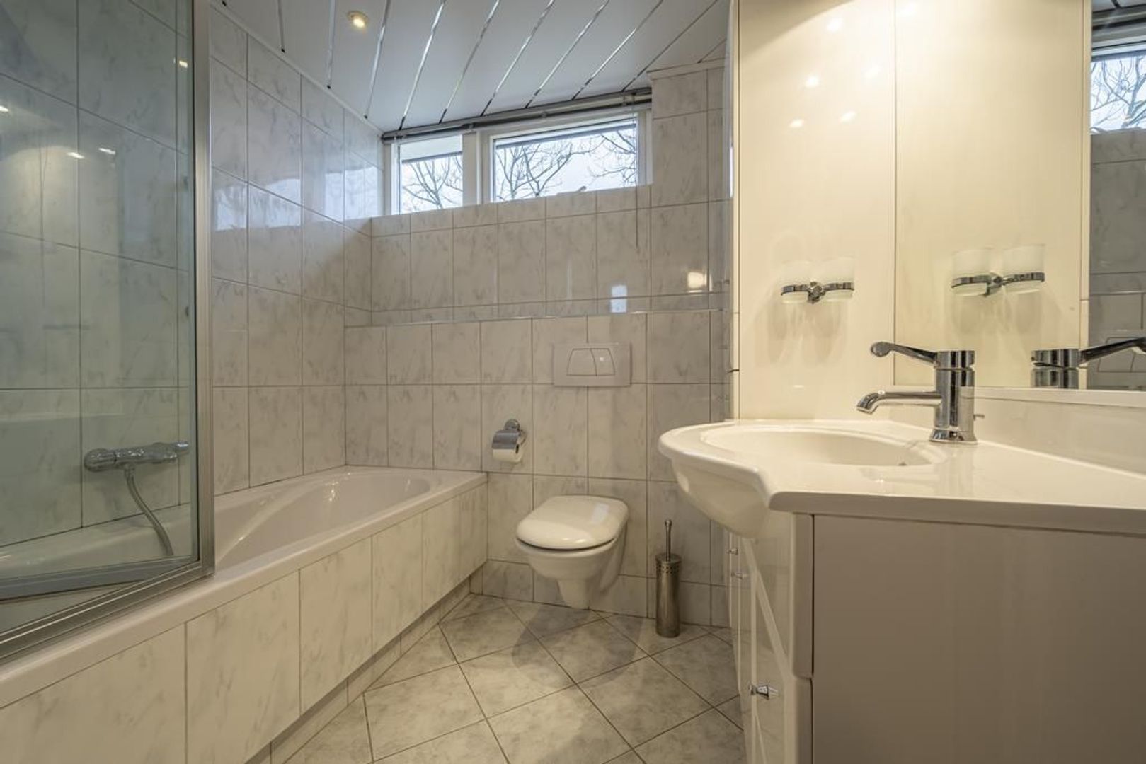 Op de eerste verdieping zijn drie slaapkamers en de badkamer. Deze is ingericht met een wastafelmeubel, een ligbad met wanddouche en douchewand en een tweede toilet.