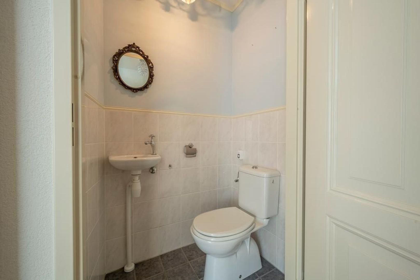 In de tussenhal met de trapopgang bevindt zich ook de toiletruimte.