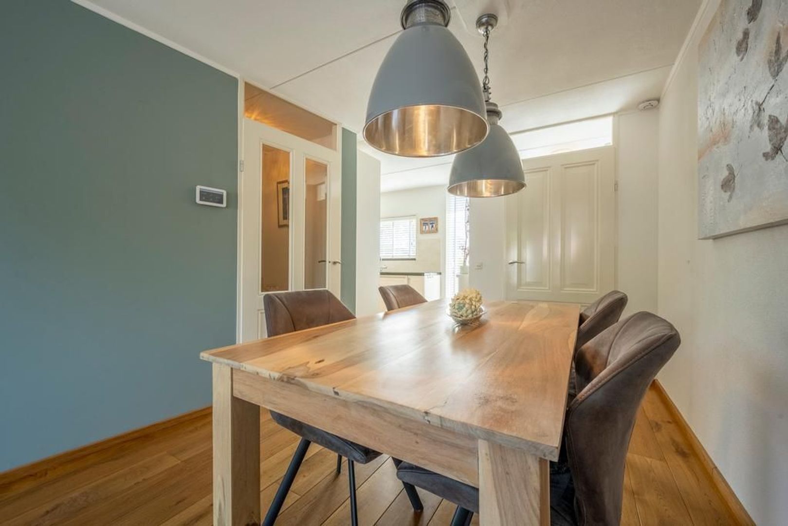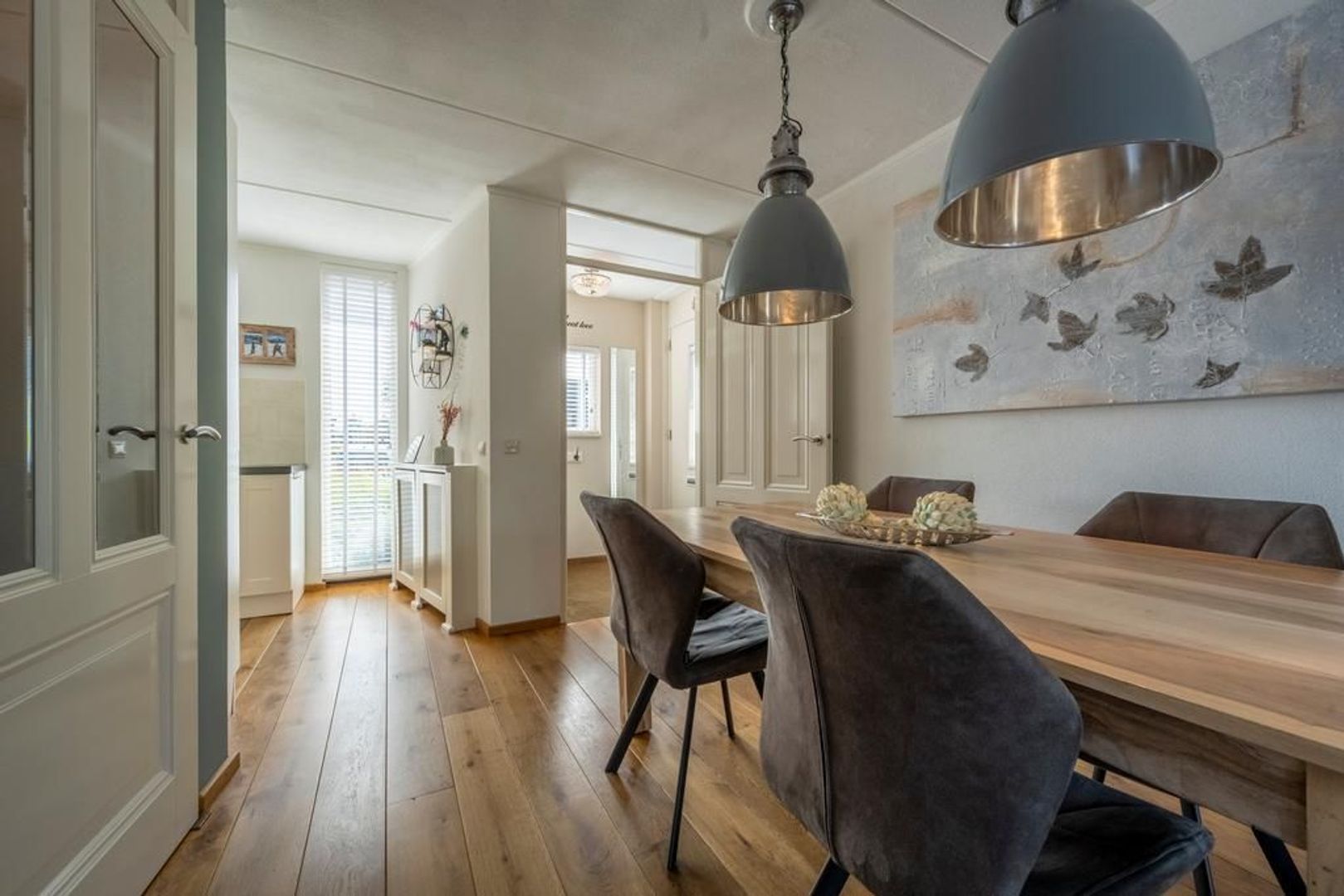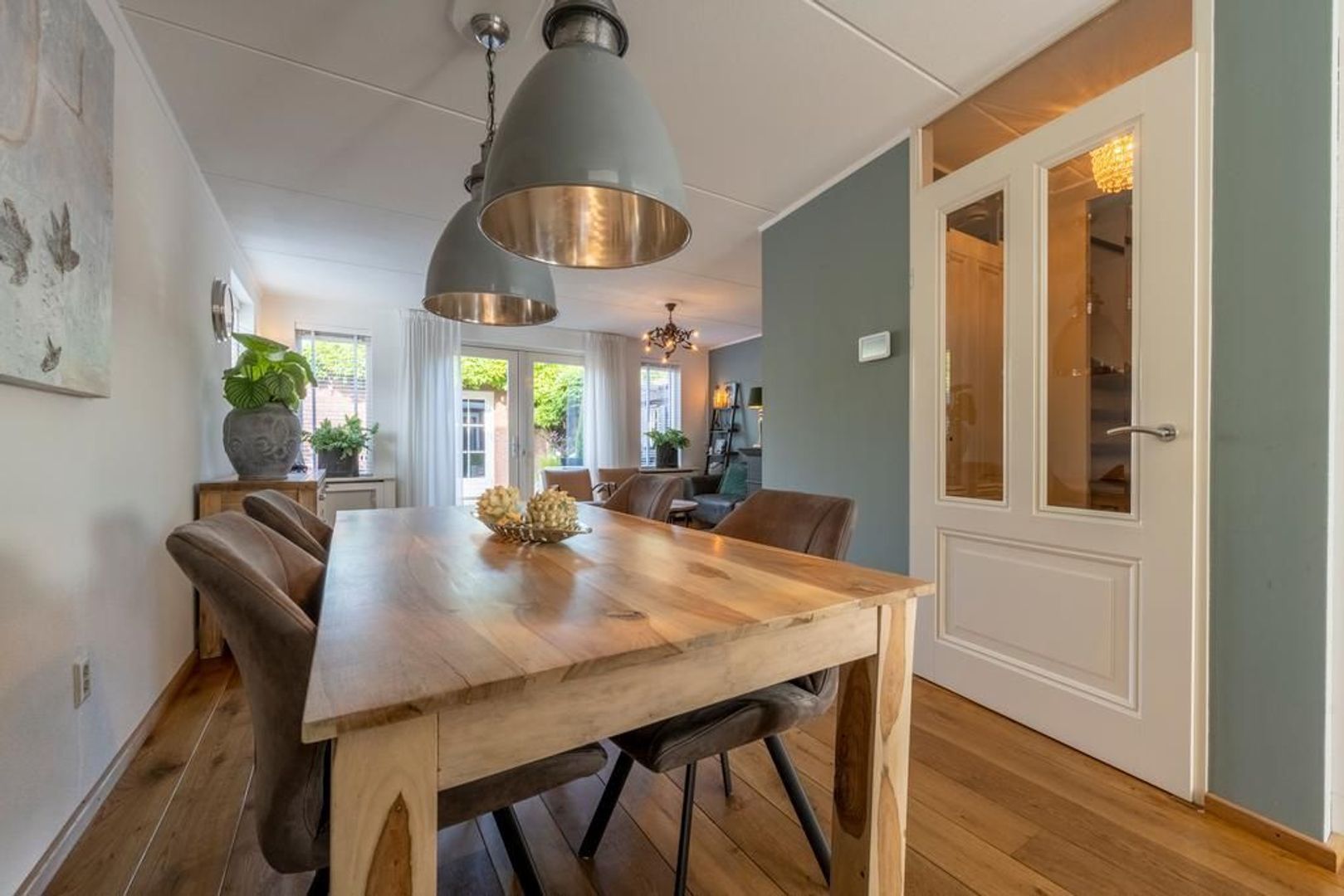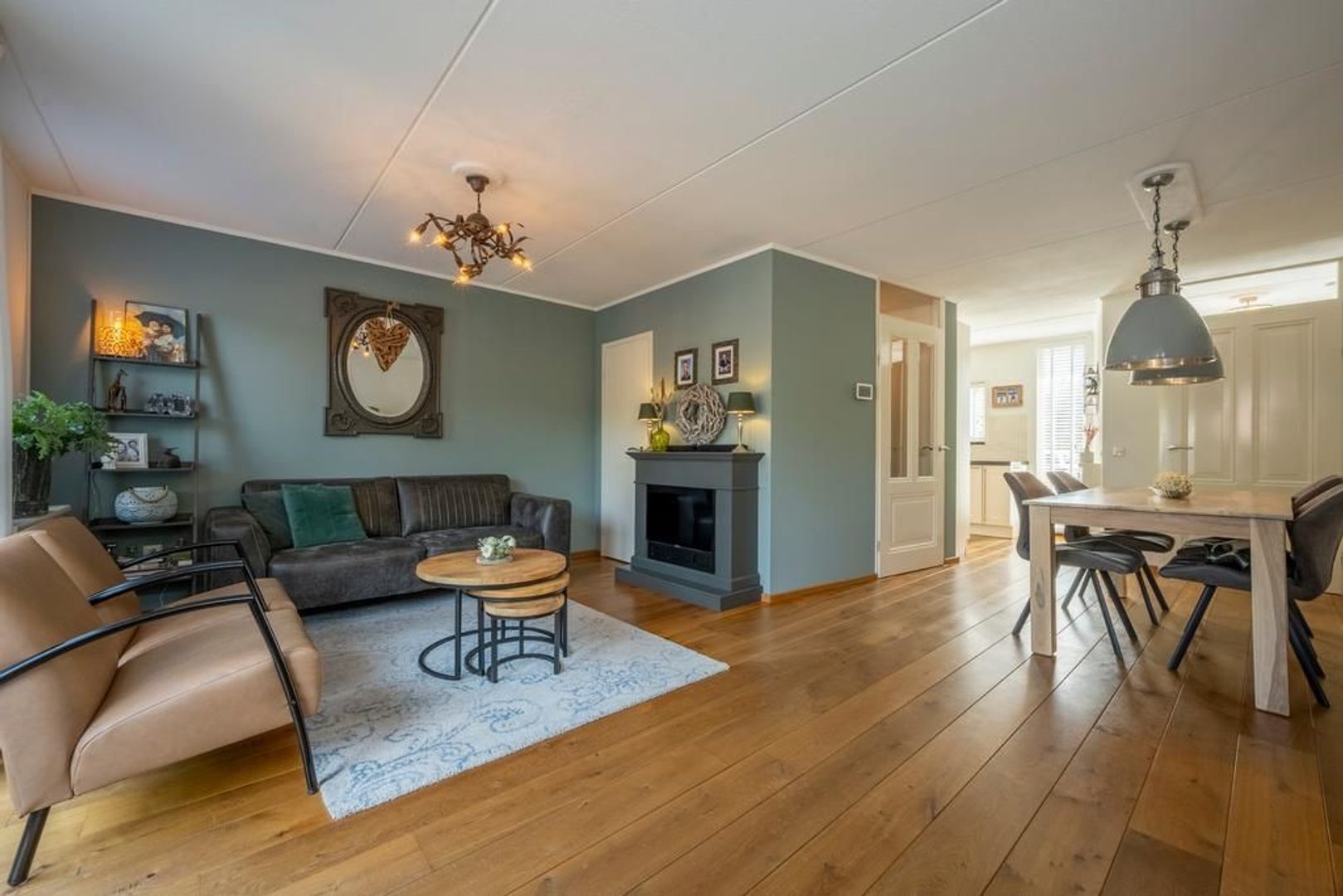 De begane grondvloer is afgewerkt met eiken vloerdelen.