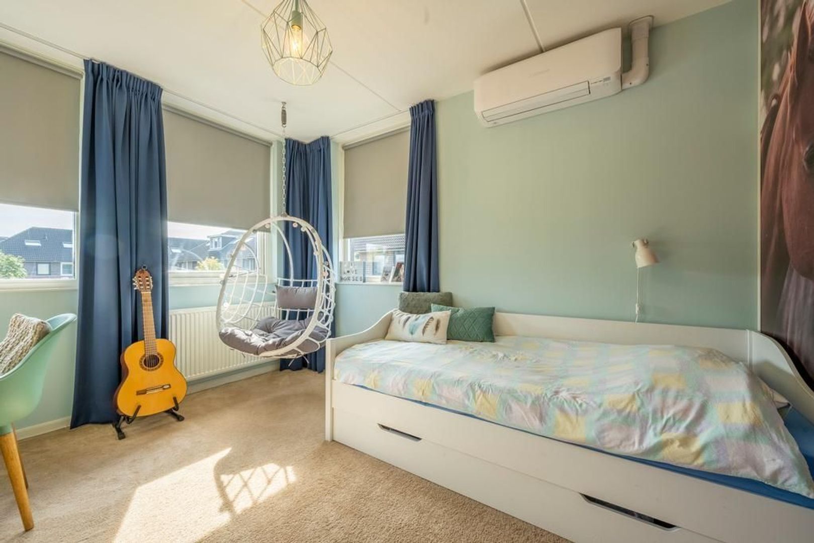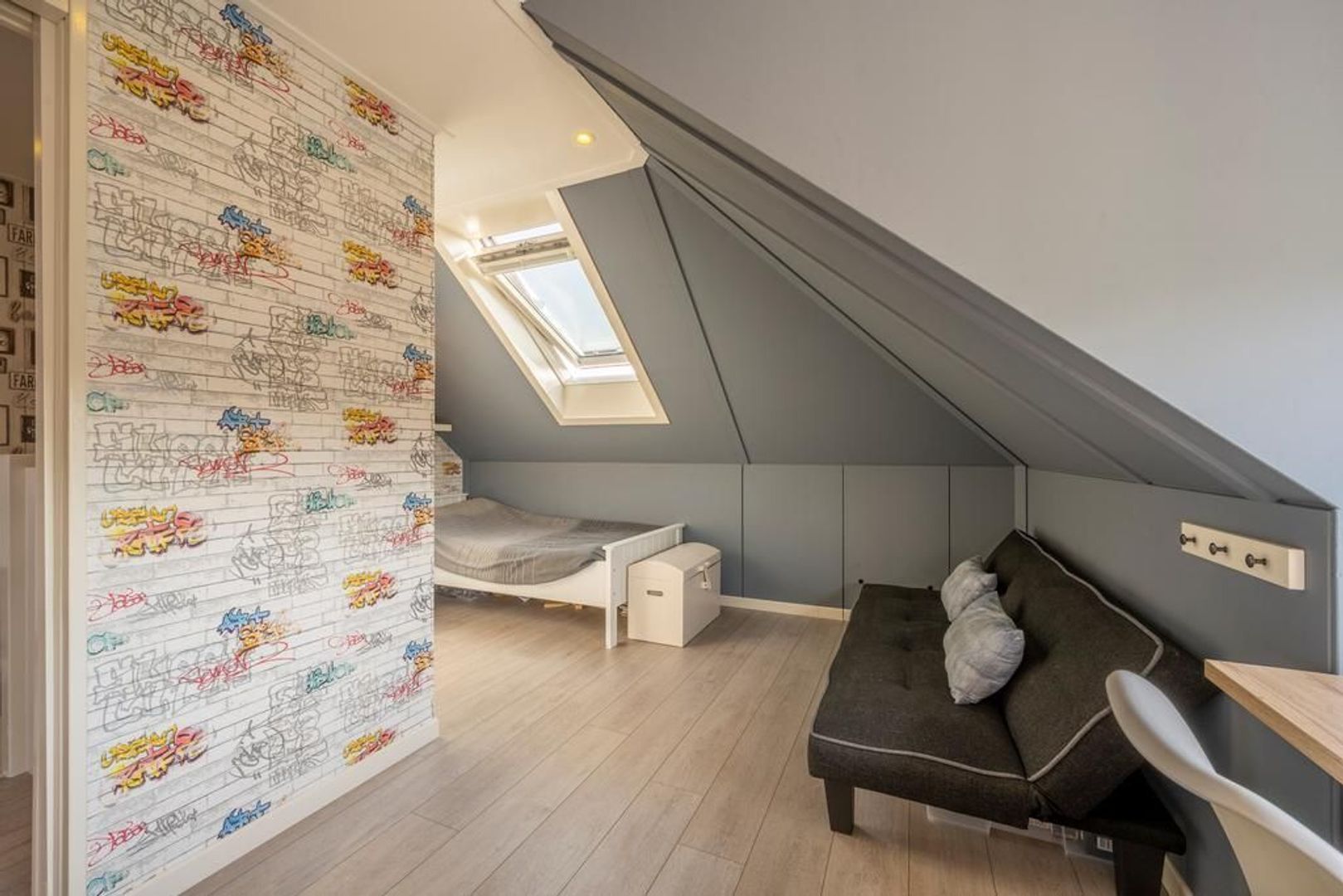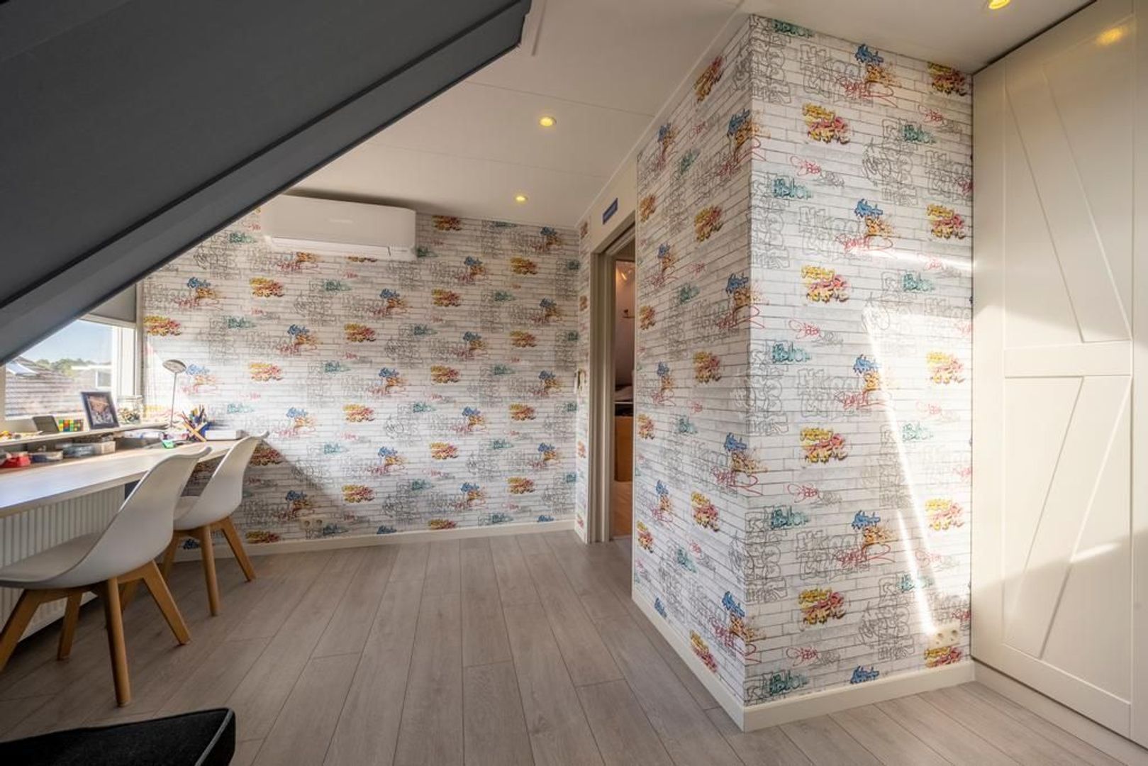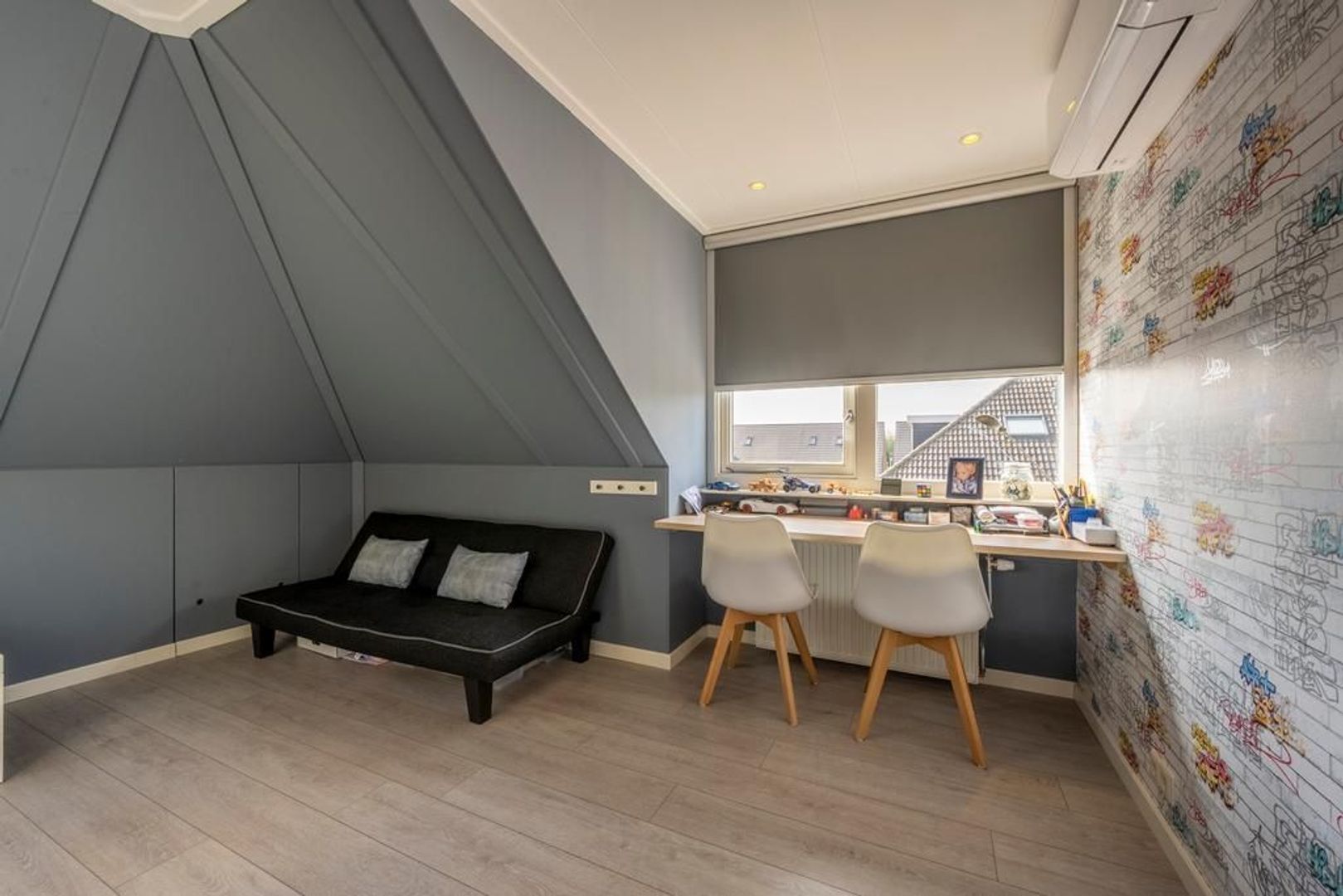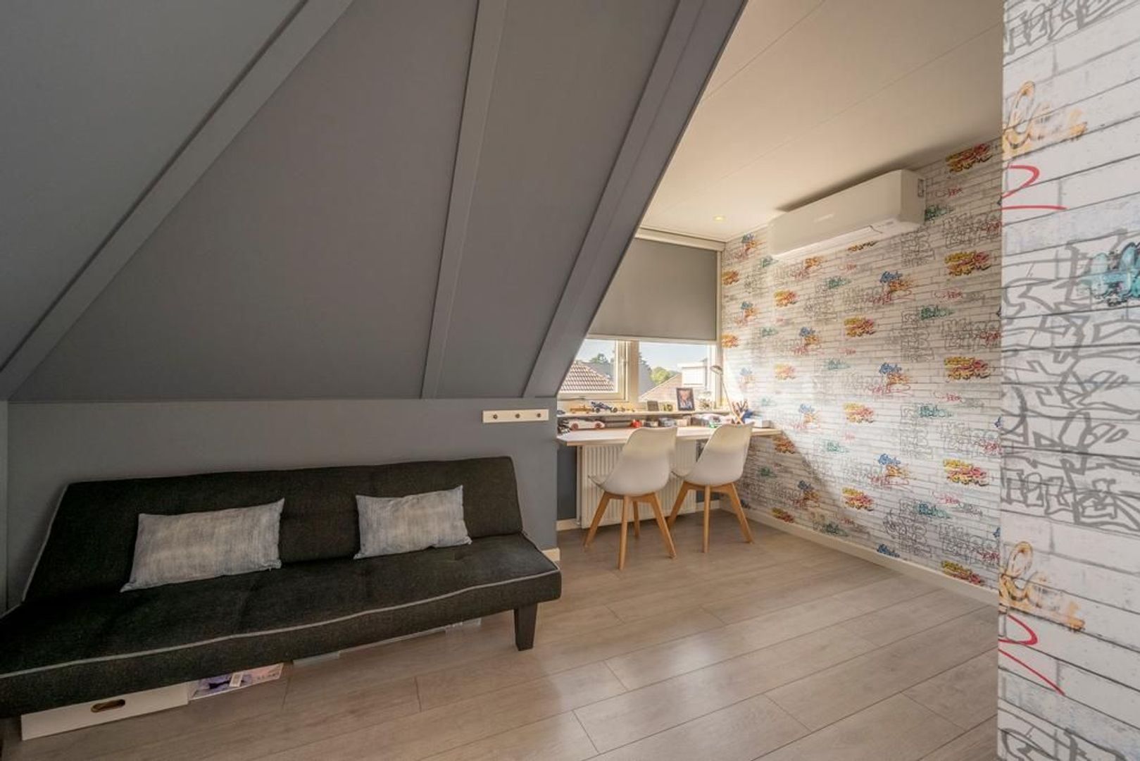 De vierde slaapkamer beschikt over de dakkapel, vaste kast, airconditioning en een dakraam. Groot genoeg dus.