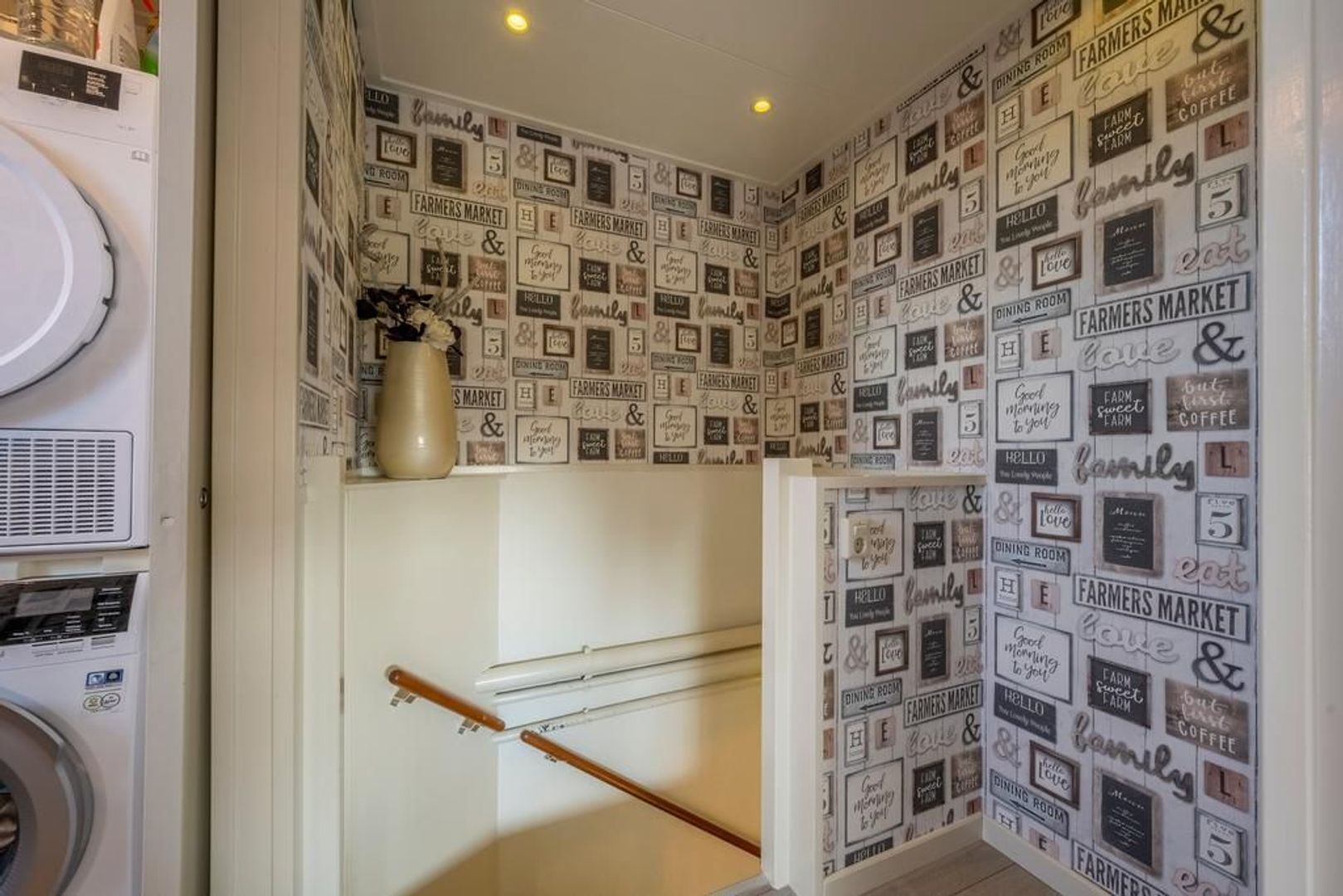 Op de voorzolder is een wasruimte met dakraam gemaakt. Hier bevindt zich ook de cv-ketel.