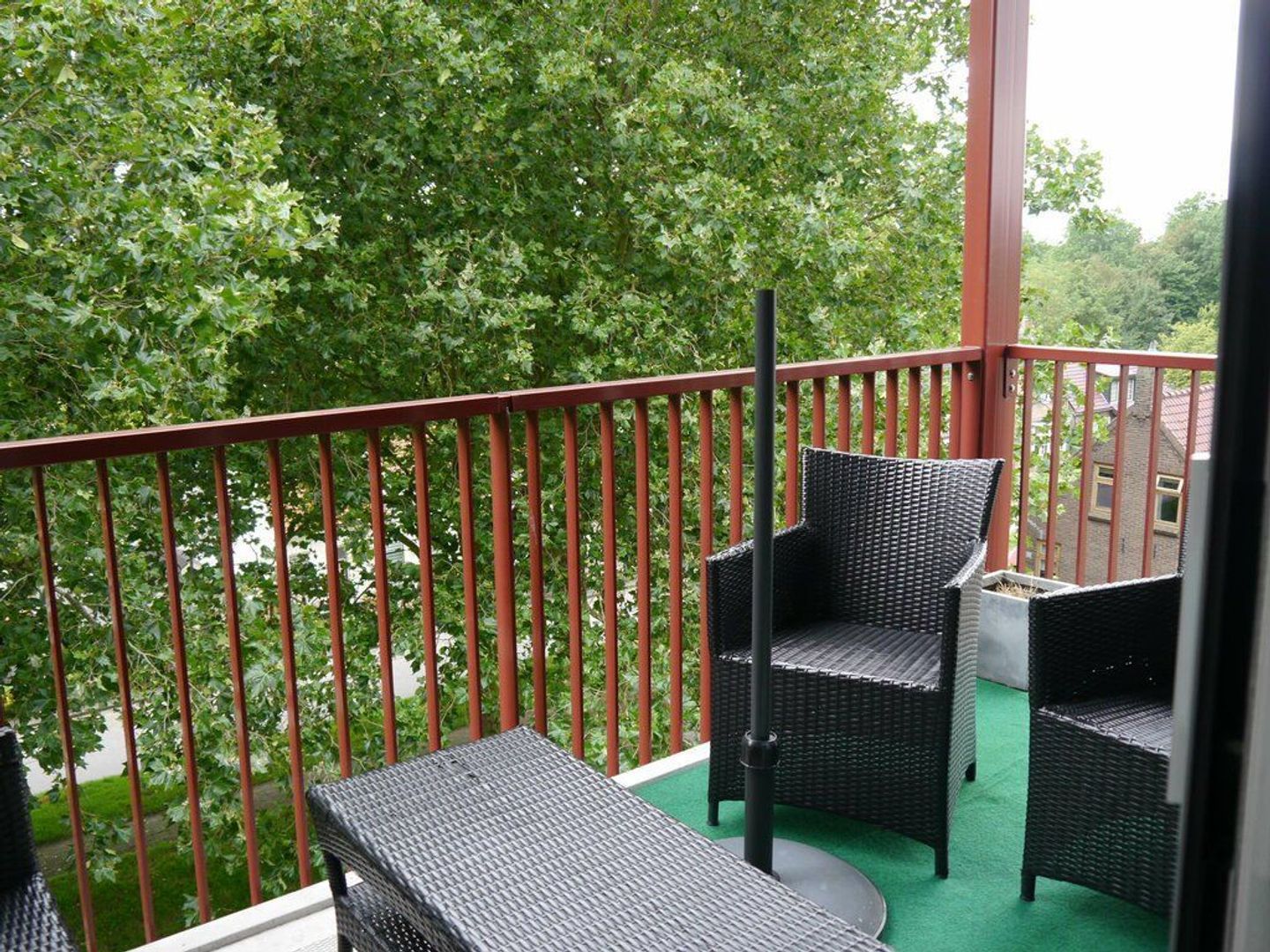 Een schuifpui geeft toegang tot het balkon. Dit ligt op het zuiden en biedt een geweldig uitzicht.