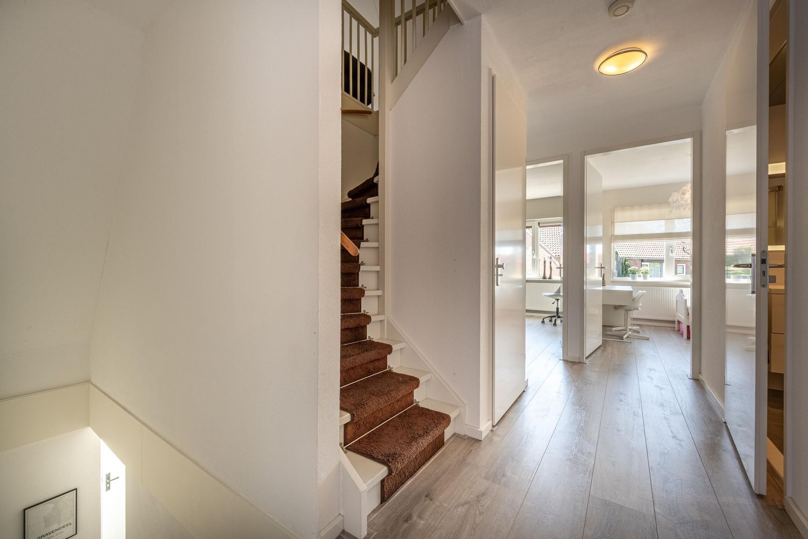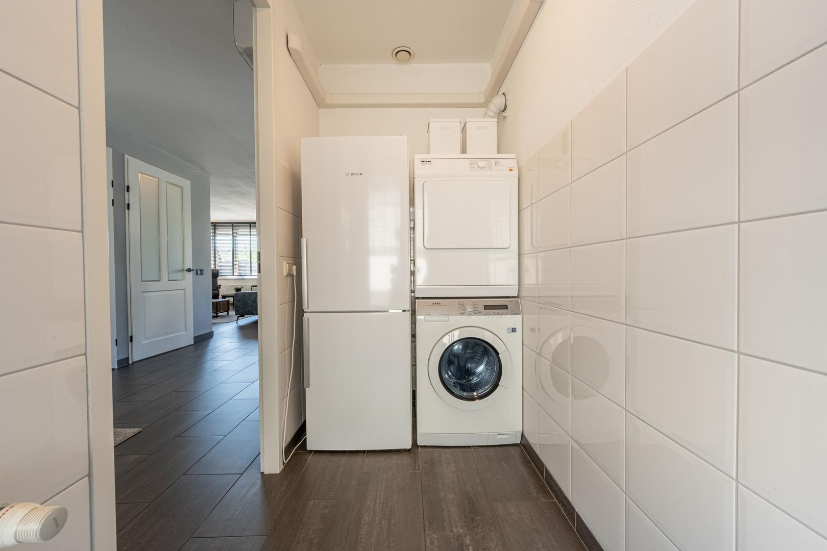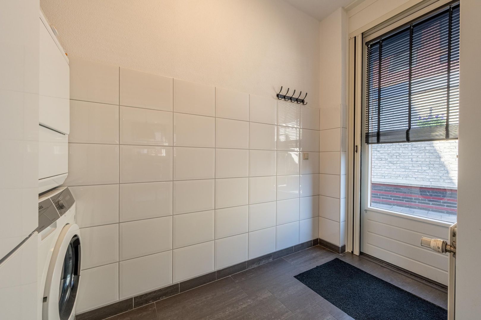 De praktische trapkast/provisieruimte biedt veel extra bergruimte. Daarnaast is er ook nog de handige bijkeuken, die een deur naar buiten heeft.