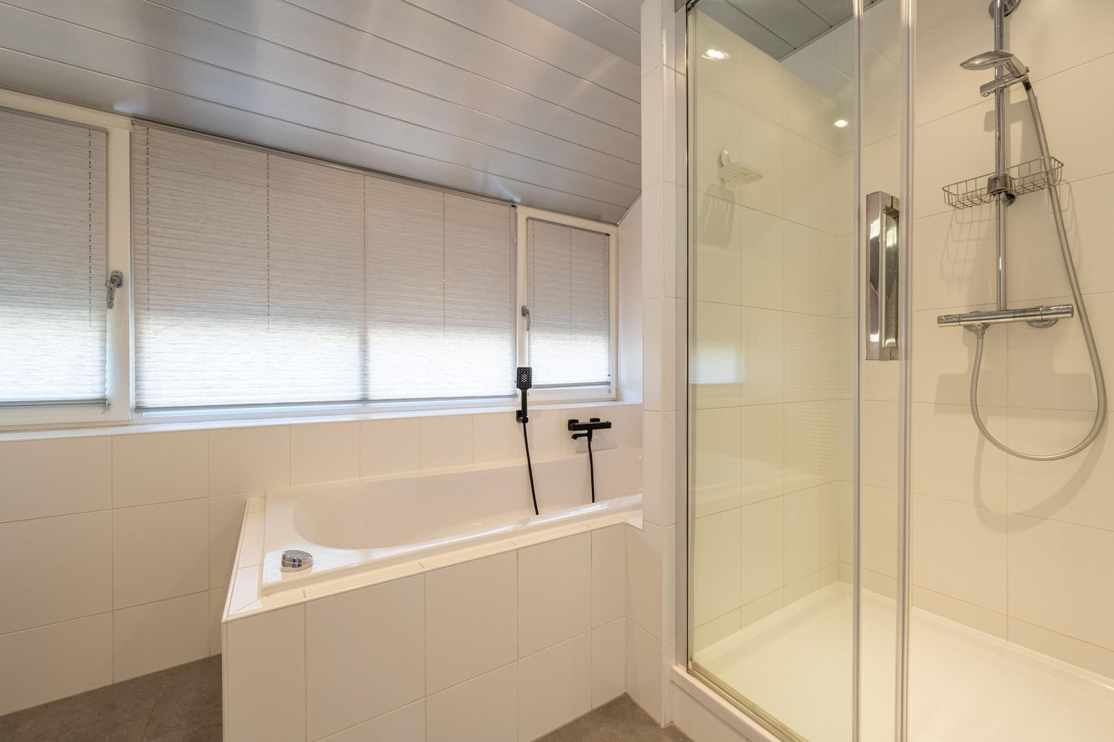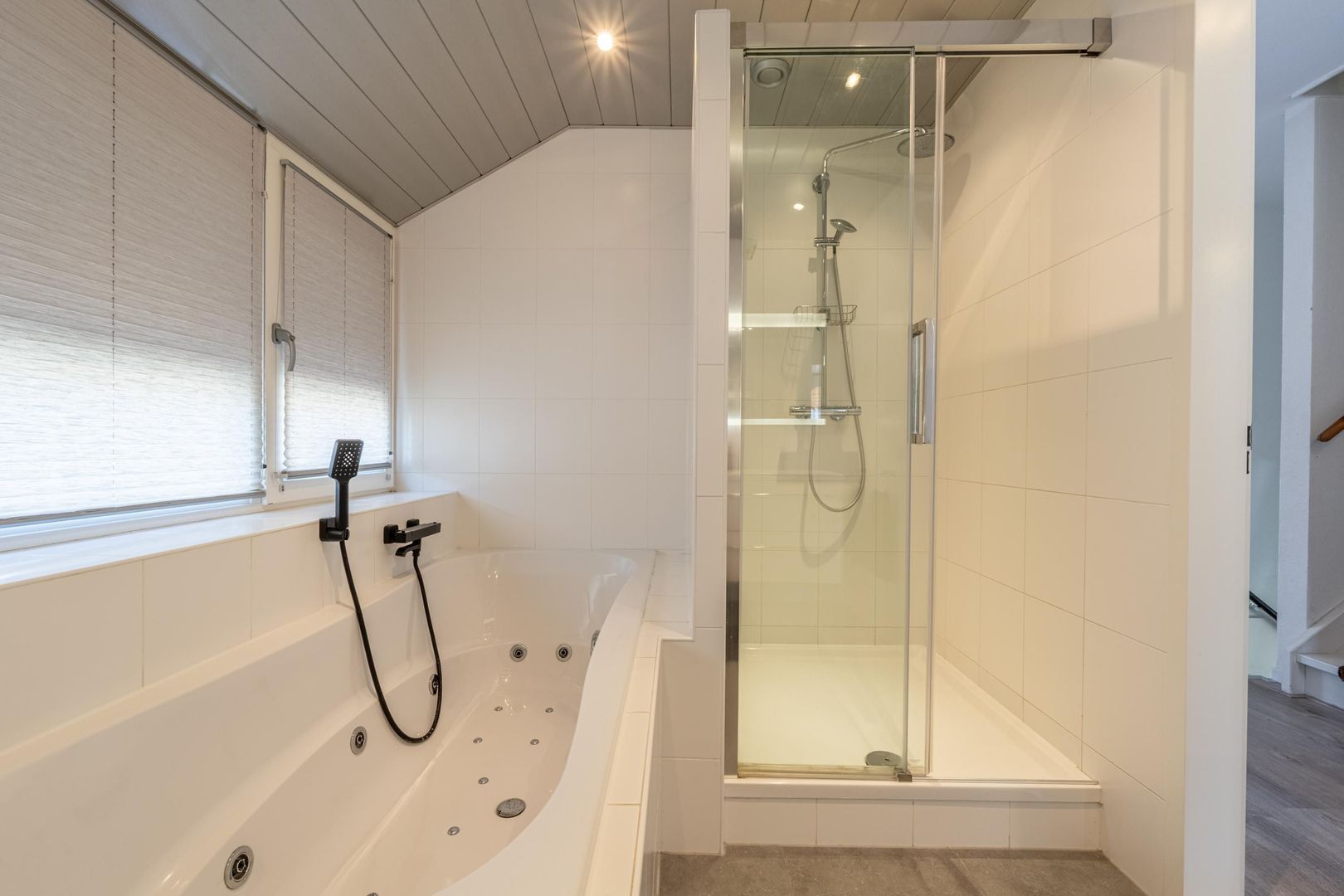 De badkamer is van alle gemakken voorzien en biedt plaats aan een (whirlpool)ligbad, een ruime douchegelegenheid en een dubbel wastafelmeubel met bijbehorende spiegel met verlichting. Het raam kan open, zodat ook met frisse buitenlucht geventileerd kan worden.