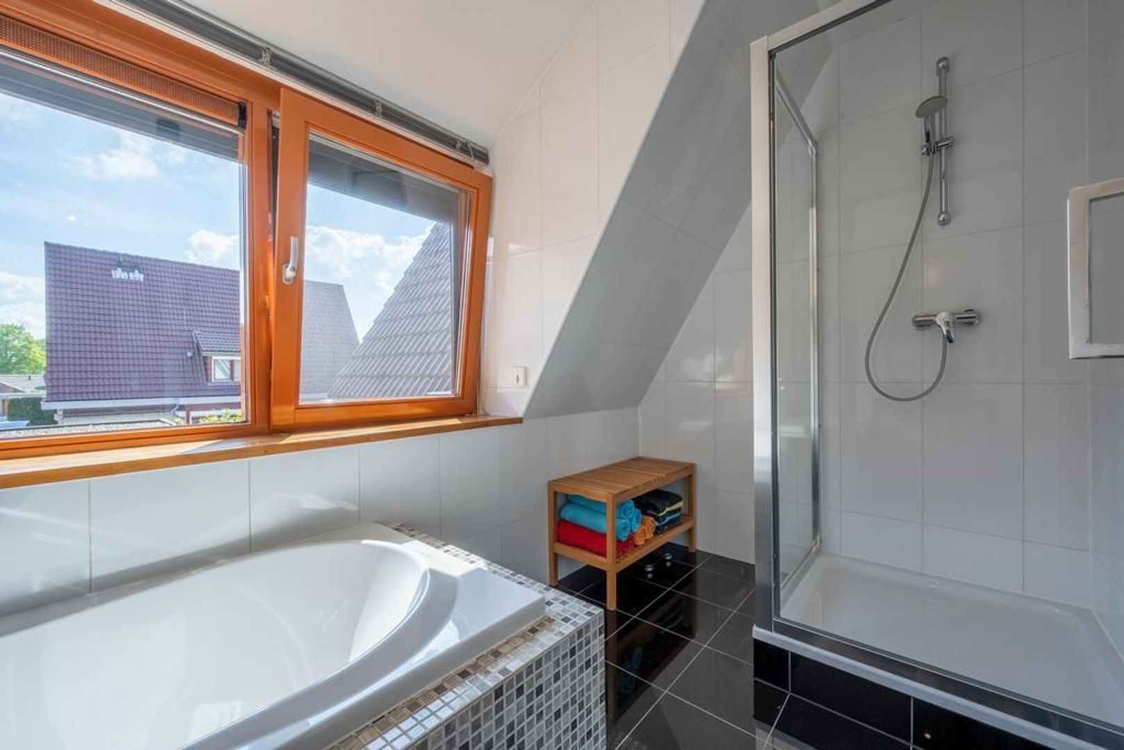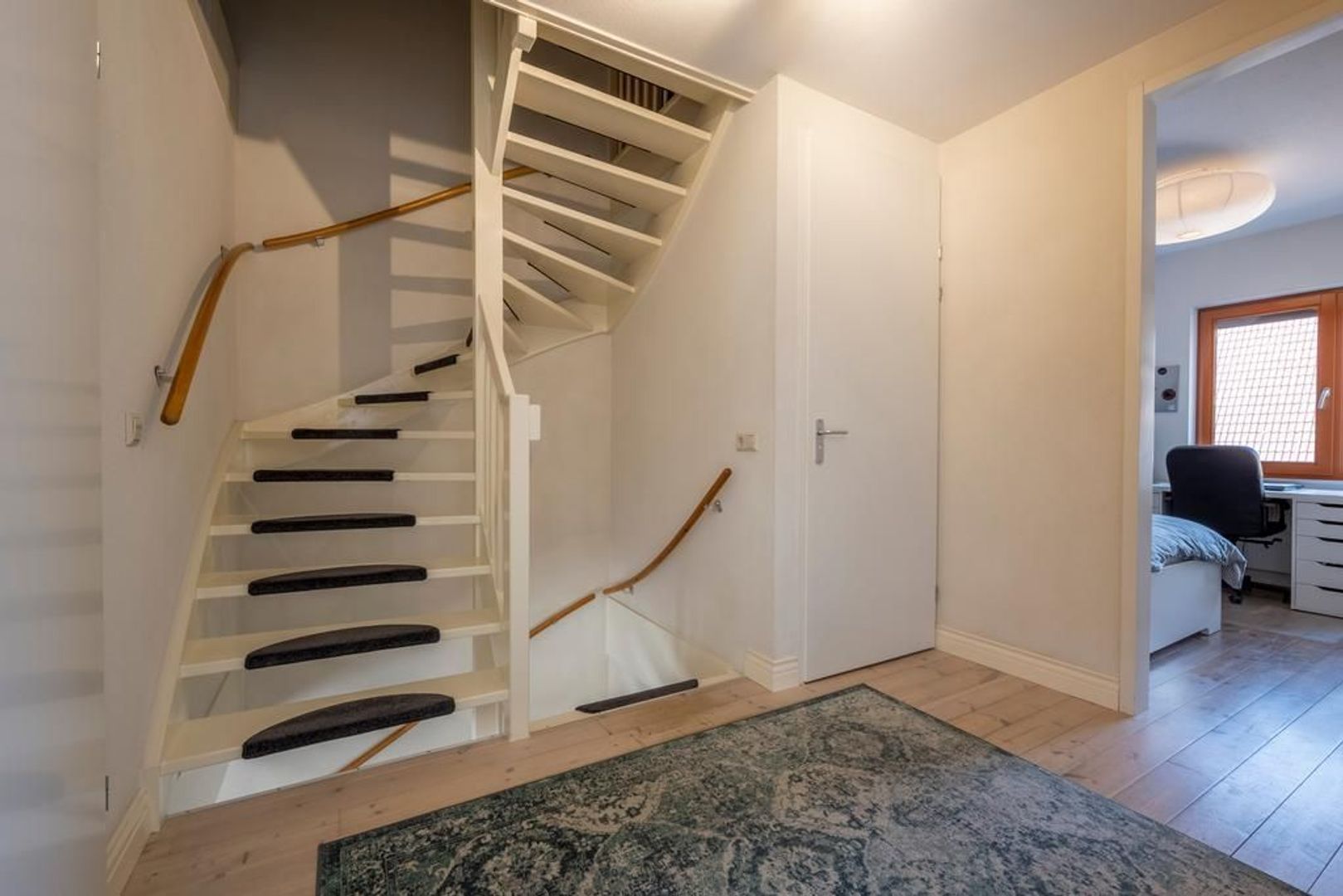 De eerste verdieping is voorzien van houten vloerdelen. Er zijn drie slaapkamers, de badkamer en een aparte toiletruimte op de overloop.