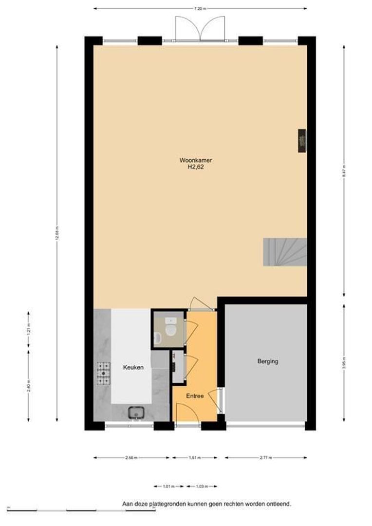 De indeling is als volgt: entree, hal met meterkast, moderne toiletruimte en toegang tot de inpandige berging/garage.