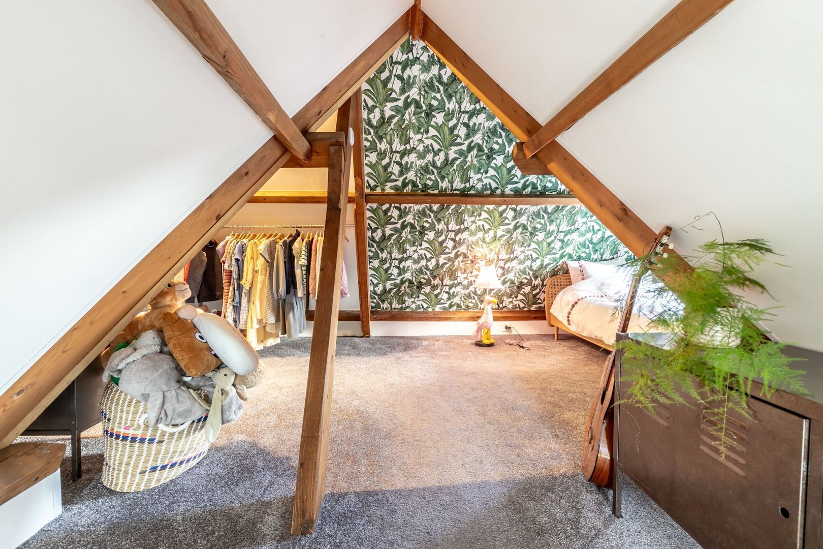 De trapopgang komt uit op de overloop die in verbinding staat met slaapkamers drie en vier. De nok meet hier maar liefst 2,48m en er zijn aan weerszijden ramen waardoor je optimaal van deze verdieping gebruikt kunt maken.