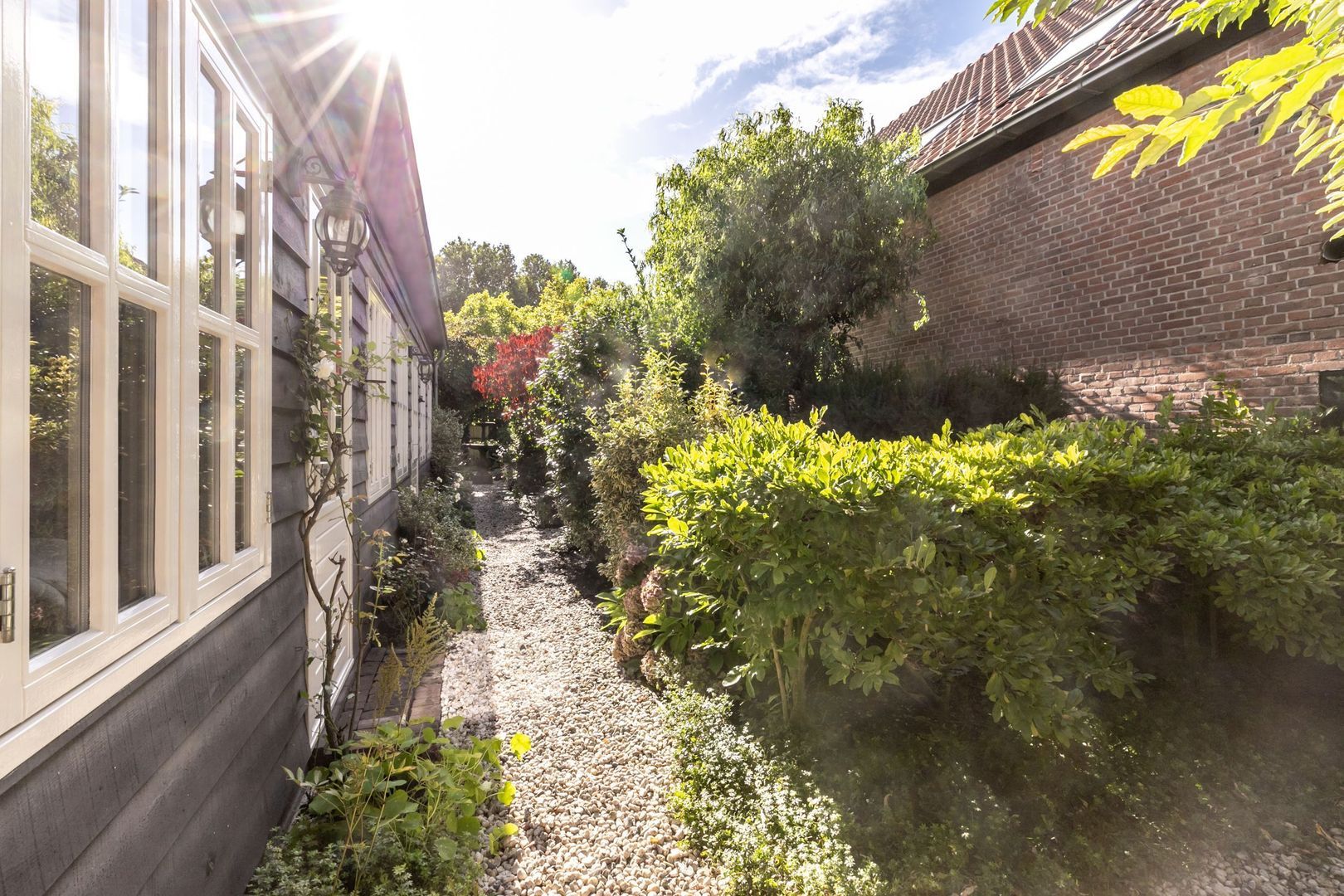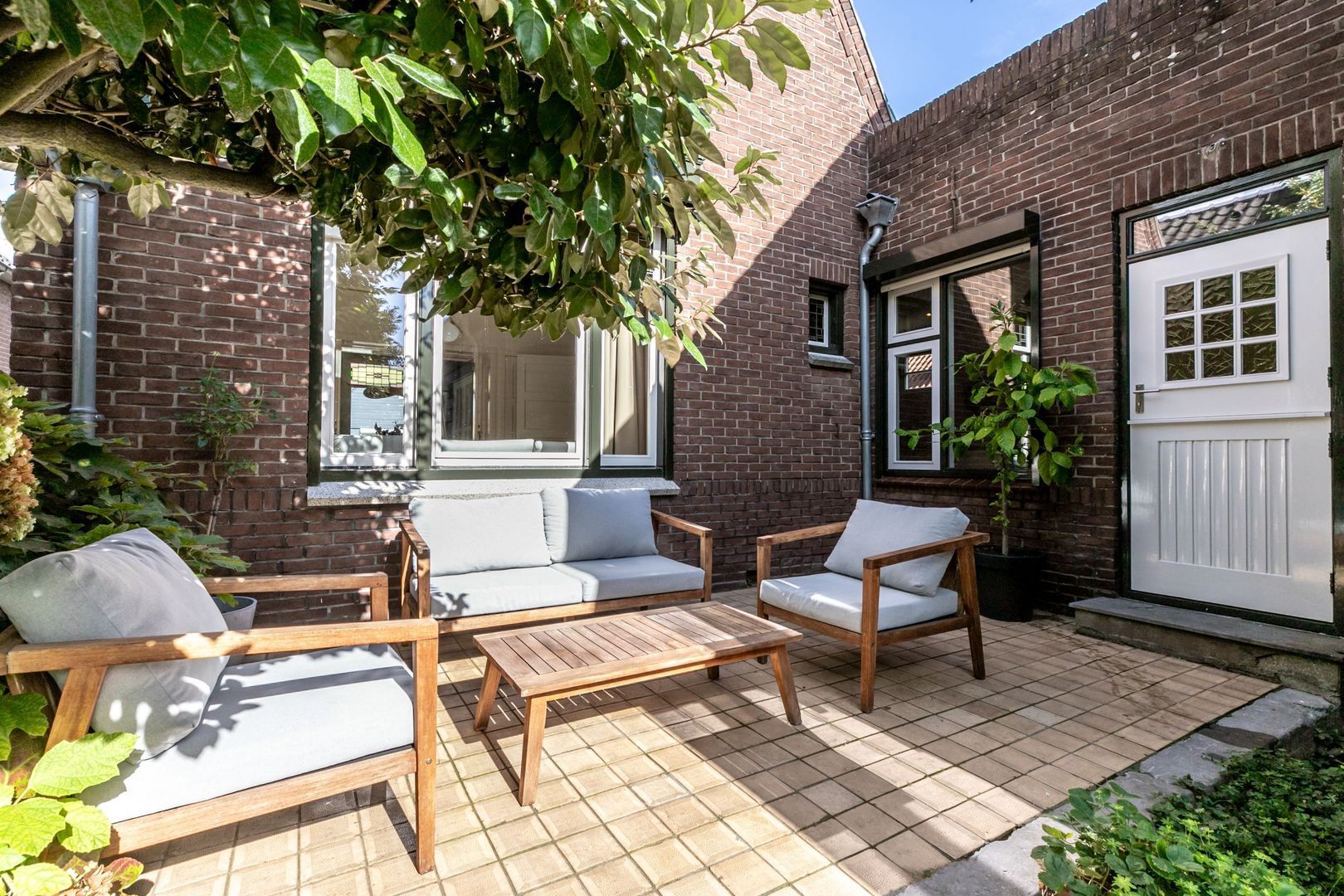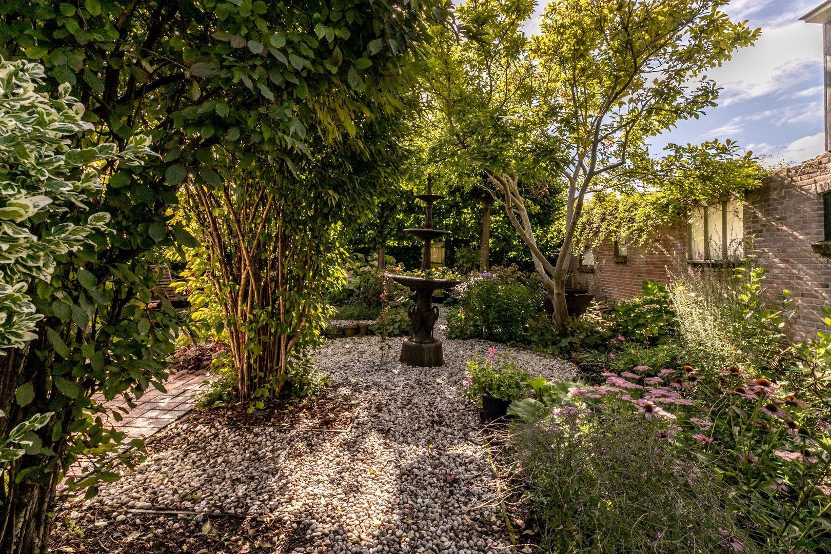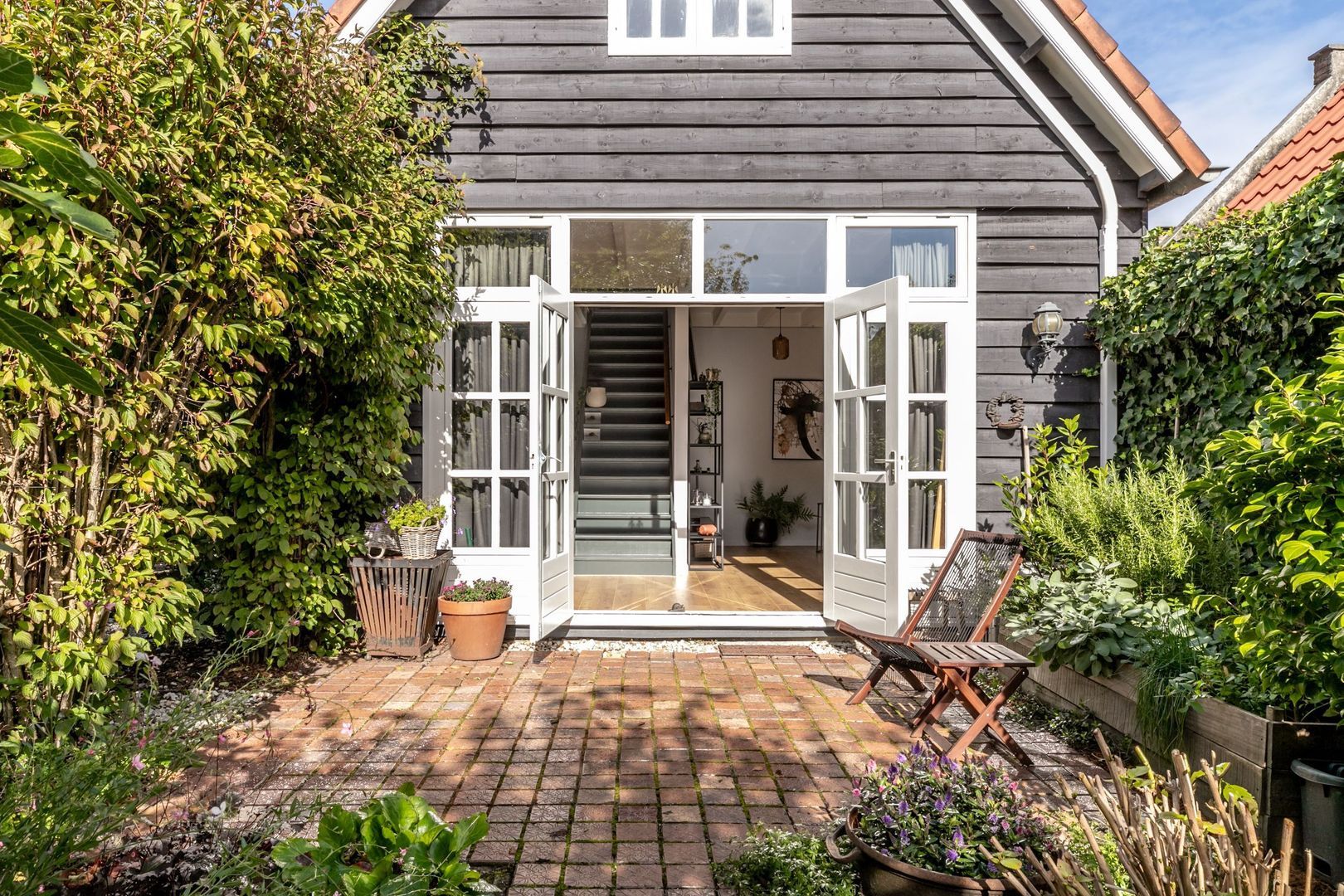 In de fraaie tuin zit heel veel liefde en aandacht, en dat voel je, net zoals in de rest van de woning. De tuin is weelderig ingericht met groen, is bijzonder sfeervol en heeft twee fijne terrassen. Er is een buitenkraan en een afsluitbaar achterom en naast de keuken is er nog een kleine, maar praktische bergkast.