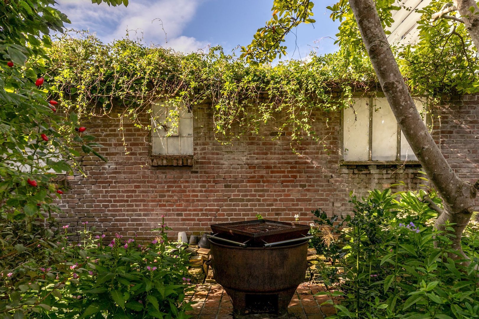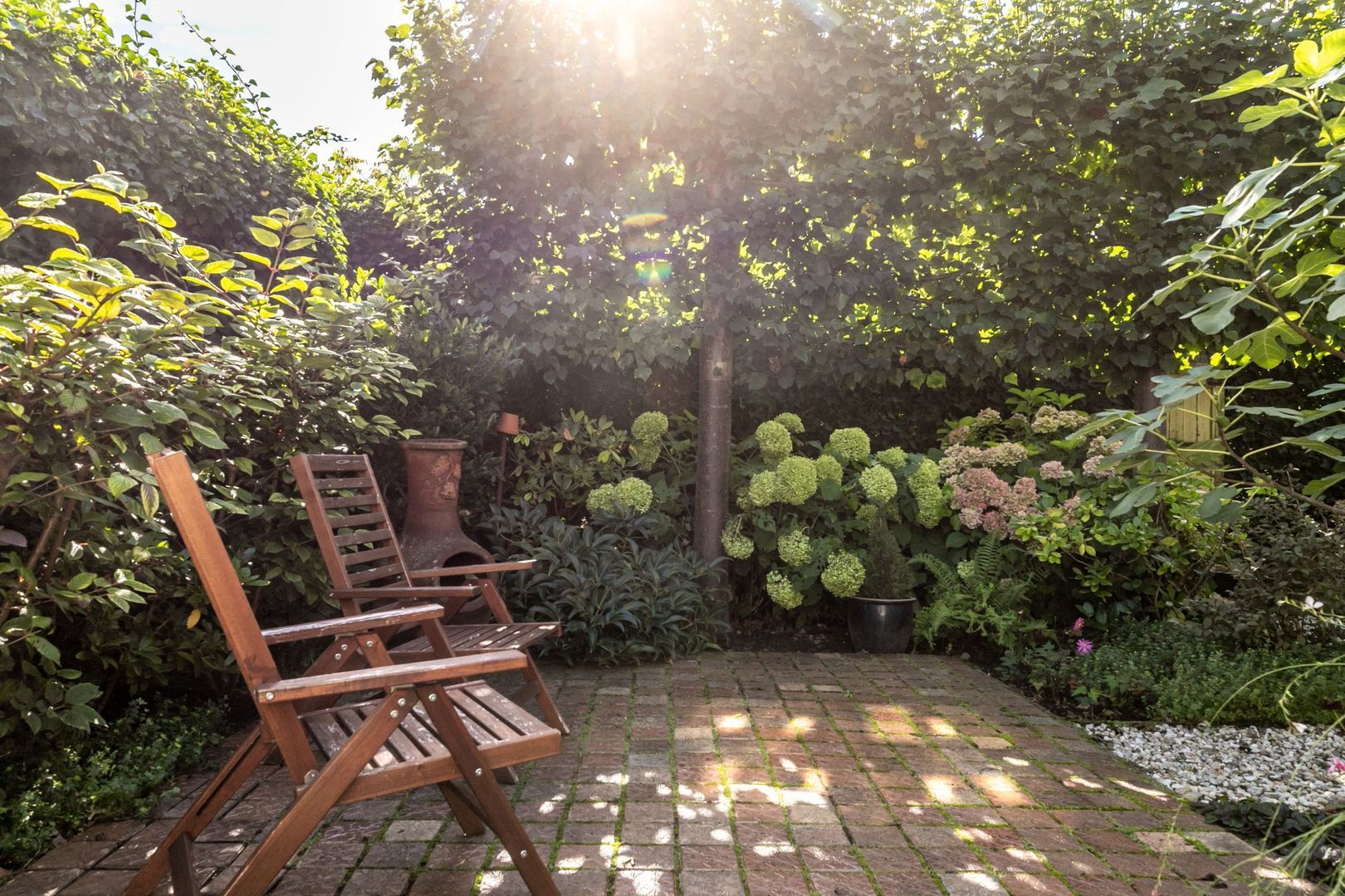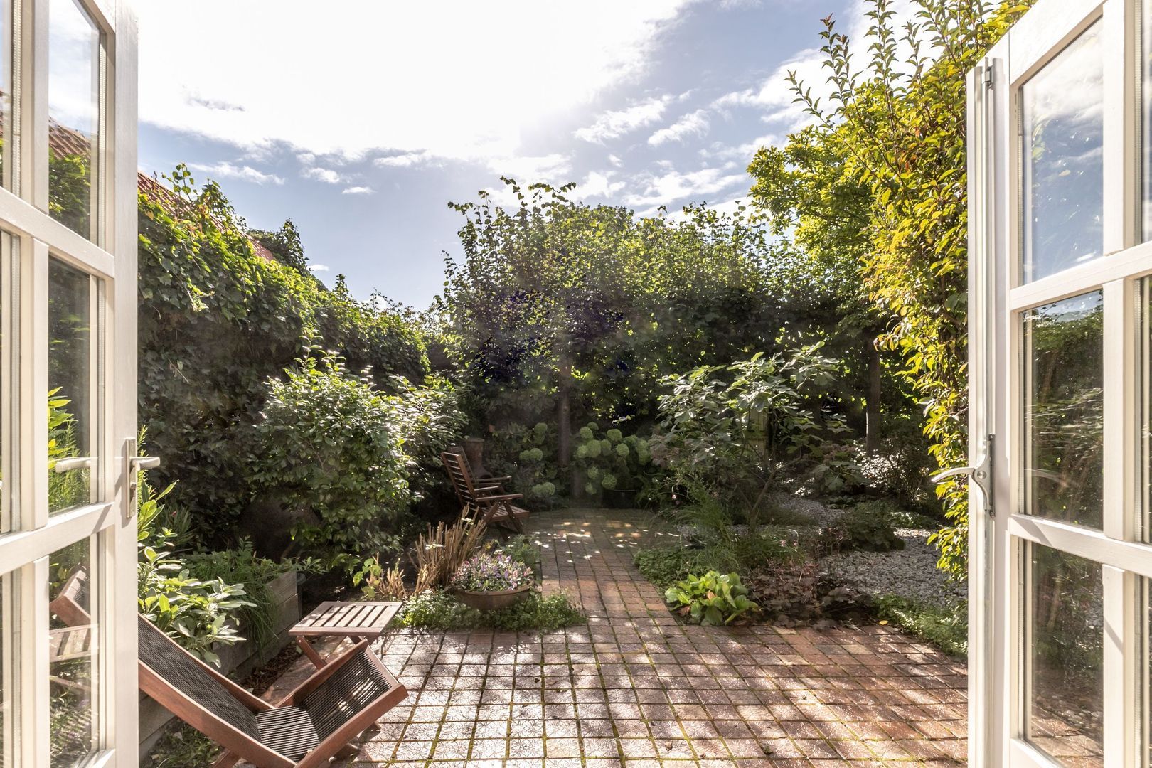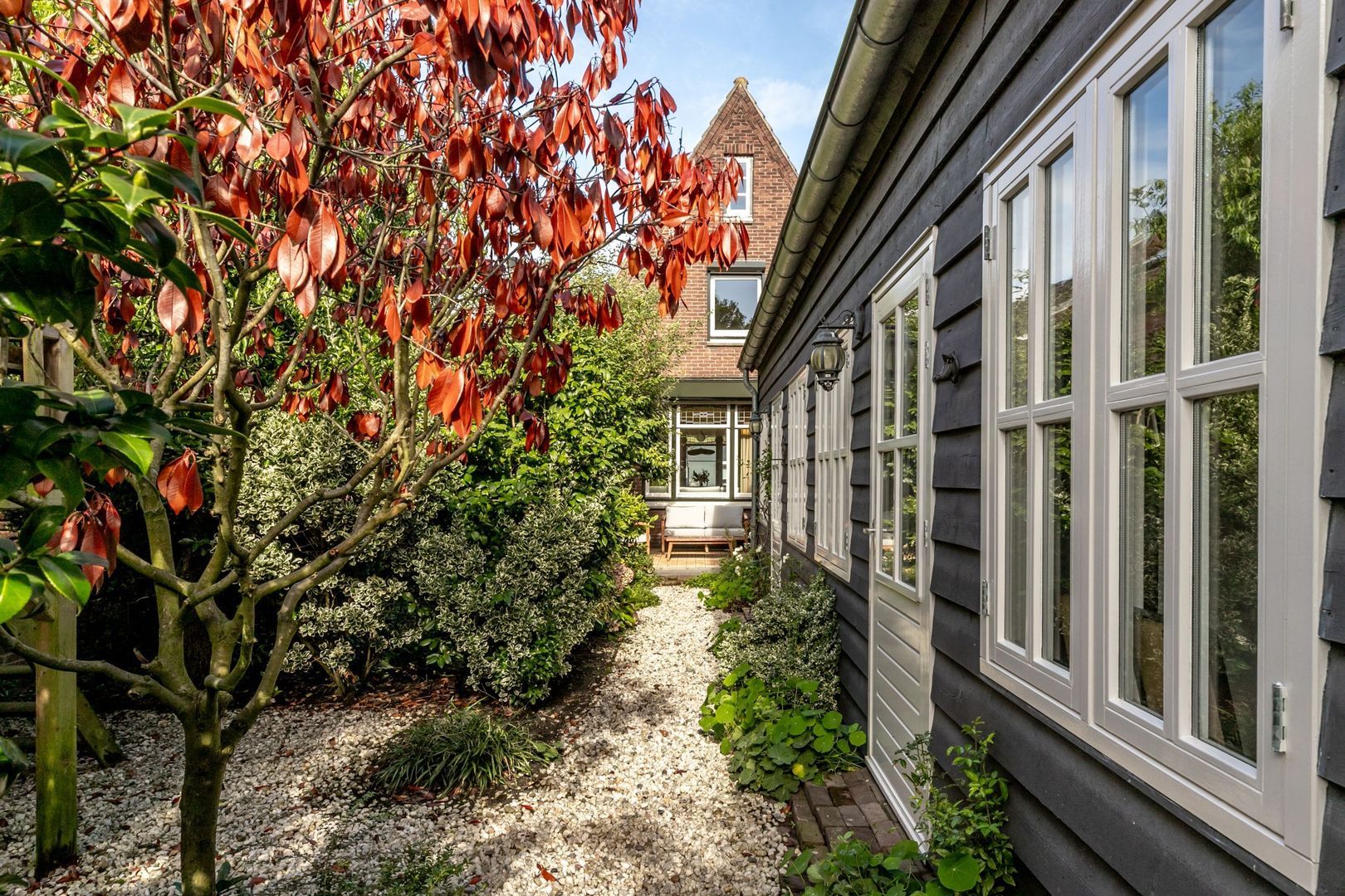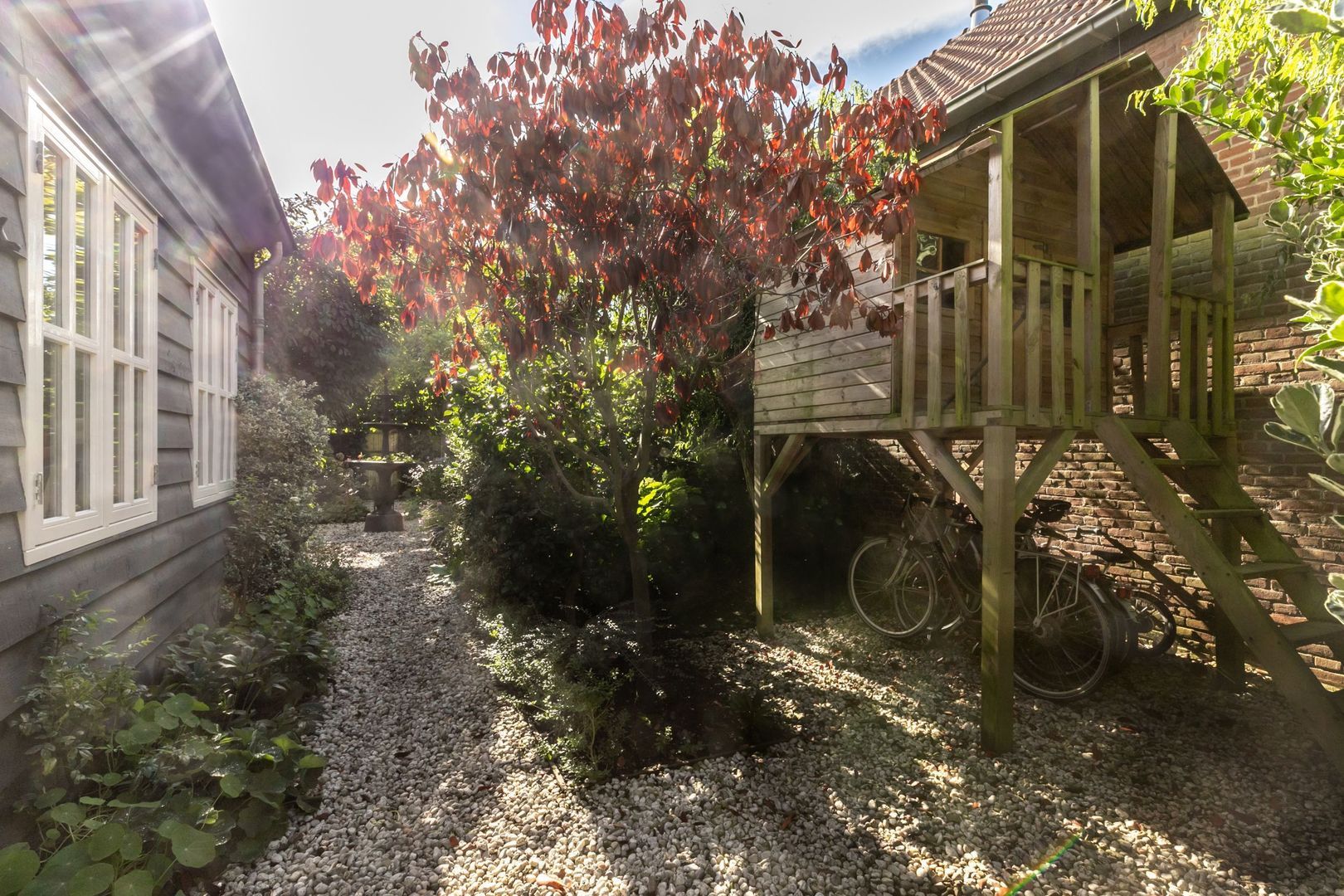 In de fraaie tuin zit heel veel liefde en aandacht, en dat voel je, net zoals in de rest van de woning. De tuin is weelderig ingericht met groen, is bijzonder sfeervol en heeft twee fijne terrassen. Er is een buitenkraan en een afsluitbaar achterom en naast de keuken is er nog een kleine, maar praktische bergkast.