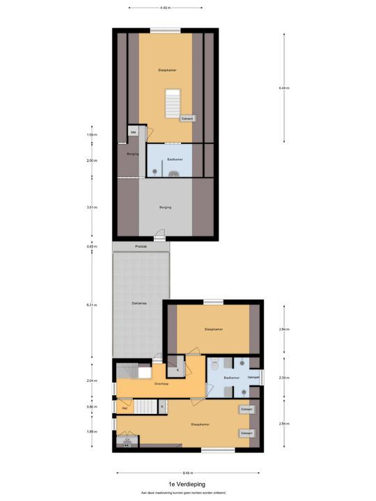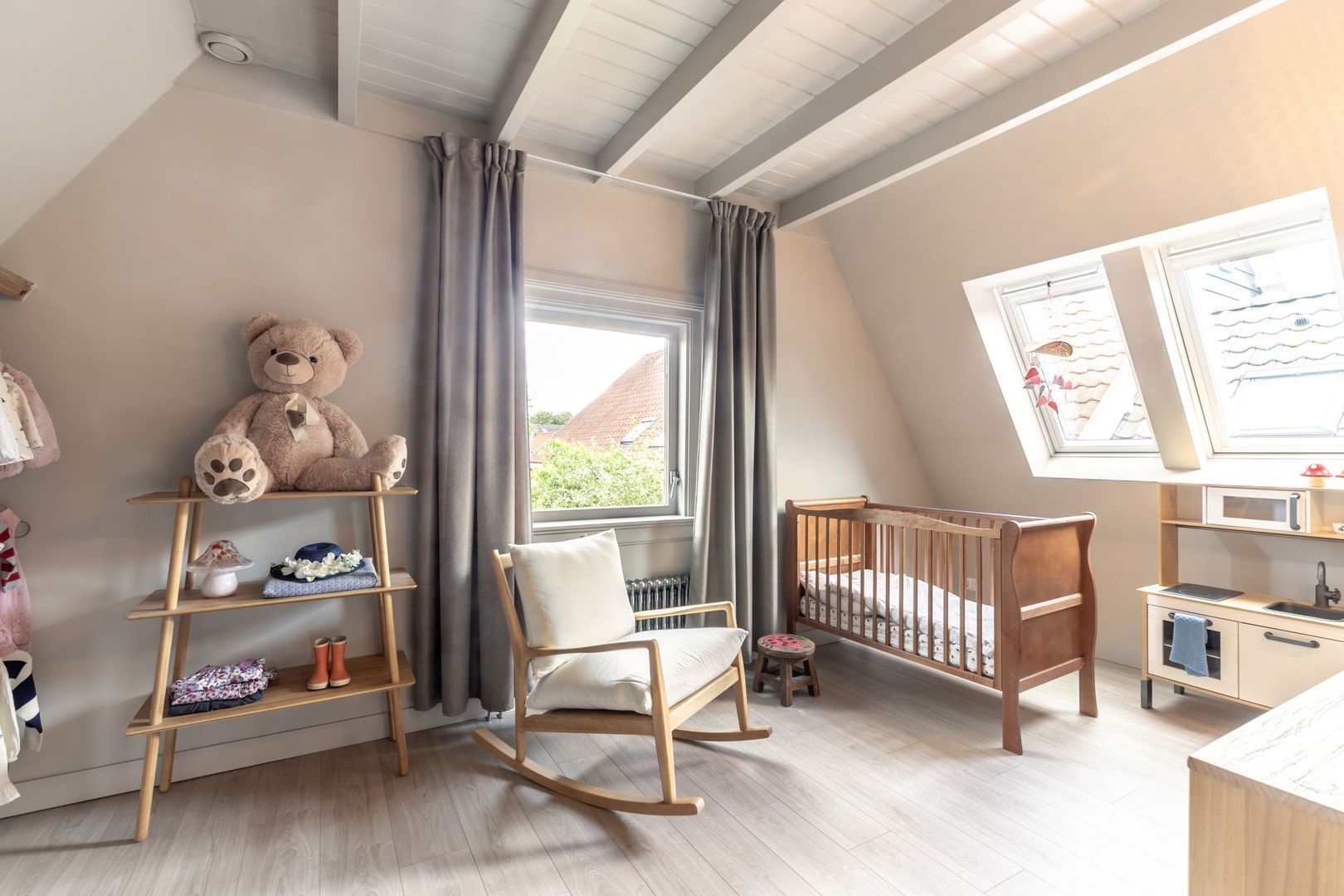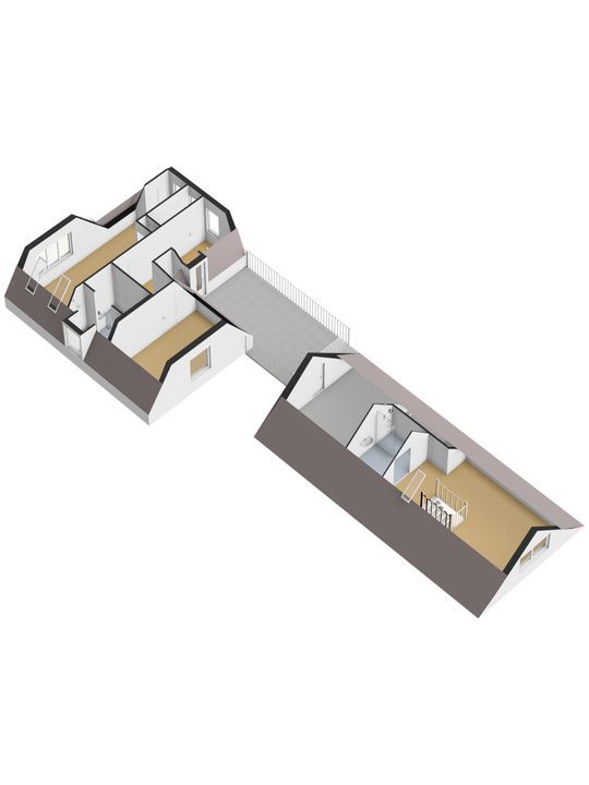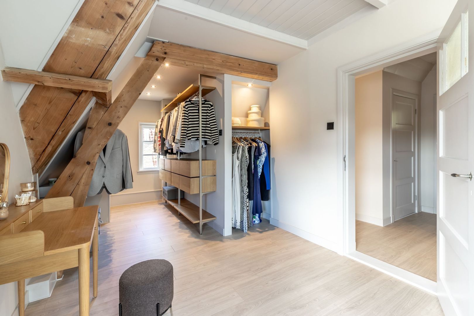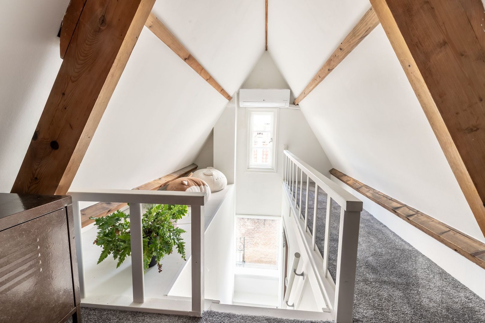 De trapopgang komt uit op de overloop die in verbinding staat met slaapkamers drie en vier. De nok meet hier maar liefst 2,48m en er zijn aan weerszijden ramen waardoor je optimaal van deze verdieping gebruikt kunt maken.