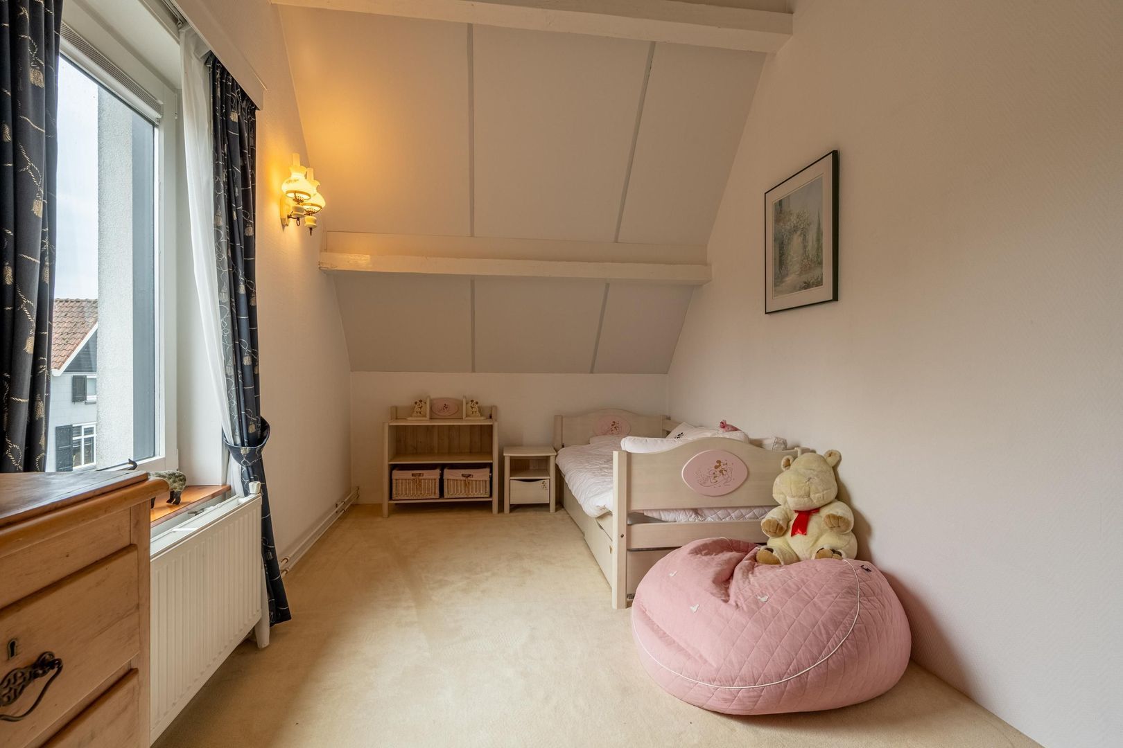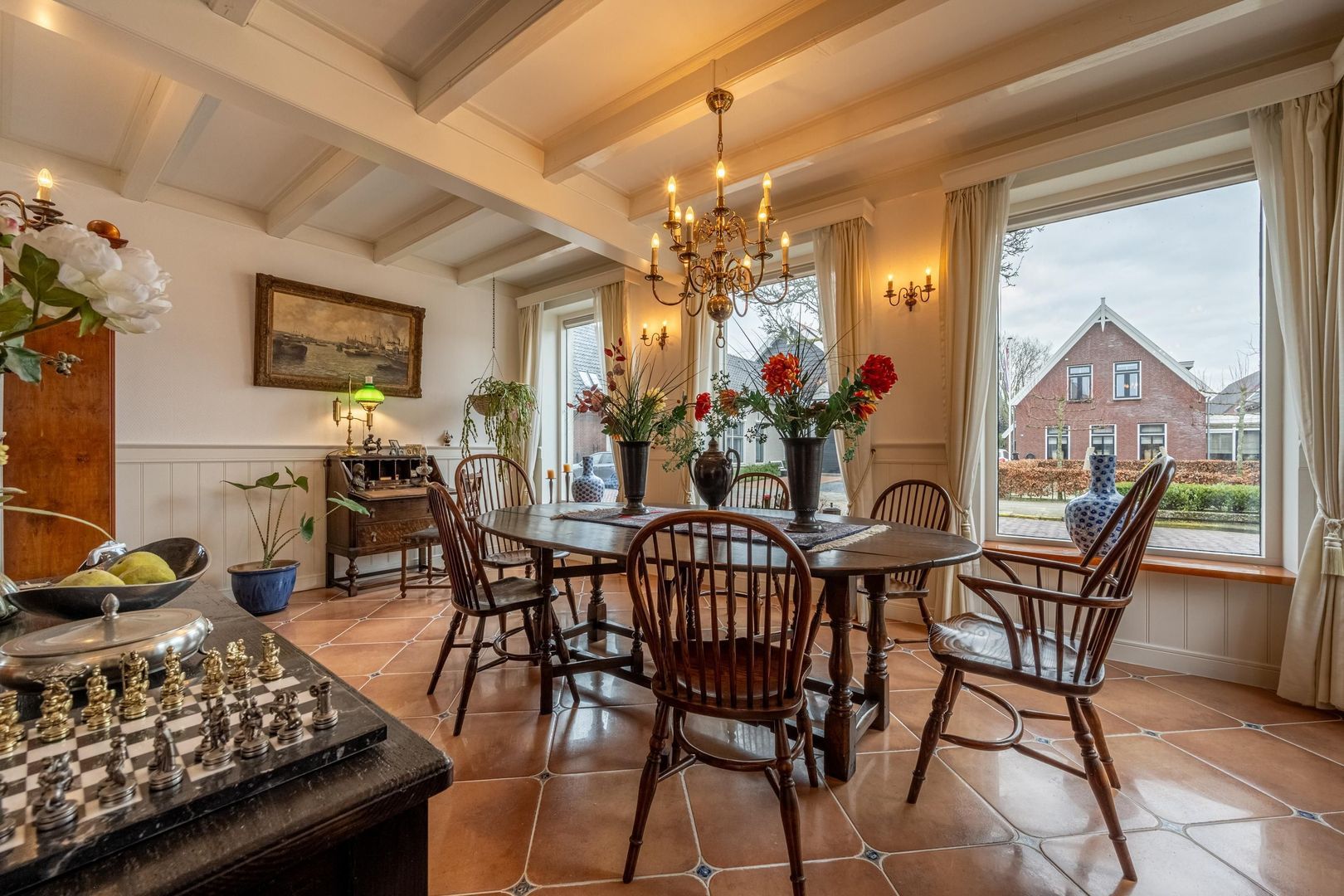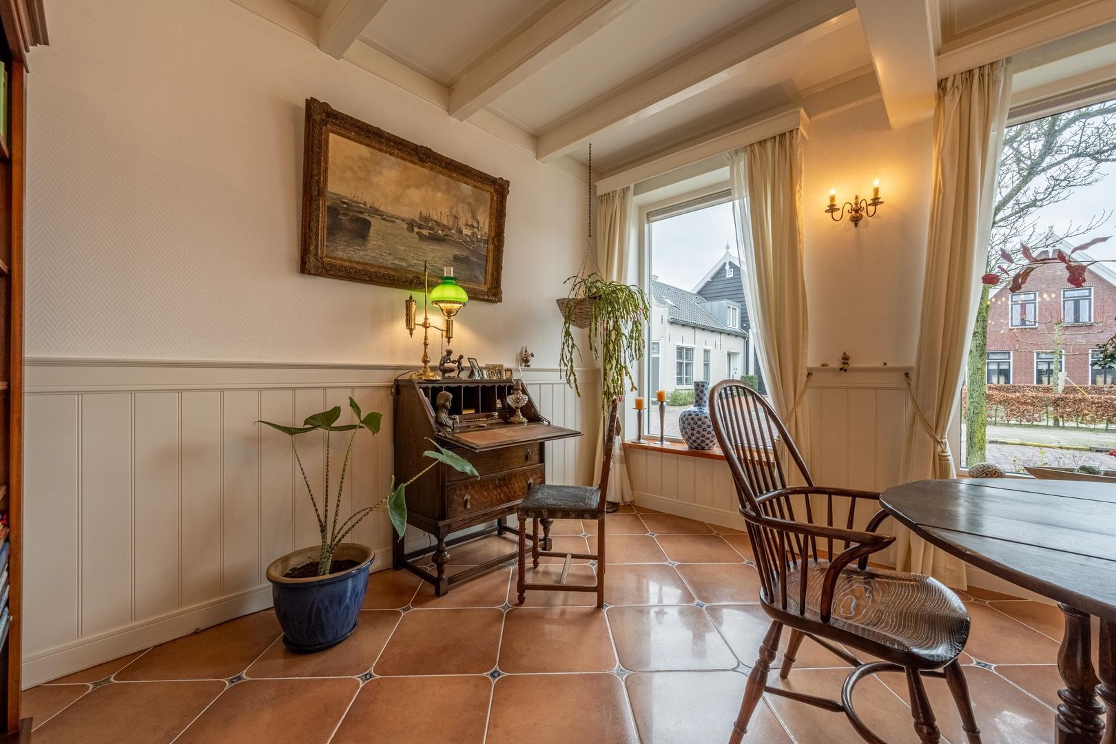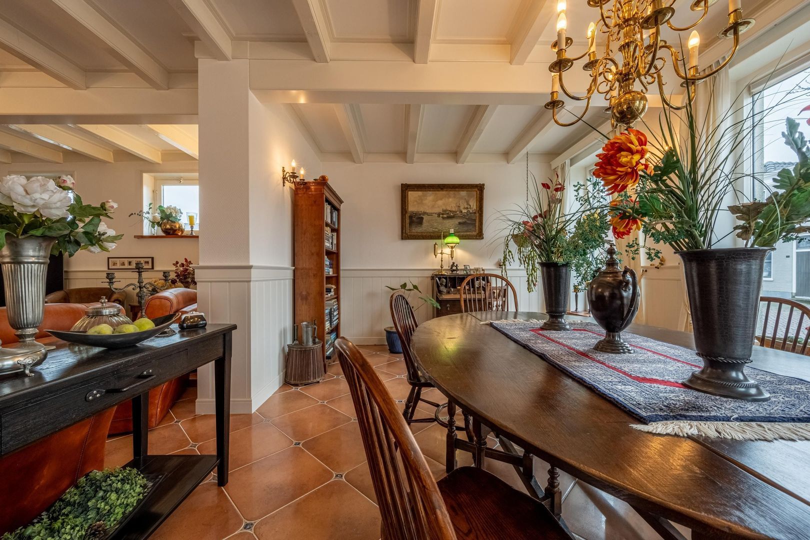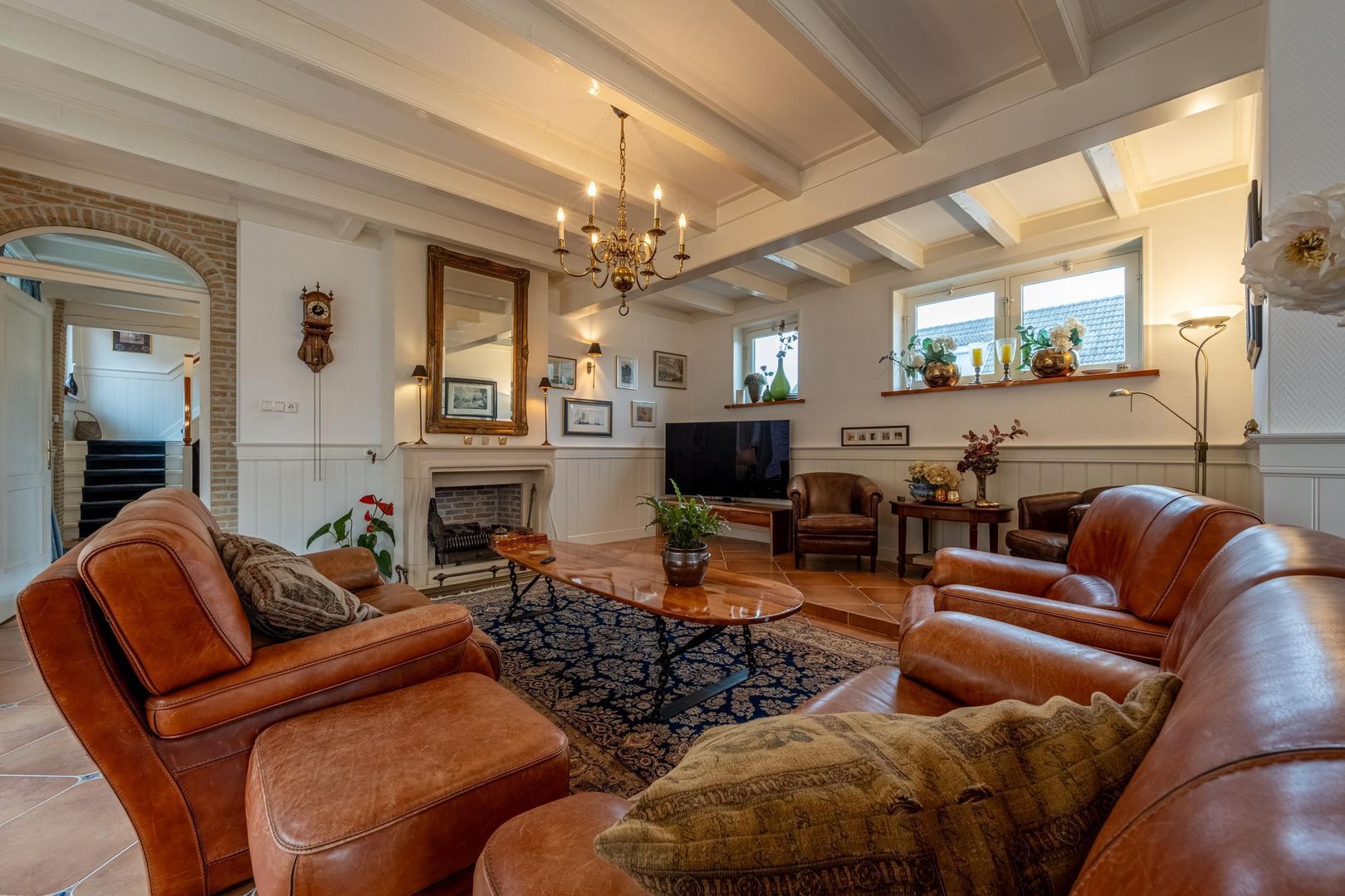 De woonkamer grenst aan de straat. Deze heeft een royaal formaat en beschikt over een mooie schouw met gashaard. De erker in de zijgevel zorgt voor veel extra licht en een prettige lichtinval.