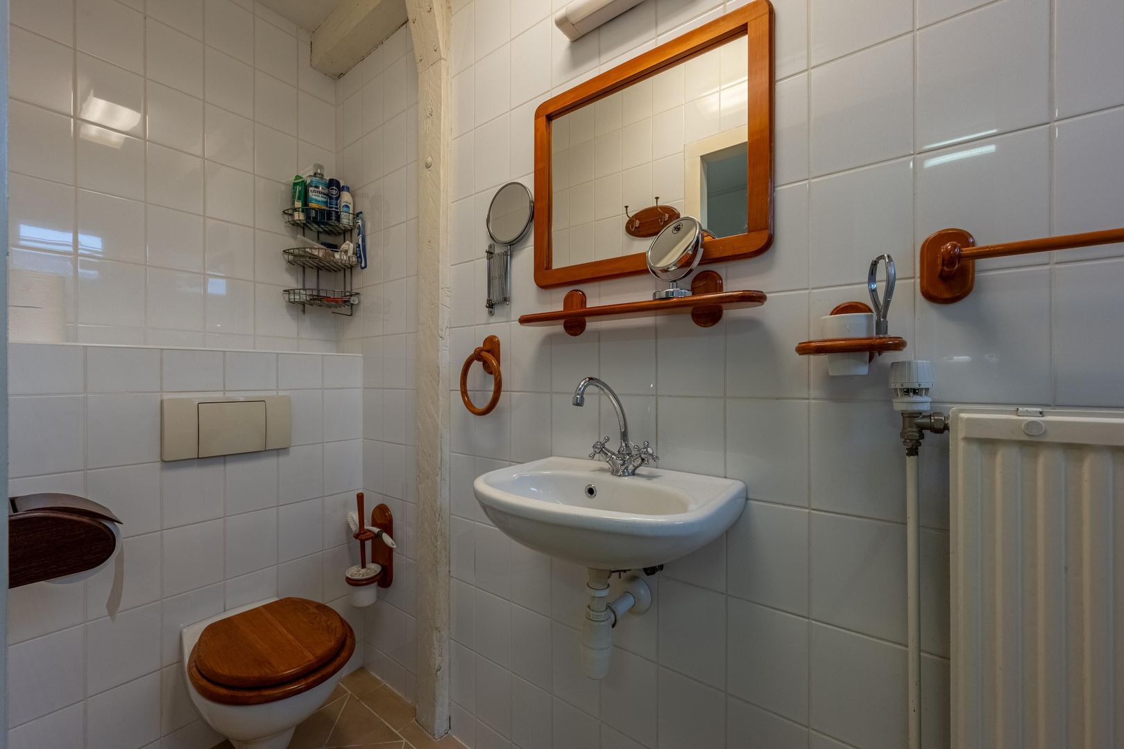 Een tweede entree op de begane grond leidt naar een hal met de meterkast en een badkamer. Deze biedt plaats aan een douchegelegenheid, een toilet en een wastafel.