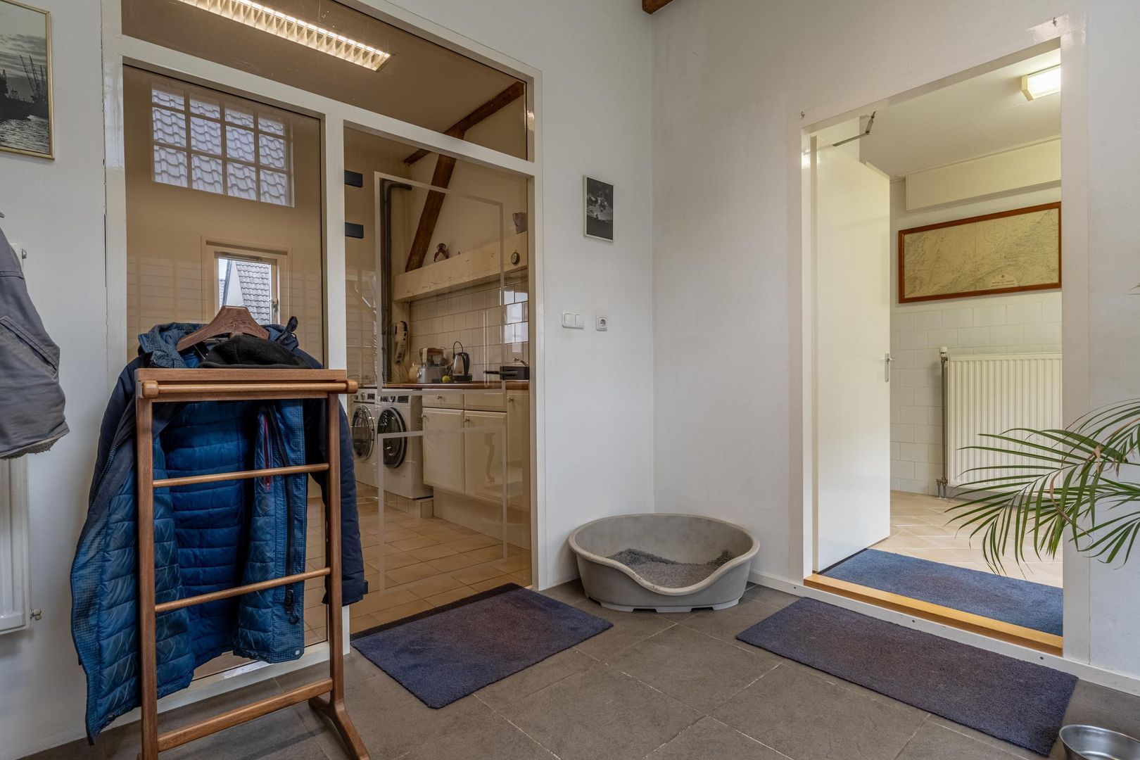 Ook is er (vanuit de hal) een deur naar een extra ruimte met openslaande deuren en een onbenoemde ruimte (met aansluitingen voor de wasapparatuur). Feitelijk bevinden deze ruimtes zich al in de oorspronkelijke schuur.