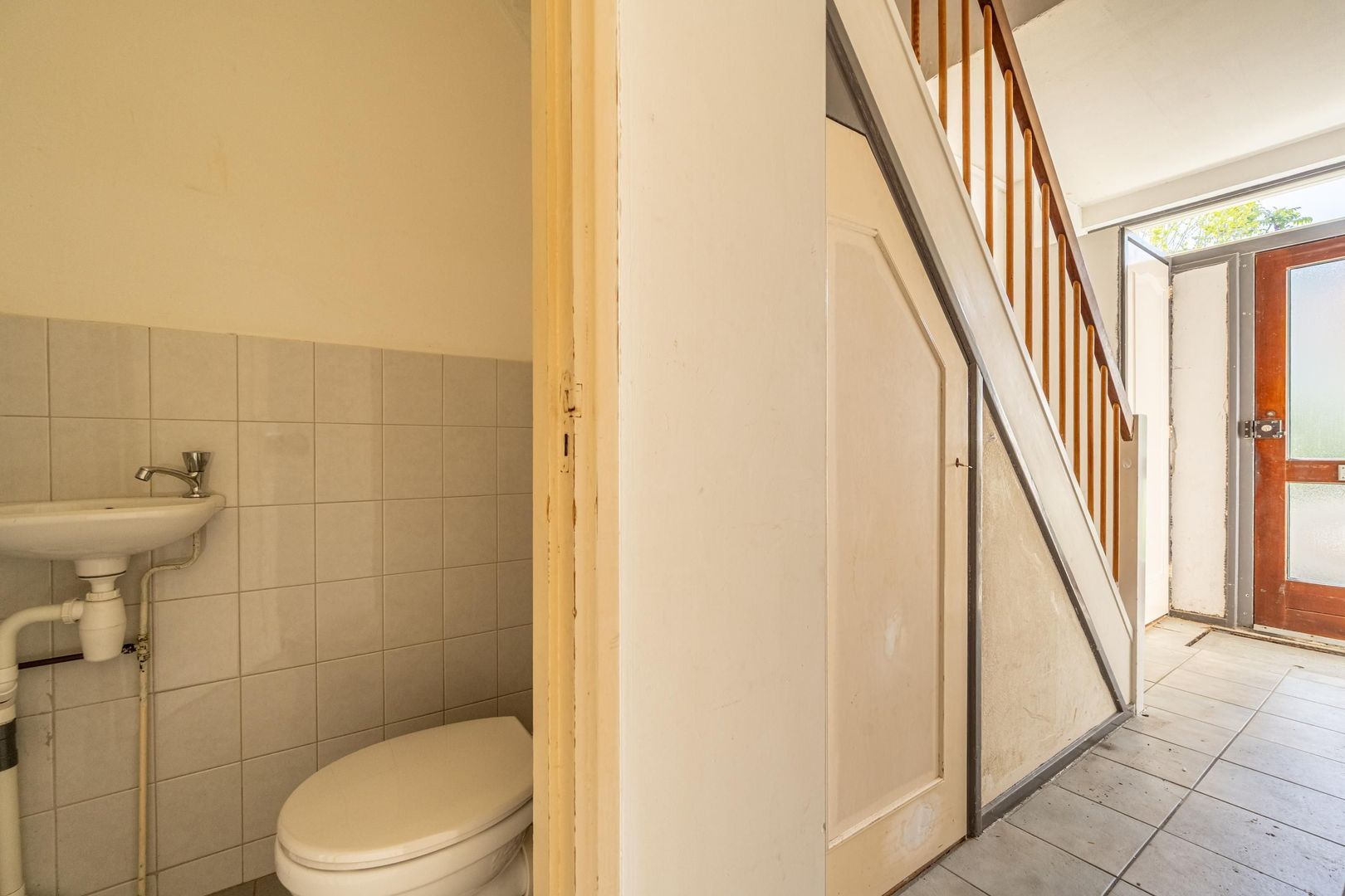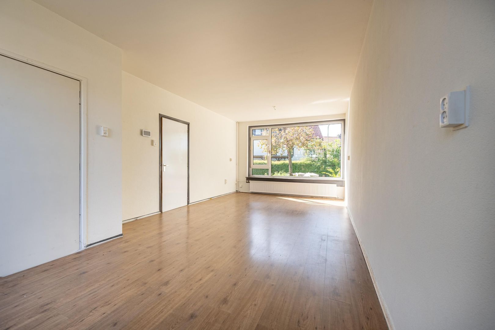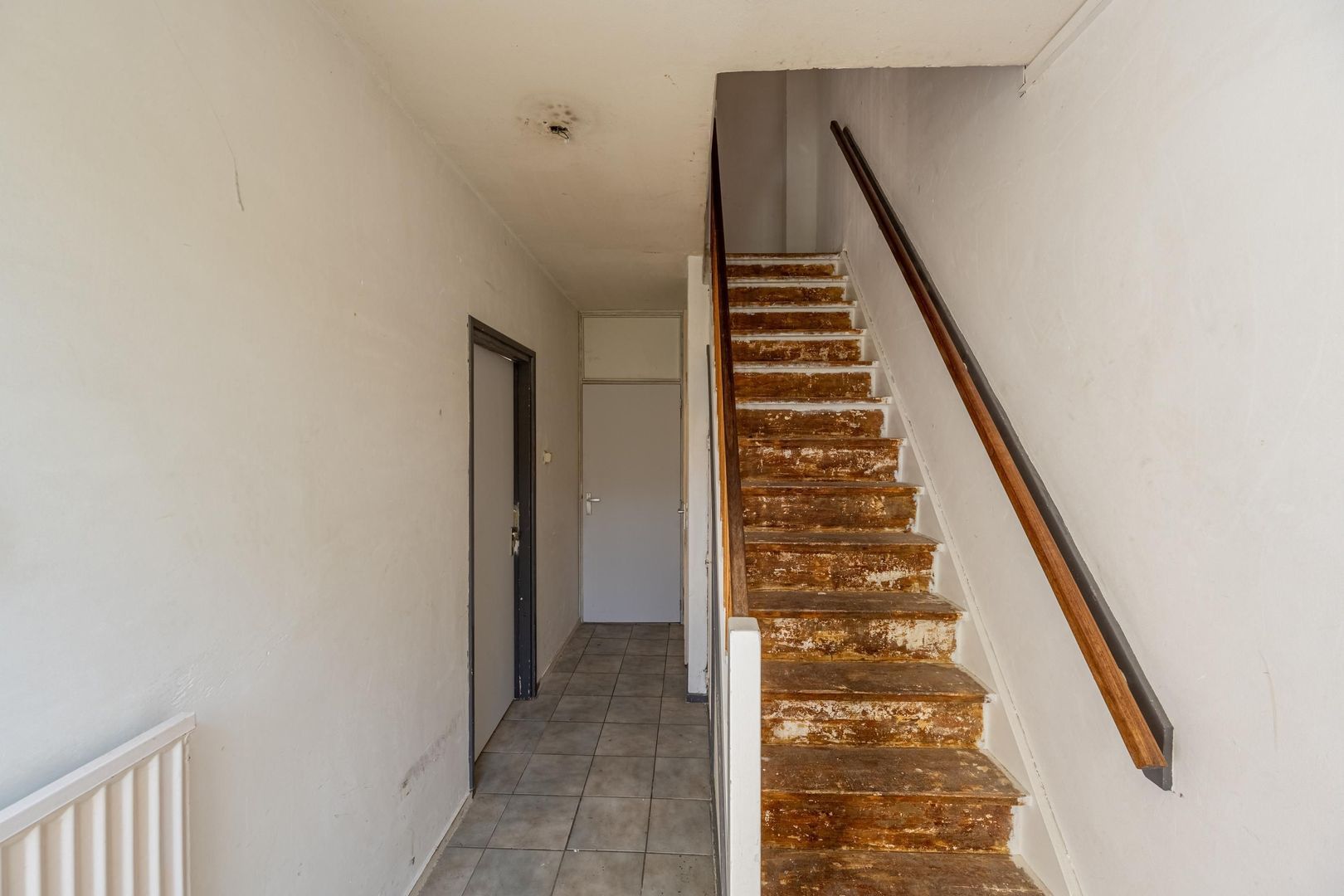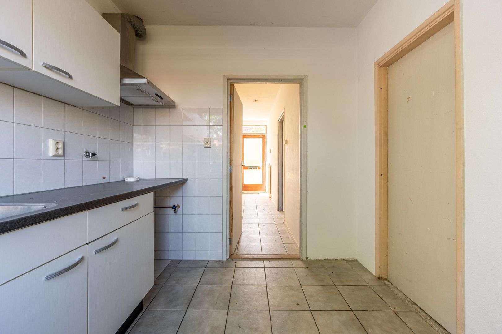 De indeling is globaal als volgt: entree, hal met toiletruimte, meterkast, trapopgang en trapkast. De doorzonwoonkamer is heerlijk licht en heeft een deur naar de keuken. Deze is ingericht met een standaard keukenblok met onder- en bovenkastjes.