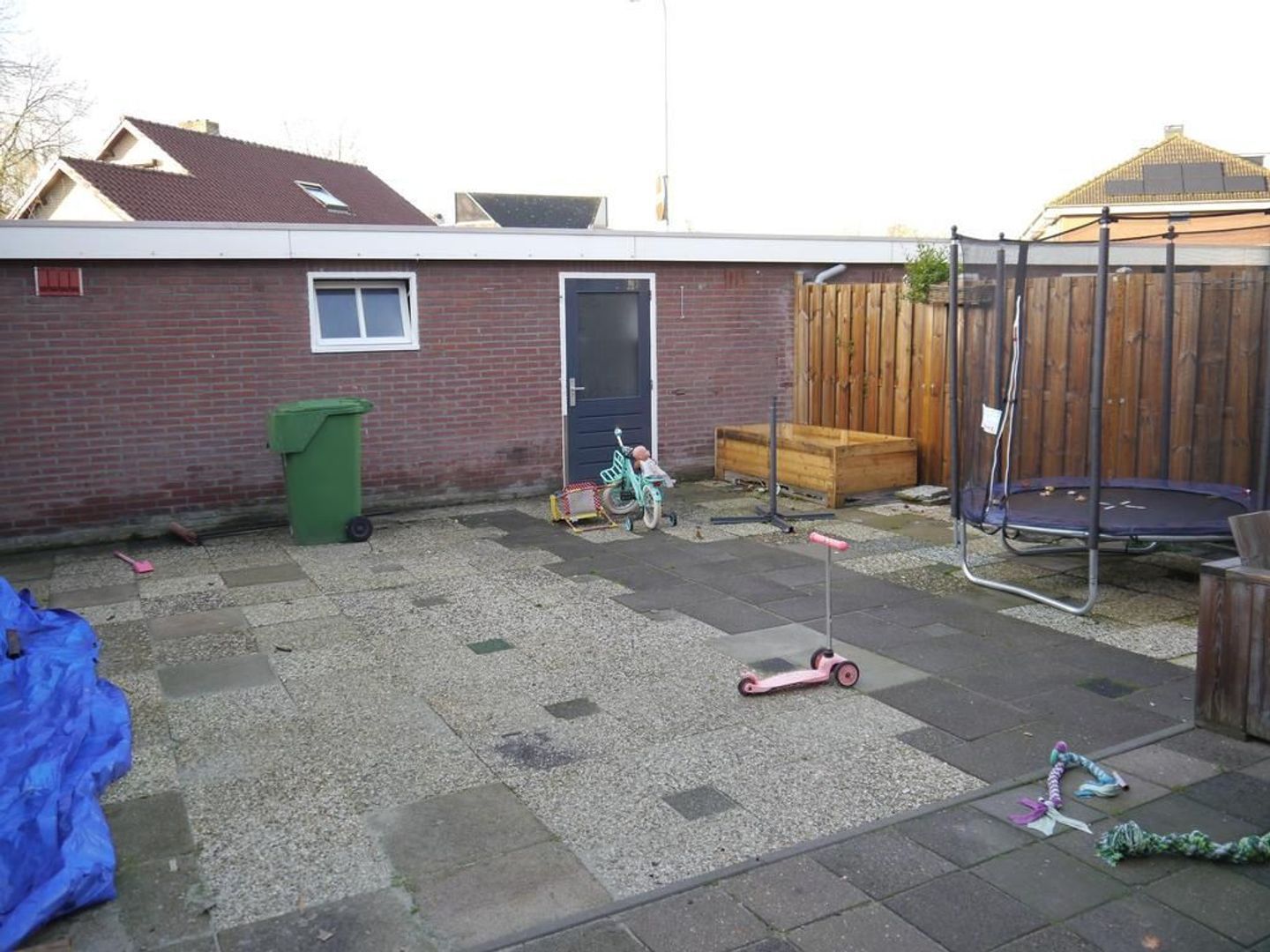 De woning beschikt over een zijtuin en een achtertuin. Hierin staat een stenen berging, voorzien van een rolluik (deur).