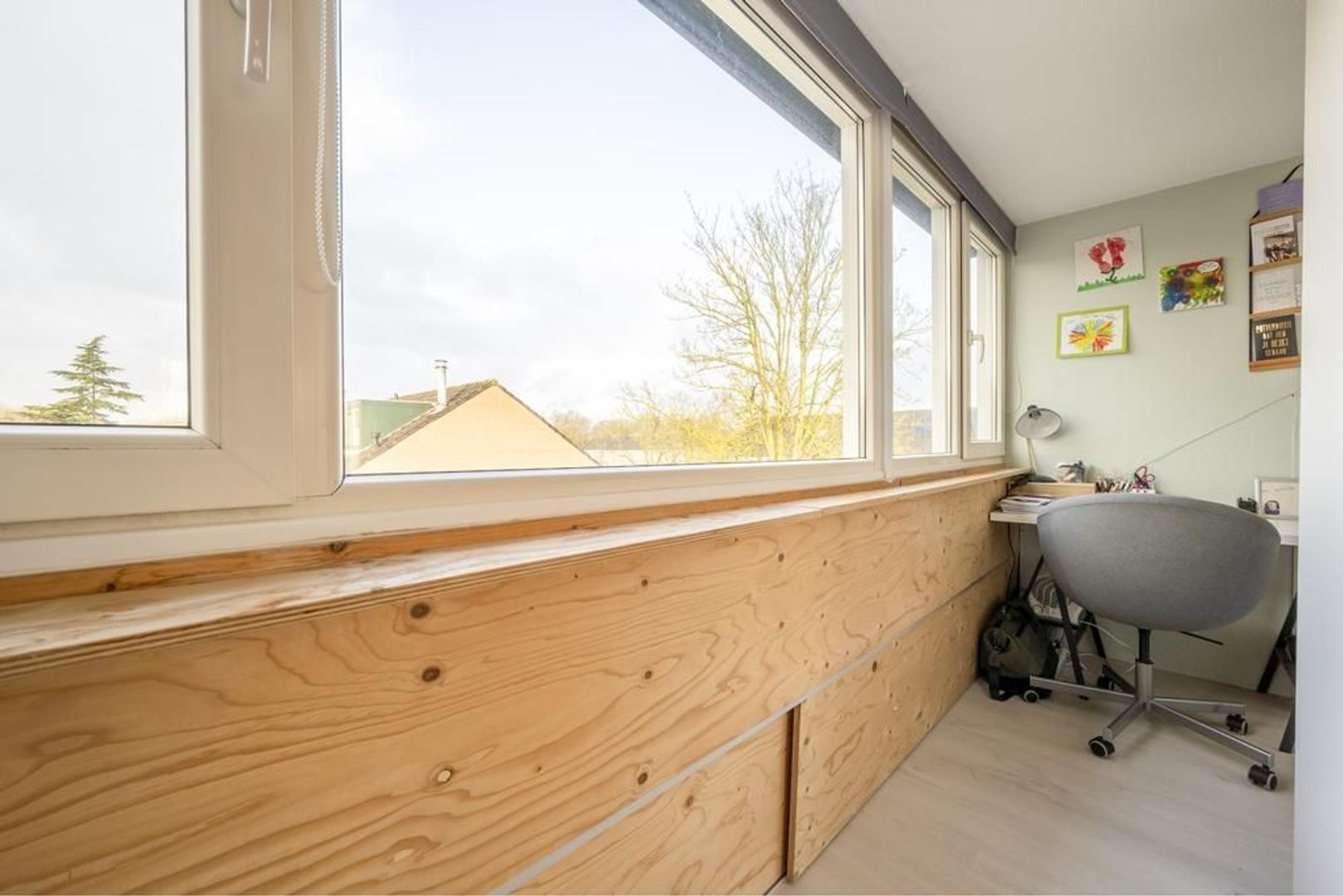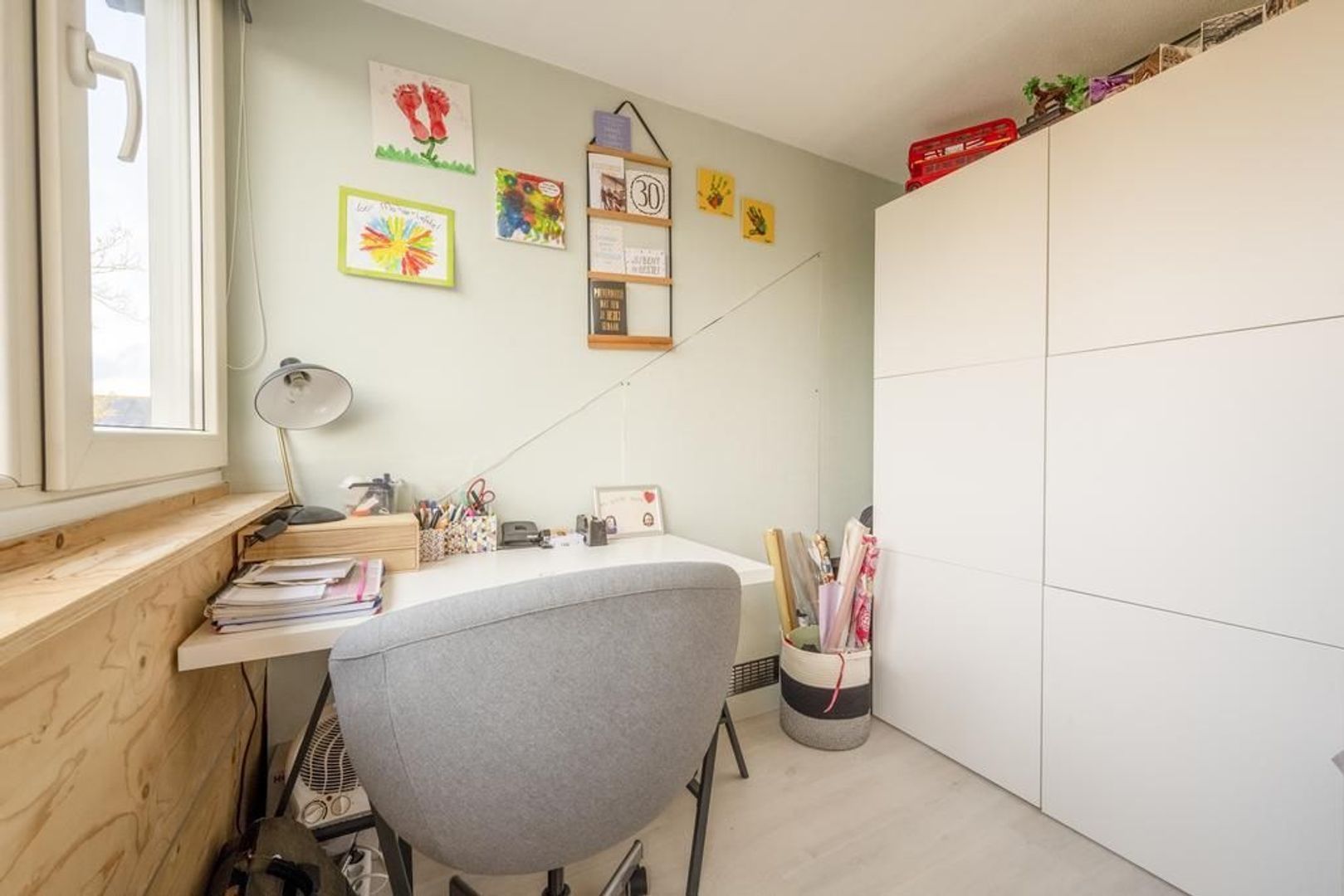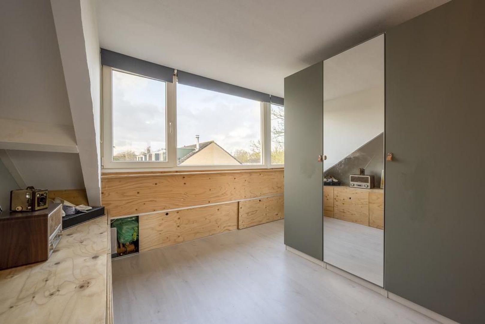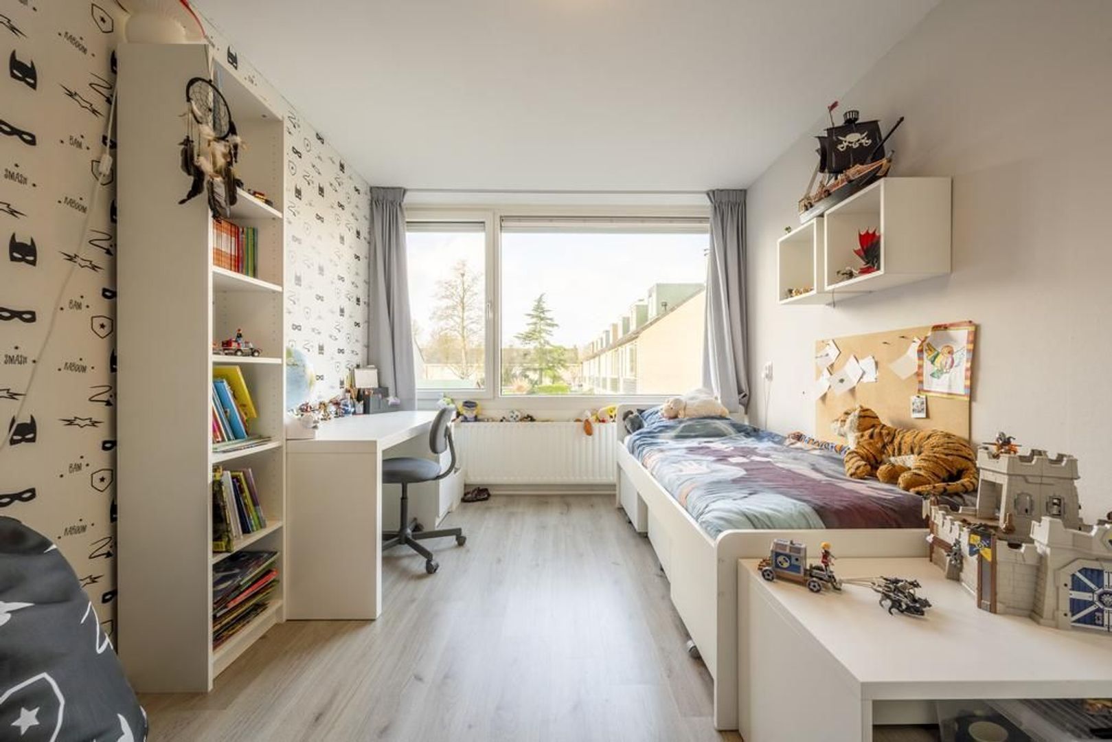 De vierde slaapkamer is groot. Met een kastenwand als roomdivider is een extra werkplekje gecreëerd.