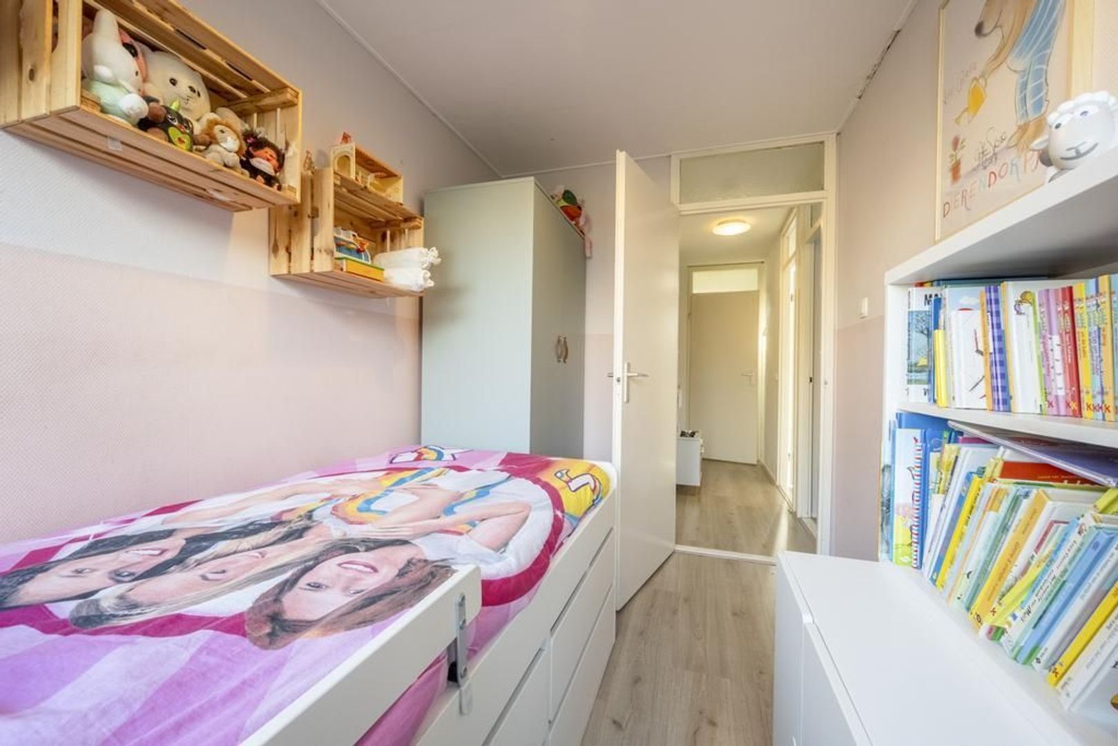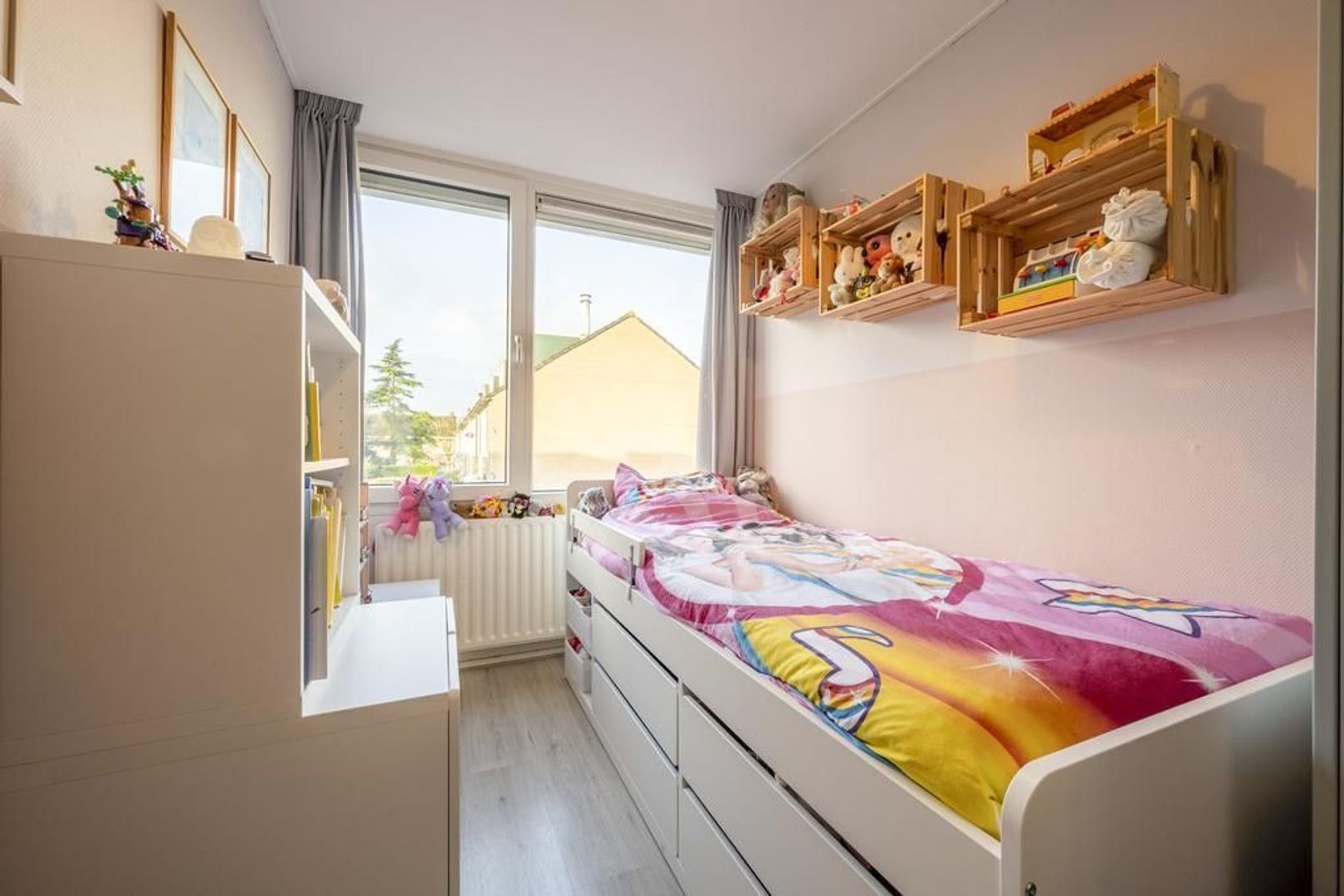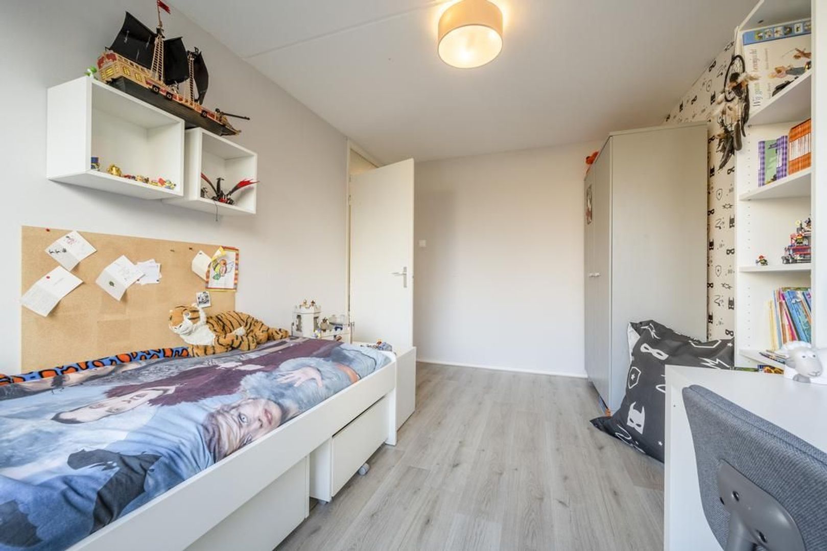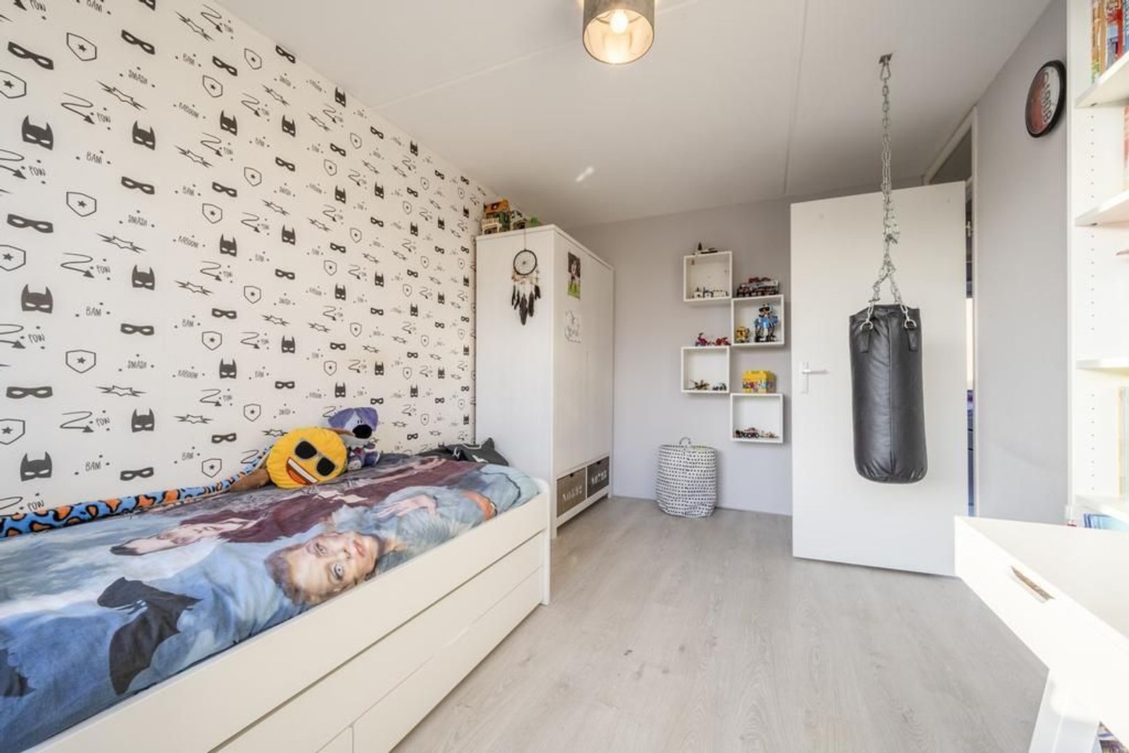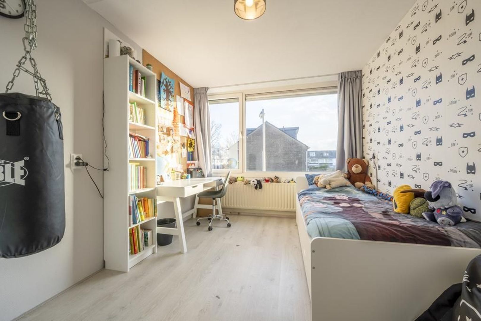 De vierde slaapkamer is groot. Met een kastenwand als roomdivider is een extra werkplekje gecreëerd.