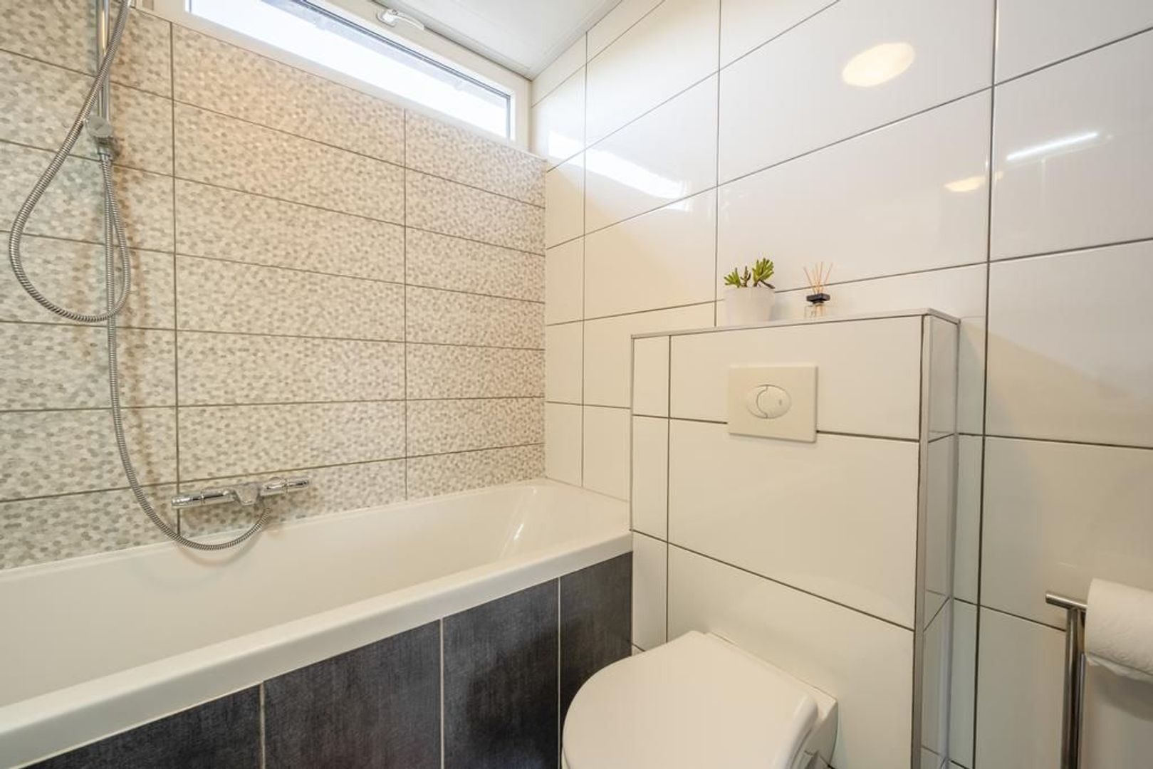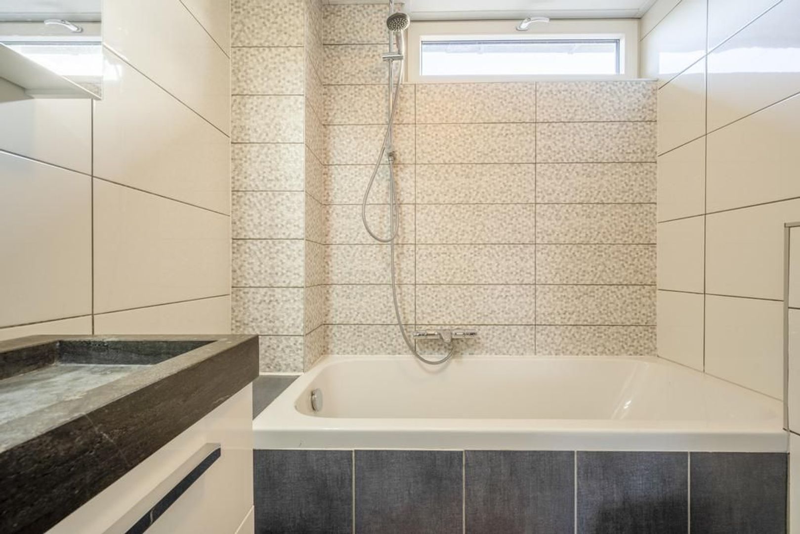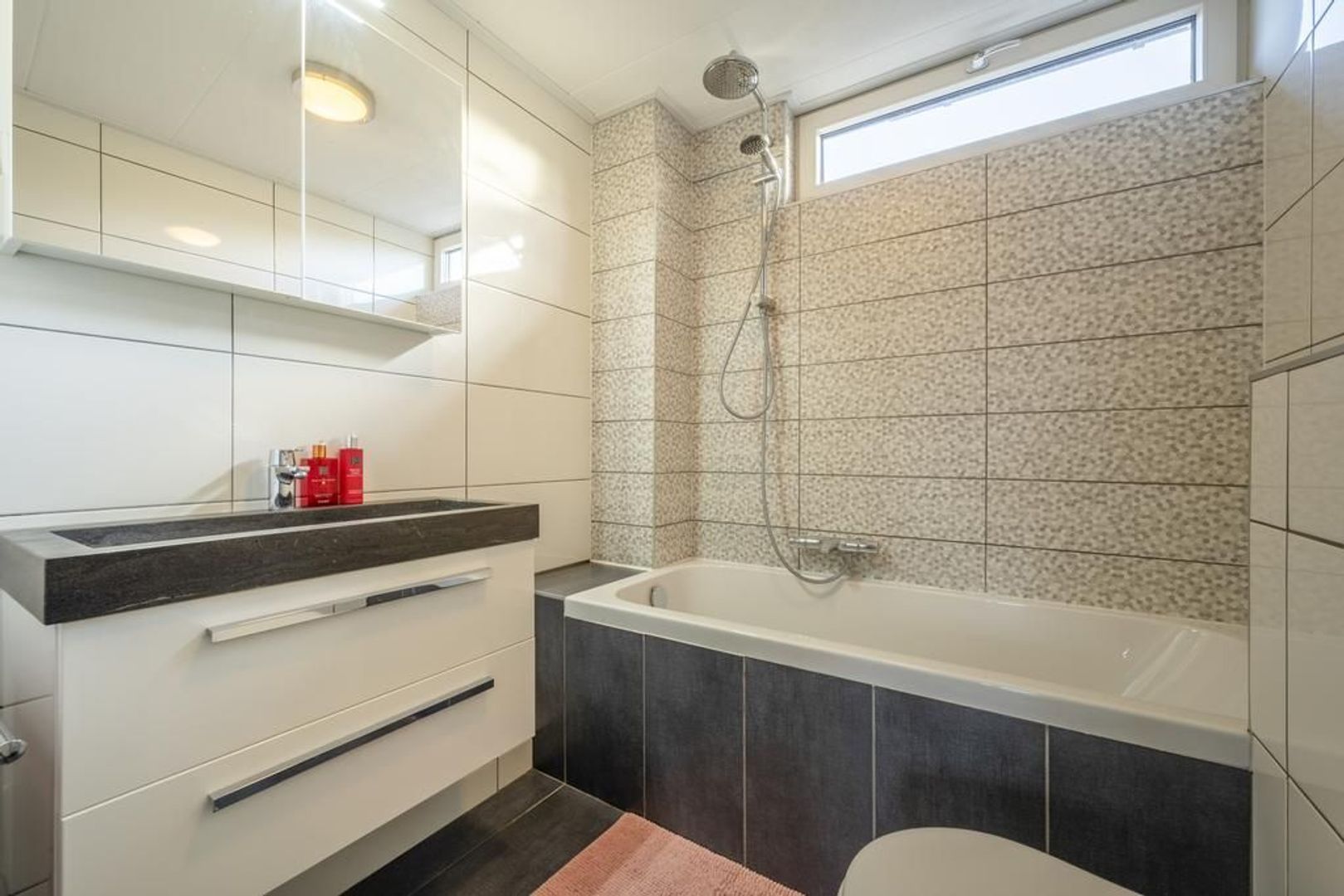 Deze is ingericht met een kunststof ligbad met wanddouche, een mooi wastafelmeubel met natuurstenen blad en een tweede toilet.