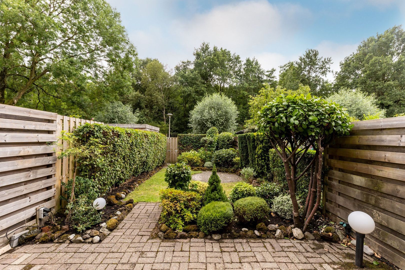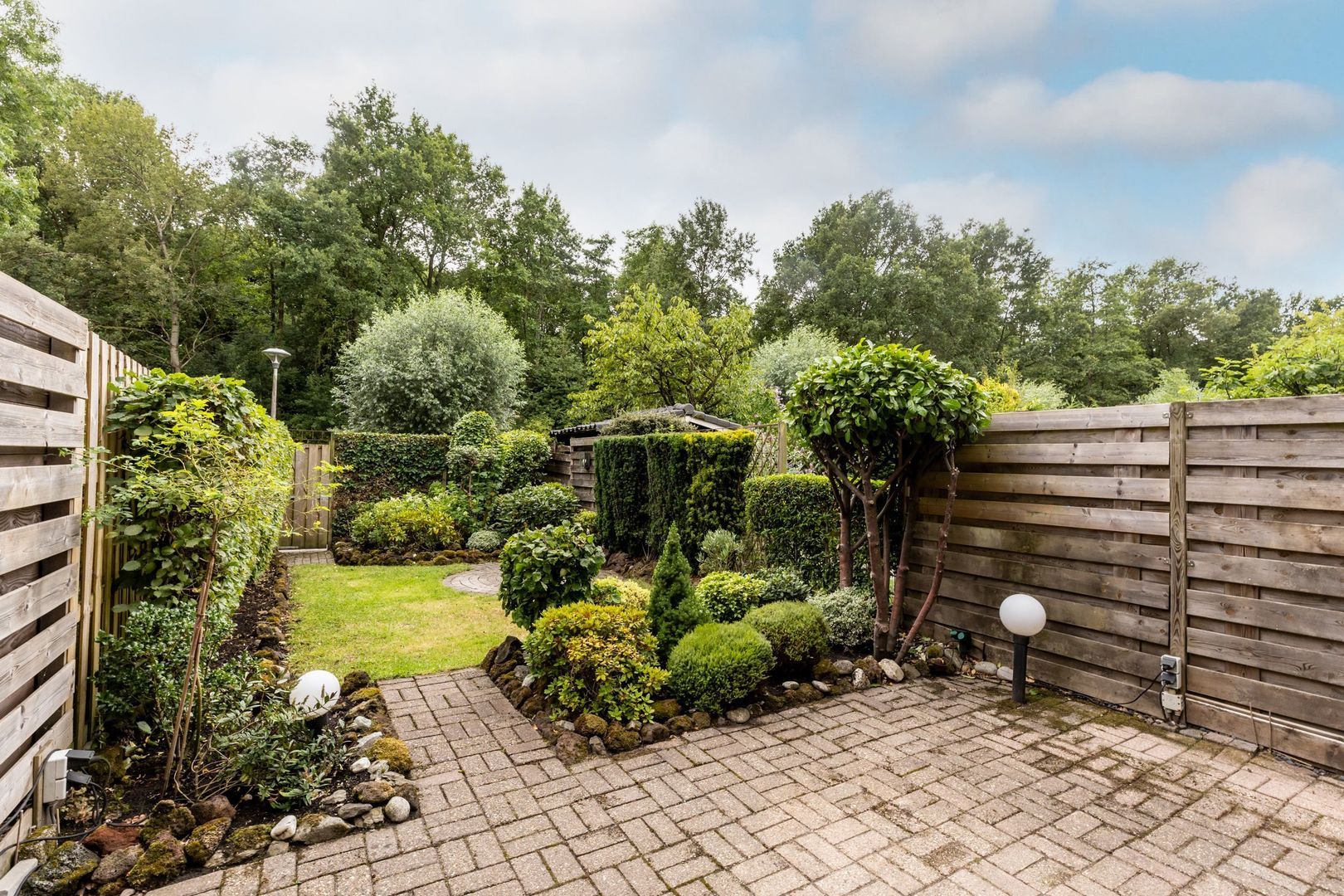 De achtertuin ligt op het zuiden. Deze is netjes aangelegd en sluit aan op een groenstrook. Heerlijk vrij dus.