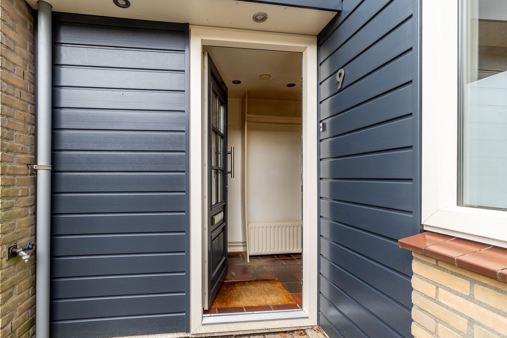 Toegang tot de leefruimte die bestaat uit een half open keuken aan de straatkant en een tuingerichte woonkamer. De keuken is voorzien van een U-vormige inrichting.